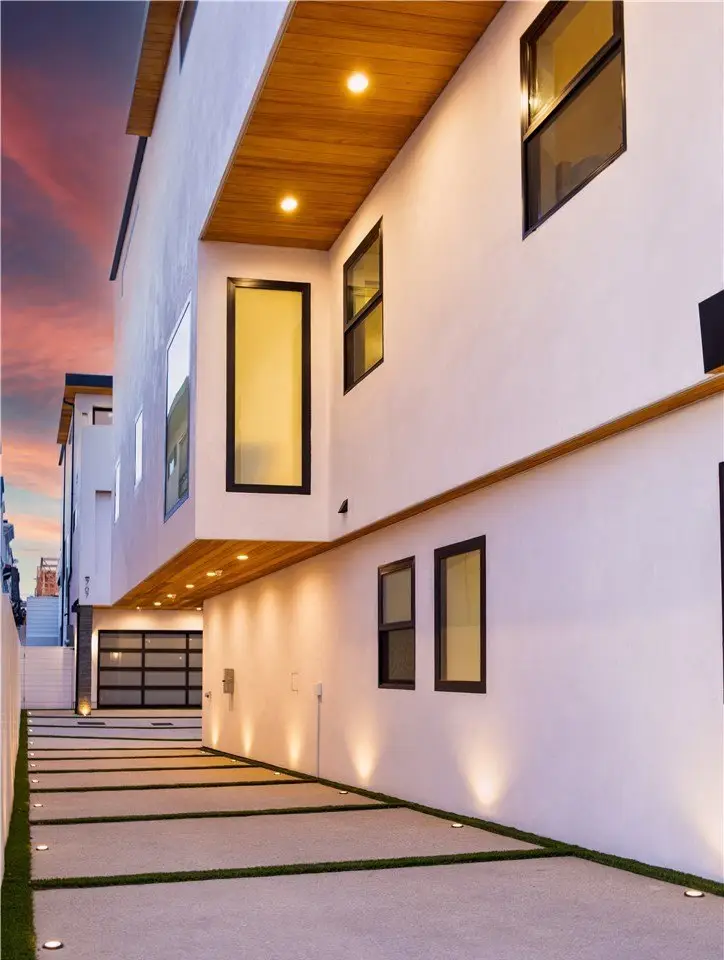 This 4-bedroom, 4.5-bathroom coastal modern townhome embodies luxury, style, and sustainability. Meticulously designed, this 2,831 square foot masterpiece features a gourmet kitchen equipped with top-of-the-line Sub-Zero and Wolf appliances, complemented by a spacious 10-foot marble island, white rift oak cabinetry, and custom underlit lighting that adds a warm, elegant touch. The open-concept living spaces are adorned with solid oak wide-plank flooring, high-end Andersen windows and oversized sliders. The primary suite is a private retreat all its own, complete with a spa-inspired bath featuring a freestanding soaking tub, glass-enclosed walk-in shower, dual vanities, and direct access to a serene outdoor deck. Every detail, from the underlit cabinetry and stair lighting to the power-saving fixtures and sustainable wood accents, speaks to quality craftsmanship and thoughtful design. As day turns to night, architectural outdoor lighting along the home’s exterior and pathways sets the tone for relaxed luxury. And above it all, the rooftop deck with gas and water hookups offers panoramic views of the Queen’s Necklace, ideal for entertaining, relaxing, or simply taking in the beauty of the South Bay. With a wine cellar, three-stop elevator, and multizone smart climate control, this home offers a lifestyle as effortless as it is exceptional. Every day is truly a reminder: When you buy here, you're buying a lifestyle!