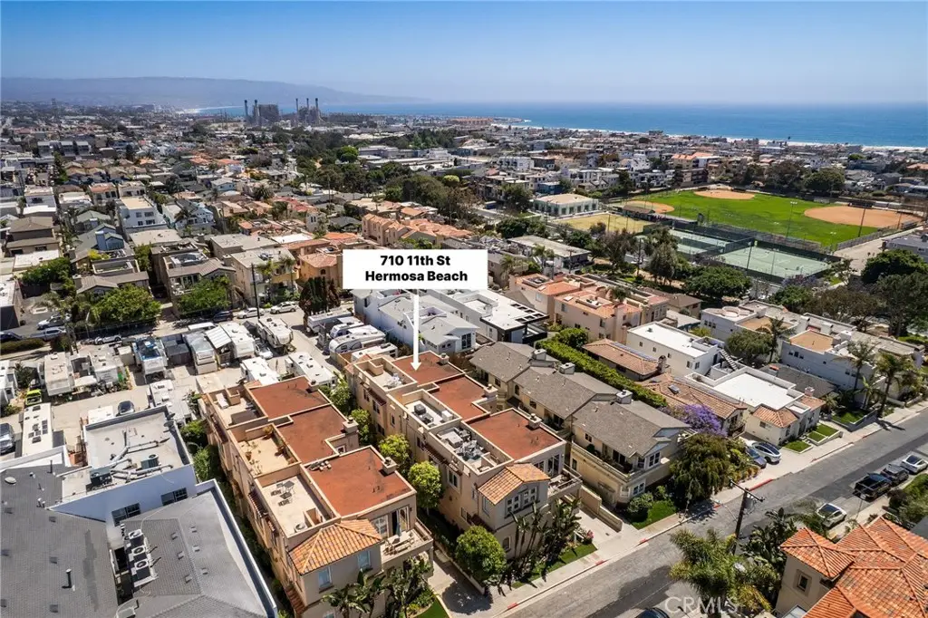 Welcome to this gorgeous OCEAN VIEW 3 bedroom, 2 1/2 bathroom townhome with 3 outdoor decks located in the heart of Hermosa Beach. The upstairs living area features a spacious open floor plan with ocean views, cozy fireplace, hard wood flooring, a spacious living room, dining area. kitchen and guest bathroom. The kitchen has granite counter tops, stainless steel appliances, double ovens, cook top and peninsula with countertop seating. Enjoy the ocean breezes from the living room that leads to one of the ocean view decks perfect for entertaining and outdoor dining. From this level a staircase leads to a private rooftop deck with stunning panoramic views. On the entry level you will find 2 spacious bedrooms with ample closet space and the primary bedroom. The primary bedroom has two walk-in closets, private balcony, fireplace and a large ensuite bathroom with a double vanity. All the bedrooms feature hardwood flooring. The lower level offers flexibility with an additional room for a home office, gym, or playroom. On this level you will find a laundry room and storage closet and direct access to the oversized 2 car garage with plenty of room for additional storage. This back unit townhome offers an additional off-street driveway parking spot . Conveniently located and just a short distance to the greenbelt, South Park, Hermosa Valley School, shopping, coffee shops, grocery stores, numerous downtown restaurants, the beach and bike path.