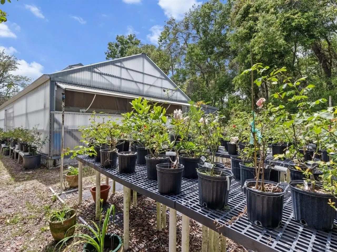 It isn’t often you see a beautifully appointed home that comes complete with its own on-site fully functional mail order rose nursery, but that’s exactly what you’ll find with this stunning property. Nestled on 8.47 serene acres, this 1990-built home has been thoughtfully updated modern amenities, tasteful finishes, and an air of elegance. This home and mail order rose nursery are a peaceful setting surrounded by mature landscaping and some of Florida’s most glorious offerings.This home features 1,903 sf of living space and a total of 2,769 sf under roof, 3 bedrooms, 2 bathrooms, a screened-in lanai, and an attached 2-car garage. The property features a 576 sf greenhouse, a 1,440 sf greenhouse, and an 846 sf detached two-story garage with two additional stalls and a half-bath. The greenhouses come equipped with water tanks that hold 10,000 gallons of rainwater. The detached garage can be easily converted into a guest suite, an office, a workshop, or it can be used for storage. With an already-thriving mail order rose nursery onsite, this property is everything you want. Those who are interested in rural living or even homesteading can find everything they’ve ever wanted in one place – this beautiful home.