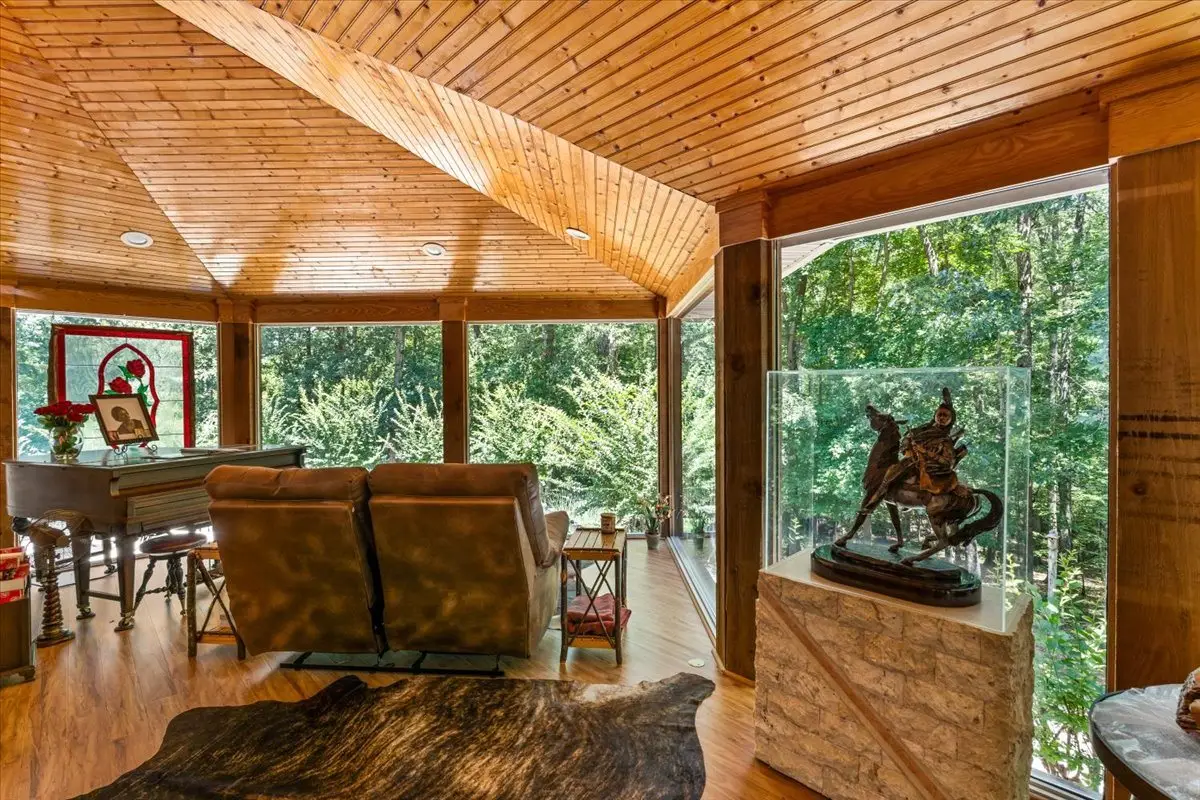 Welcome to this Exceptional Custom Built Brick Contemporary Estate located on 10+ Heavily Wooded Acres! This Absolutely Amazing Home Sits Deep on the Property & Offers Total Privacy & Seclusion! The Super Light & Bright Entry Opens up to a Stunning 2 Story Great Rm w/Custom Woodworking! The Main Level Offers a Formal Great Rm w/Deck Entry + Kitchen/Breakfast Area Filled w/Sun Drenched Light! In addition, there is a Formal Living Rm w/FP & All Glass Sunroom Overlooking the Lush Rear Yard! The Main Level Also Offers a Guest Suite w/Full Bath! Upper Level Has 3 Bedrooms Including a Breath Taking Primary Suite w/Sitting Area + Upper Level Loft! This Room also Offers an Impressive Primary Double Baths w/Oversized Walk In Closets + Steam Shower/Soaking Tub In Between! Upper & Lower Level Laundry Rooms! 2 Car Main Level Garage/Exercise Rm which is Heated/Cooled + a Basement 3 Car Garage! Stunning Gunite Pool w/Overflowing Hot Tub! New Roof in 2025! Whole House Generator! Multiple Decks!