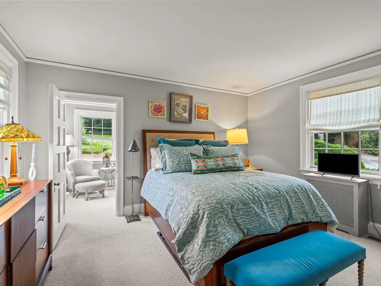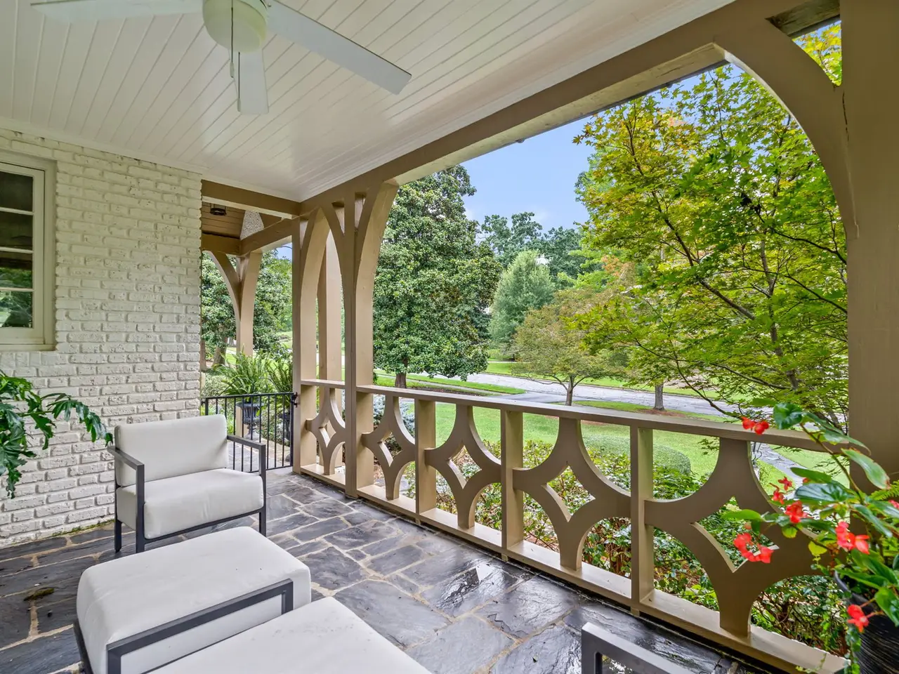 An English Tudor with stunning architectural features. Including arched doorways, exposed wood beams and a prominent stone fireplace in the large open living room. A storybook foyer with marble floor entering into a very versatile floor plan with lots of living space including a piano nook overlooking the living room that could be used as an office. As well as a sitting room nestled in the main level ensuite bedroom. The oversized family room has built-ins, wormy maple hardwoods and a wet bar closet all leading to a large stone patio with a water feature. Property includes three lots appointed with stone walls, slate walkways, gorgeous landscaping and a concrete pad with a basketball goal. The detached garage has a much needed storage room! The updated covered porch is like a vacation getaway right at home perfect for watching the sunrise. The kitchen is large enough for any size gathering and includes a Thermador six burner gas stove and double ovens.