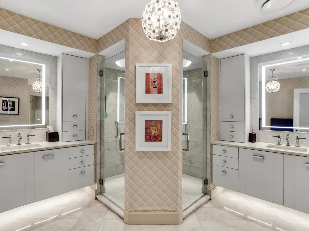 STUNNING 3 BEDROOM 3 BATHROOM AREZZO MODEL WITH COVETED GARAGE PARKING FOR 2 CARS AND AWE-INSPIRING VIEWS! FULLY REMODELED AND READY FOR IMMEDIATE ENJOYMENT! ELEVATOR ENTERS INTO A PRIVATE FOYER WITH DOUBLE GLASS-FRAMED DOORS. GORGEOUS SHADOW-REVEAL MILLWORK, LARGE-FORMAT MARBLE FLOORING, DOUBLE TRAY CEILINGS AND DESIGNER-CURATED WALL COVERINGS. CUSTOM-DESIGNED LIVING ROOM OPENS TO PANORAMIC OCEAN VIEWS, WHILE THE DINING ROOM FLOWS SEAMLESSLY TO AN INTRACOASTAL-VIEW BALCONY. GOURMET KITCHEN WITH CUSTOM CABINETRY, UNDER-LIT QUARTZ COUNTERTOPS, TOP-TIER APPLIANCES INCLUDING WINE AND BEVERAGE REFRIGERATION, AND A SPACIOUS PANTRY. THE SPLIT BEDROOM LAYOUT ENSURES THAT EACH ROOM IS SEPARATELY PLACED FOR OPTIMAL PRIVACY. LUXE PRIMARY SUITE WITH DUAL CLOSETS AND A SPA-LIKE PRIMARY BATH.