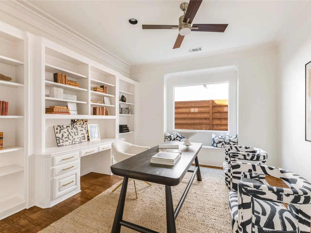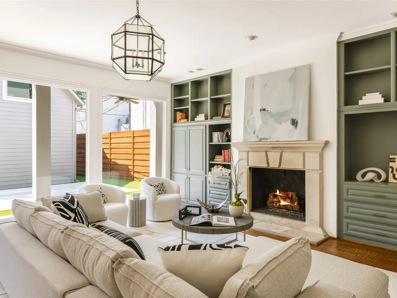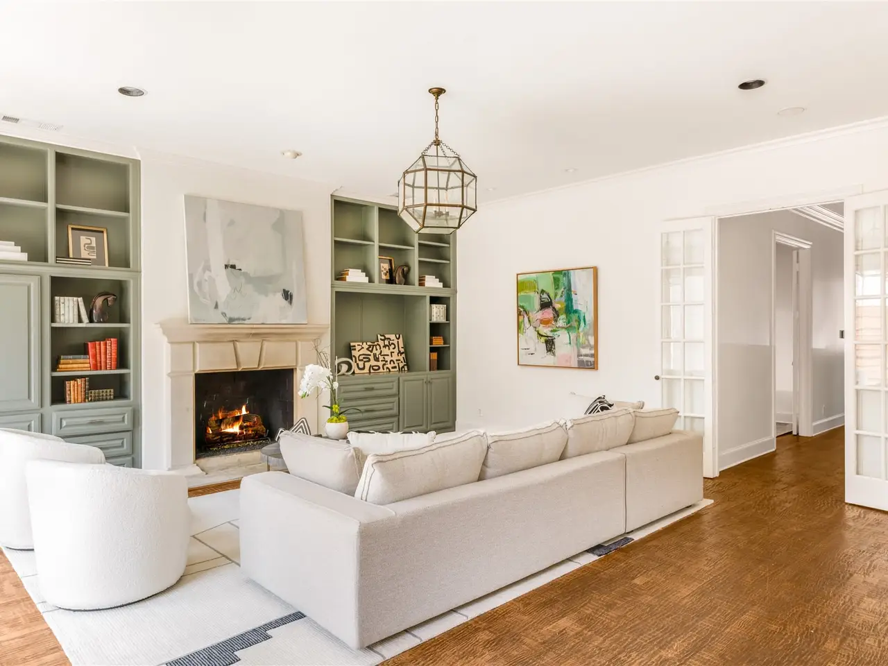 French doors with built-ins