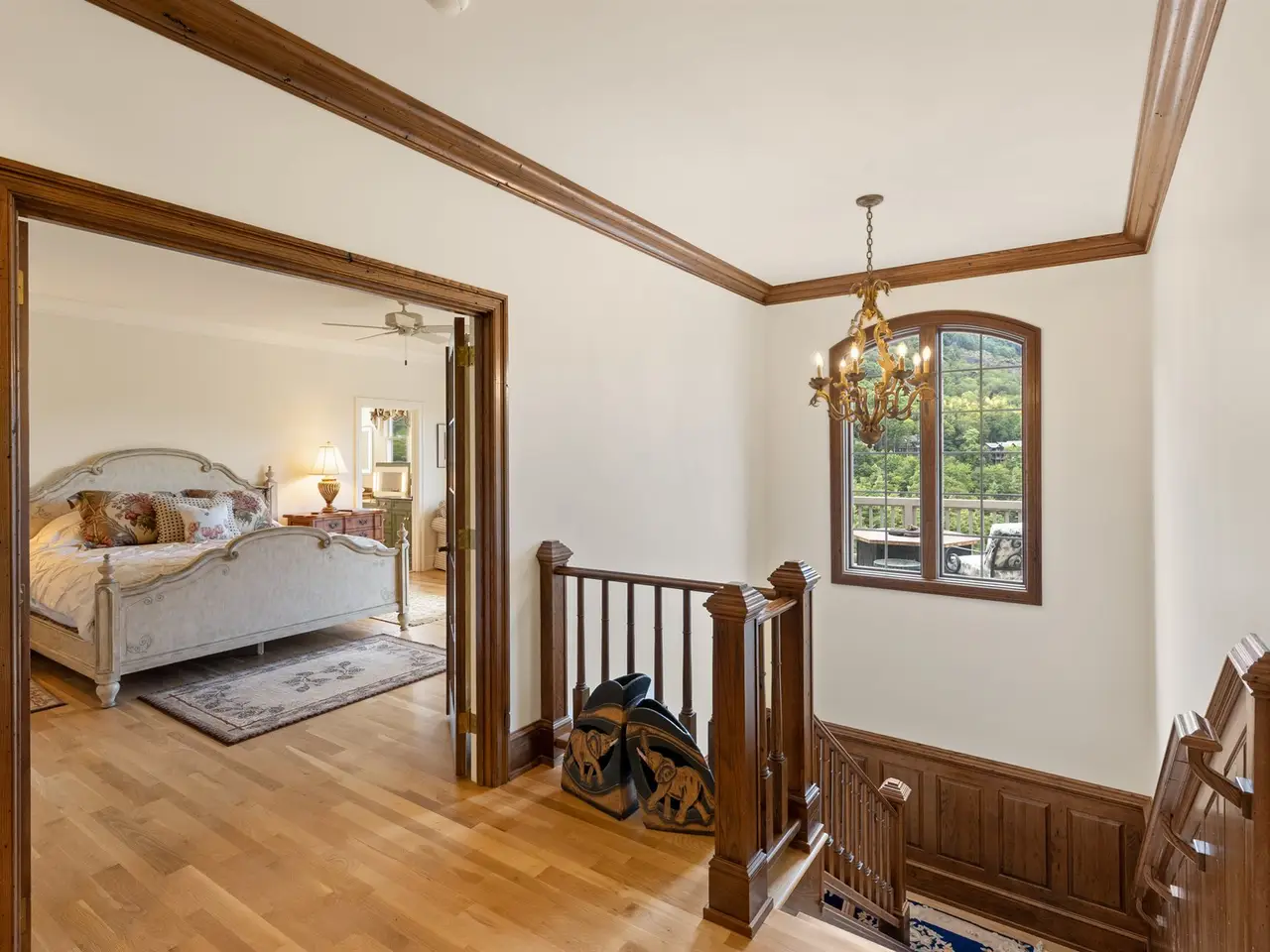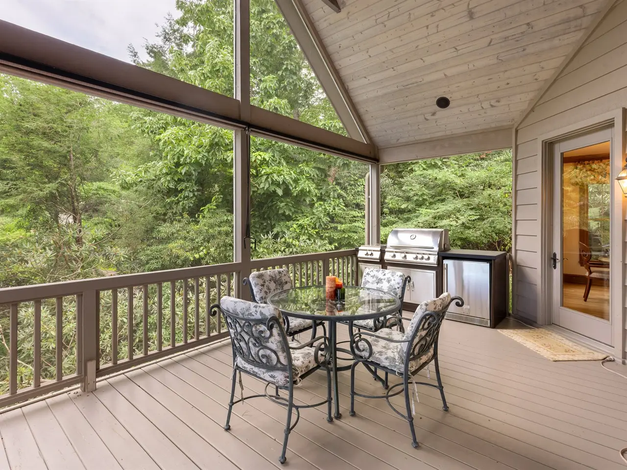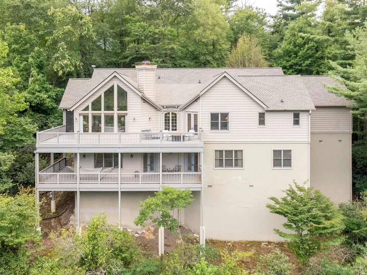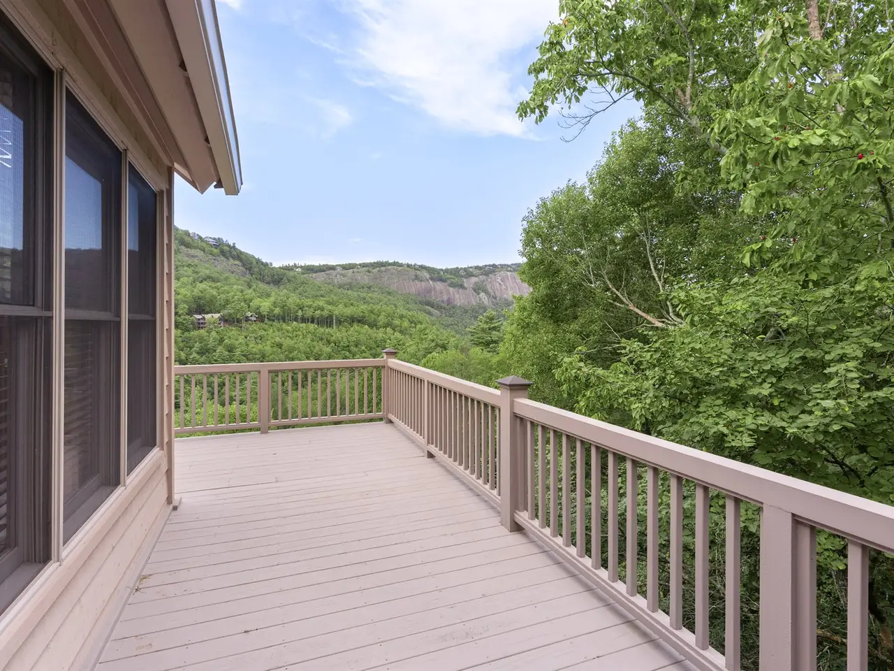 This is the panoramic BIG VIEW! Prepare to be captivated by sweeping, unobstructed views of iconic Whiteside Mountain from this stunning Highlands Falls Falcon Ridge residence, a home so remarkable it has been featured twice in Architectural Digest. Designed with generous proportions and effortless flow, the home offers main-level living with the primary suite conveniently located on the entry level. Architectural details abound, highlighted by custom wormy chestnut and oak features throughout, including an impressive 3? solid wormy chestnut entry door. The primary suite commands breathtaking mountain views and sunrises and boasts a lavish Italian marble bath with soaking tub, oversized shower, dual lighted mirrors, hidden lighted vanity, Kohler fixtures, custom walk-in closets, and a private wet bar with sink and mini-fridge. The open-concept living, dining, and kitchen spaces flow seamlessly onto a screened porch with a fully outfitted grilling station featuring a Blaze grill?an entertainer's dream with Whiteside Mountain as the backdrop. The main level also conveniently includes a guest bedroom, full bath, office/den with custom glass paned wormy chestnut and oak door, and a full laundry room with sink. The lower level provides for guest privacy with a second living area with fireplace, private deck, two spacious en-suite bedrooms, powder room, bonus/flex room with gym/playroom potential, and a secondary laundry area. Recent upgrades are extensive, including a remodeled kitchen, refinished hardwood floors, 27 new windows, new roof, gutters with guards, encapsulated crawlspace, repaved driveway with focal pavers, updated HVAC systems, new water heaters with recirculation pump, blown-in attic insulation, new gas logs in main level fireplace, and view clearing to fully showcase dramatic views of Whiteside Mountain, Wildcat Ridge, and Cullasaja Club beyond. A drainage system beneath the upper deck ensures protection for the lower-level outdoor living area. Peace of mind comes with a 500-gallon fresh water reserve tank and a whole-house generator. A two-car garage with workshop, along with a welcoming exterior accented by a serene water feature, completes this mountain sanctuary. This Highlands Falls home is more than a residence?it is a retreat of timeless architecture, meticulous updates, and awe-inspiring views. Membership to Highlands Falls CC is not mandatory but the amenities are tremendous and the club is vibrant.