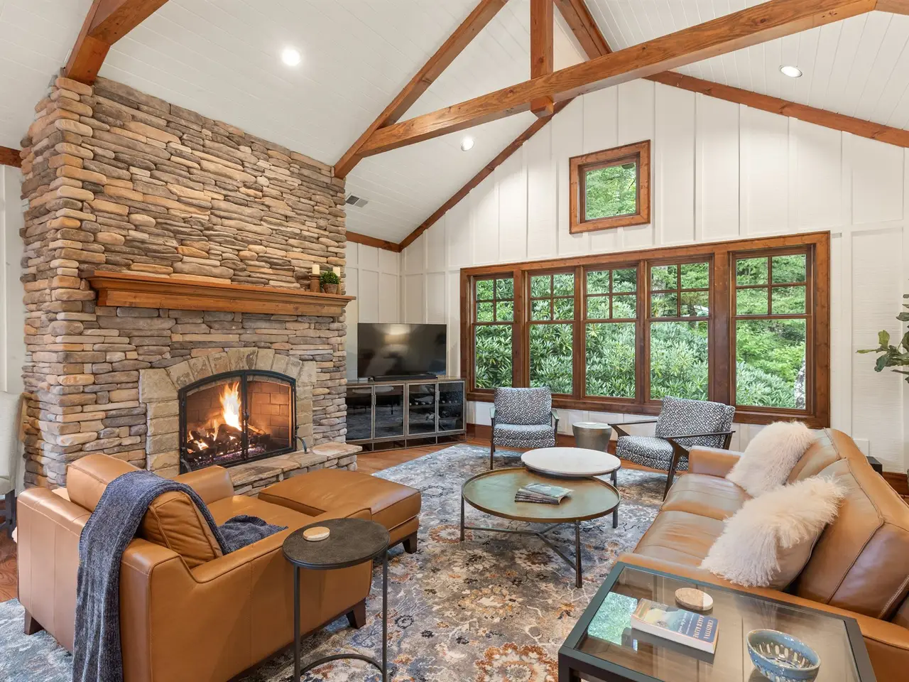 Effortless lock-and-leave luxury awaits at The Birches of Wildcat Cliffs in fabulous Wildcat Cliffs Country Club. This beautifully appointed 3BR/3BA upper-level condominium offers soaring ceilings, abundant natural light, two fireplaces and the convenience of elevator access. The spacious primary suite features a private retreat with a walk-in closet and a tiled bath with both shower and soaking tub options. Designed for comfort and entertaining, the open-concept living and dining areas showcase beamed ceilings, a welcoming fireplace, and seamless flow to the fabulous screened porch complete with its own fireplace for year-round enjoyment of the tranquil mountain setting. Two additional guest suites, a full laundry room, a one-car carport, and golf cart parking in the new community golf cart barn provide both functionality and convenience. Sold turnkey (with only a few exceptions), this residence has been thoughtfully updated with new carpet (Fall 2023), a well-equipped kitchen, high-quality bedding and mattresses, modern TVs, and stylish furnishings just two years old. Located on one of the most sought-after streets in Wildcat Cliffs, residents enjoy an active, welcoming community. Simply hop in your golf cart to visit the clubhouse, driving range, or croquet lawn. With membership appurtenant to the property, owners benefit from exceptional amenities and a vibrant social scene?all while savoring the ease of mountain living at its finest.