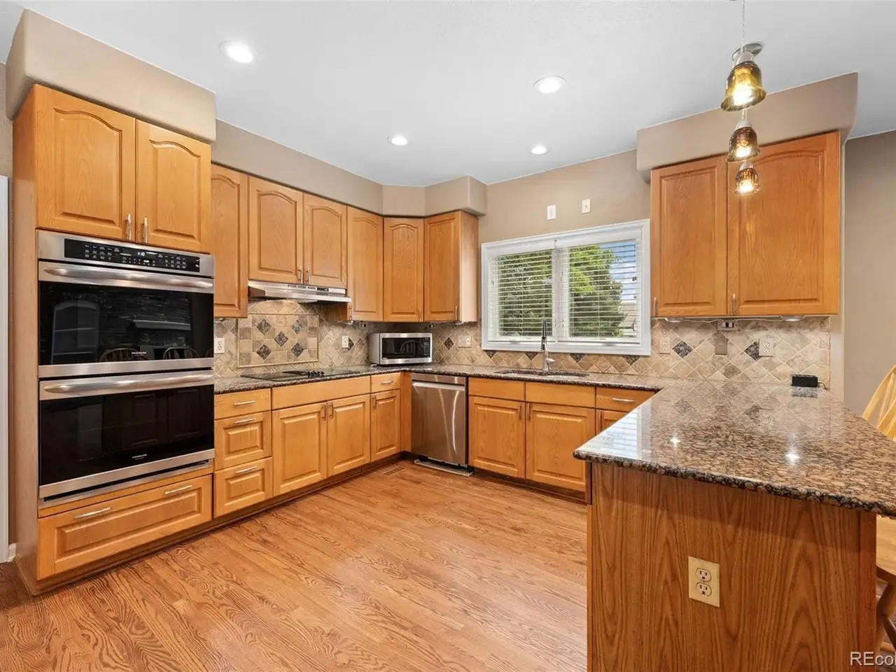 Nestled in the highly sought-after Stratton Ridge neighborhood of Highlands Ranch, this spacious 6-bedroom, 4-bathroom home offers over 4,400 finished square feet of comfortable living on a nearly 11,000 sq ft corner lot, with no homes overlooking from behind and just seconds from the nearby greenbelt featuring a year-round stream and trails. Step inside the traditional floorplan featuring formal living and dining areas, a soaring family room with brick hearth and gas log fireplace, and a thoughtfully designed kitchen with granite countertops, stainless steel appliances, and double ovens. The finished basement expands the possibilities for guest space, hobbies, or recreation. The oversized 3 car garage boasts 914 sq ft and plenty of room for a workshop or toy storage. Recent mechanical upgrades make this home move-in ready, including a new roof installed in 2022 with a transferable 50-year warranty, and new furnace and A/C in 2023. Energy-efficient features include Marvin Infinity fiberglass windows (2023), updated attic insulation (2023), and a powerful 10.4 kW Enphase solar system added in January 2025 providing low energy bills. The home also boasts a 75-gallon water heater (2024), Cat 5e wiring throughout, and a 50 amp EV charger outlet in the garage. Security and smart tech abound with a hard-wired HD CCTV system (8 exterior cameras), a DVR setup with web access, and modern infrastructure to support your connected lifestyle. With excellent bones, top-tier mechanicals, and meaningful energy upgrades, this home is ready for a few refreshes and your personal cosmetic touches, and is priced accordingly to reflect that opportunity.
