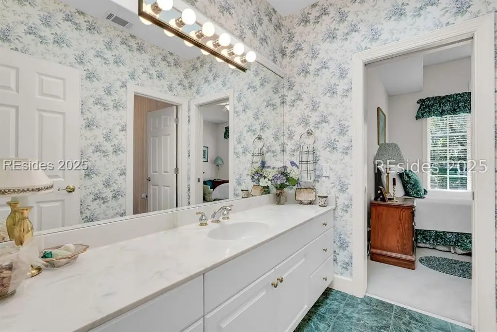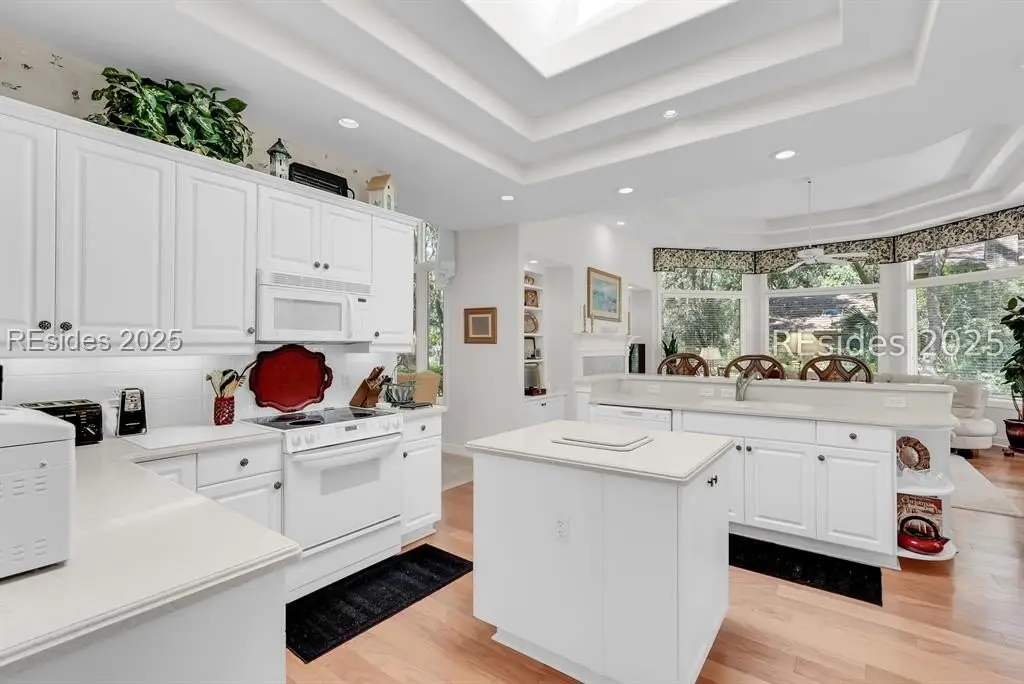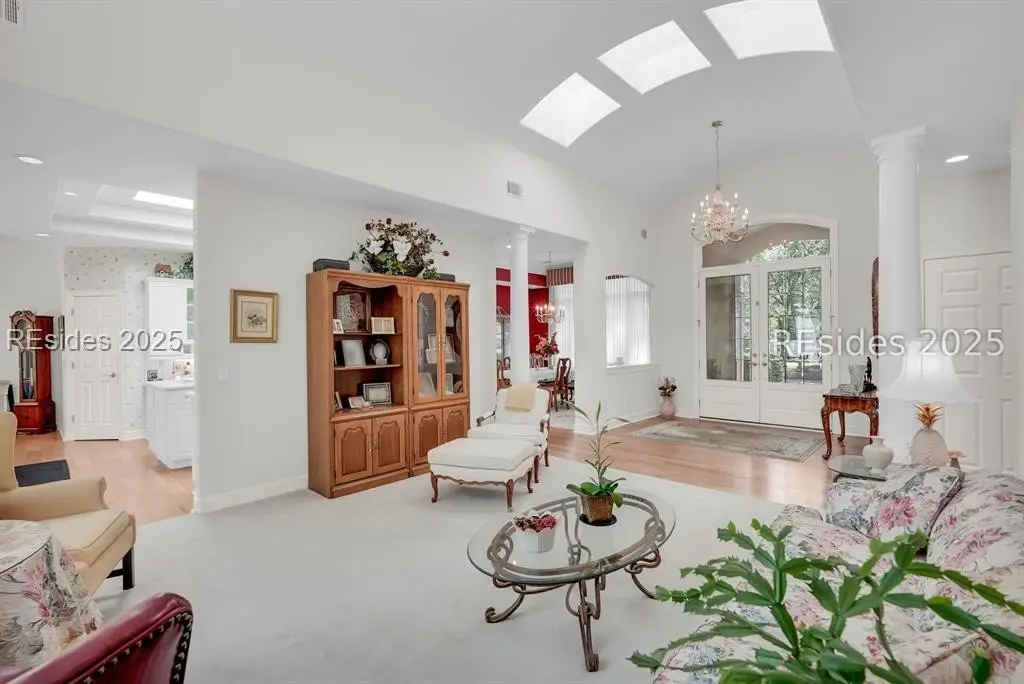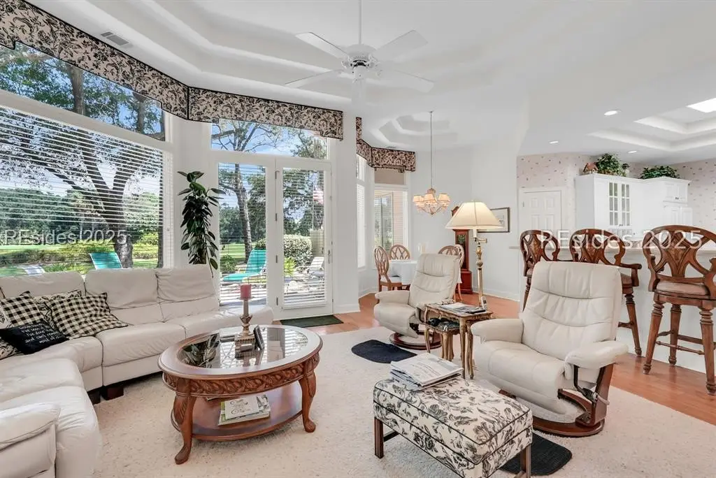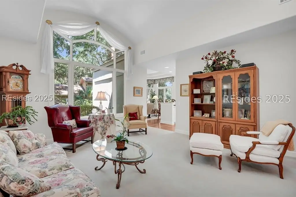Bright, open, and airy. This beautifully maintained Port Royal Plantation home offers single-level living with no steps and a thoughtful layout designed for comfort and convenience. Built in 1999, the home features 2,922 square feet with three bedrooms and two and a half baths. Hardwood floors, smooth painted ceilings, high ceilings, and abundant natural light create an inviting atmosphere throughout. The living and dining rooms are accented by a gas fireplace and wet bar, making the home ideal for entertaining. The spacious primary suite includes a walk-in closet, double vanities, shower, and a jetted tub, with an office just off the suite. A two-car garage and full-sized lot complete the property, which is ideally located near the beach and all of the outstanding amenities Port Royal Plantation has to offer.
