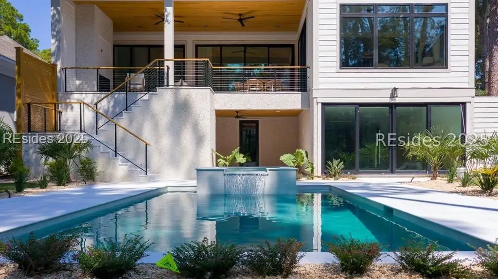 A rare opportunity to own a brand-new construction home in Hilton Head's premier private community. This remarkable residence combines modern design, thoughtful functionality, and elevated Lowcountry living. The main level features a stunning chef's kitchen with an open-concept dining and living space that flows into a spacious outdoor living area with a raised deck and an electric fireplace that overlooks the backyard, pool, and spa - perfect for year-round outdoor living. The primary suite, with a spa-inspired bath, features dual walk-in closets, a large wet room shower, and gorgeous floor-to-ceiling tile work. The main level home office provides a quiet workspace. Upstairs, find four ensuite bedrooms, each designed for comfort and privacy, while an elevator provides seamless access to all three levels. The lower level features a mudroom, a flexible recreation or fitness room, lanai, abundant storage, direct access to the pool and backyard, plus two garages with room for four cars. As a Wexford resident, you'll enjoy unmatched amenities: a private marina, championship golf, tennis, pickleball, croquet, community firepit, clubhouse dining, and a resort-style pool complex. Even more exciting, Wexford is set to unveil a newly expanded Clubhouse and a brand-new Harbour Center in April 2026, further enhancing the community's vibrant lifestyle.8 Fairfax Lane is more than a new home - it's your chance to embrace modern luxury in one of Hilton Head Island's most distinguished private communities.