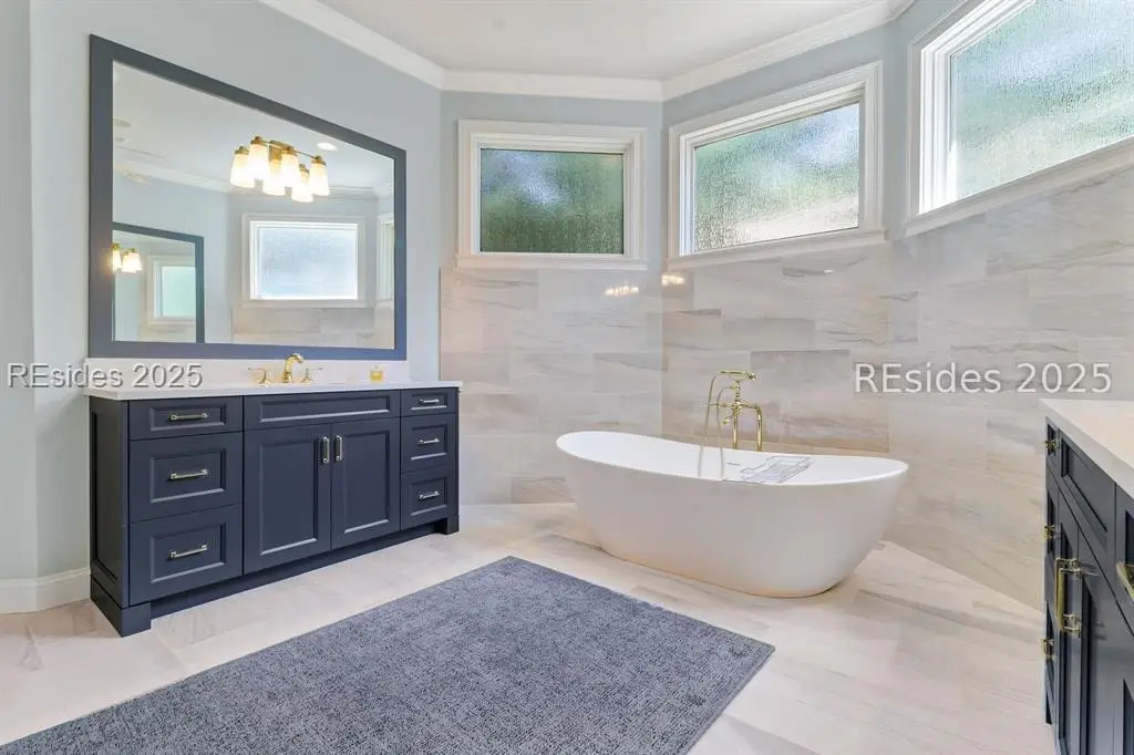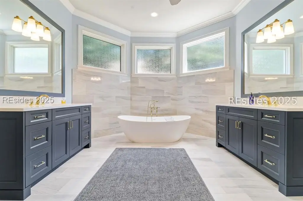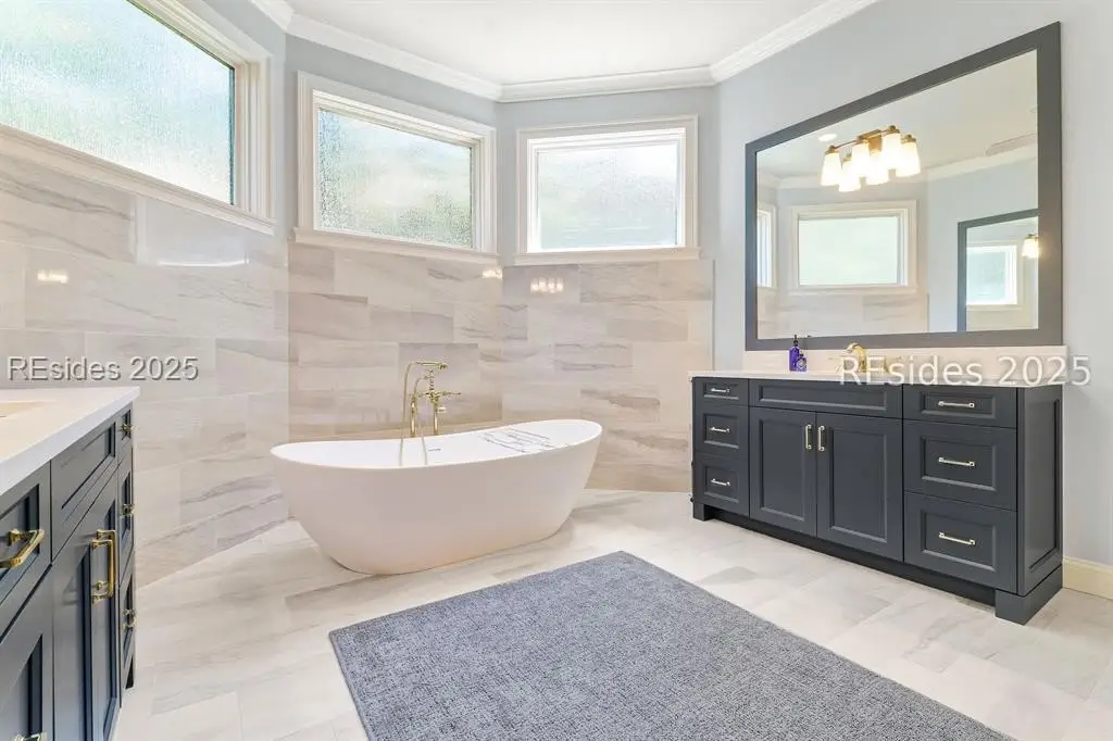 • Recently renovated primary bath with separate vanities, tub, and walk-in shower