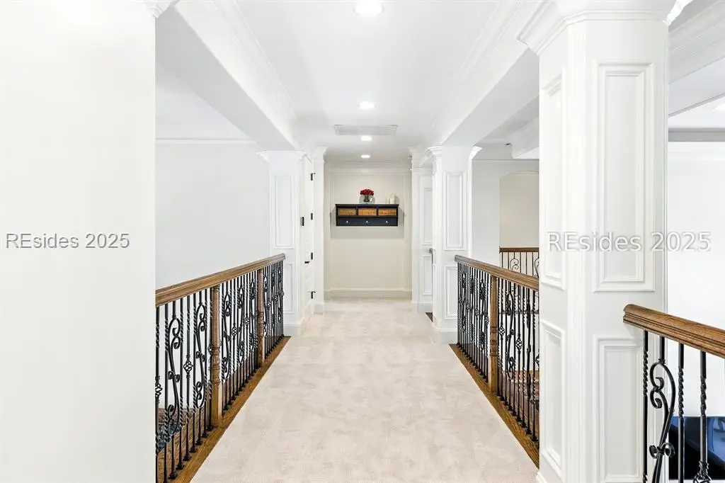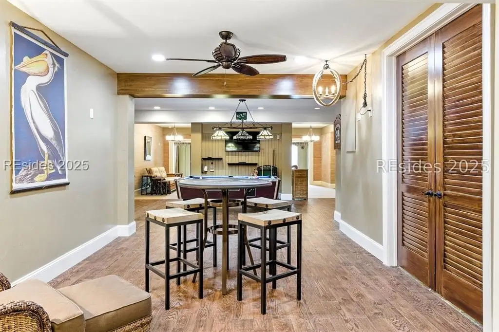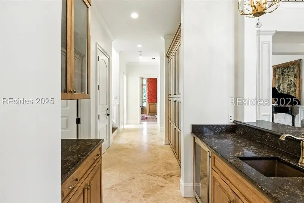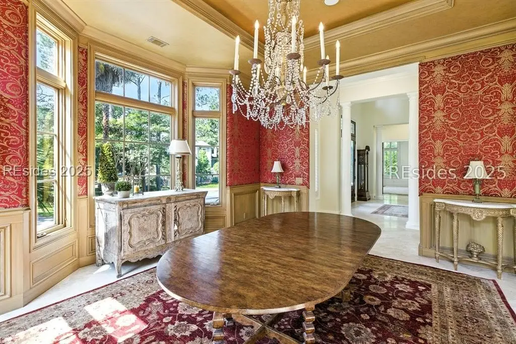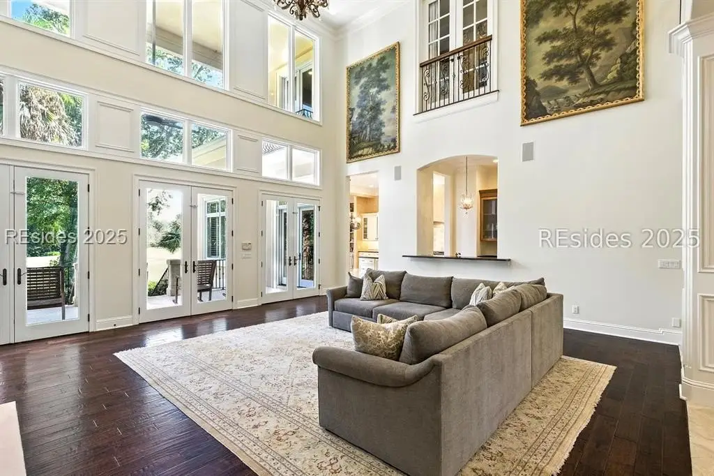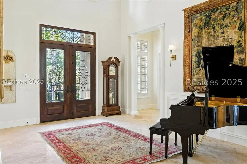 Welcome to this exceptional estate in Wexford, blending grand design with everyday comfort and luxury. A dramatic two-story foyer sets the tone as you enter, leading to a spacious living room, formal dining room with elegant padded acoustic silk wallpaper, and a private office with its own half bath. The heart of the home is a beautifully open kitchen, family, and breakfast area perfect for both casual living and entertaining. The expansive primary suite is a true retreat, offering dual walk-in closets, a separate lighted shoe closet, and a built-in safe all with long fairway views just beyond the 7th green. Also on the main level are a second powder room and a spacious laundry. Upstairs, you'll find three large en-suite bedrooms, a second laundry room, and a fully equipped home theater with a bar, as well as a third half-bath. The lower level offers fun and functionality, featuring a fully finished rec and play area, home gym, full bath, generous storage, an oversized 3-car garage, and 3 stop elevator. Step outside to the screened-in porch with a bar and built-in grill ideal for poolside entertaining. The private pool and fire pit area complete this serene Lowcountry setting. This home truly has everything. Wexford offers world-class amenities, including golf, tennis, pickleball, croquet, a private marina, two pools, and more. One of Hilton Heads most exclusive gated communities.