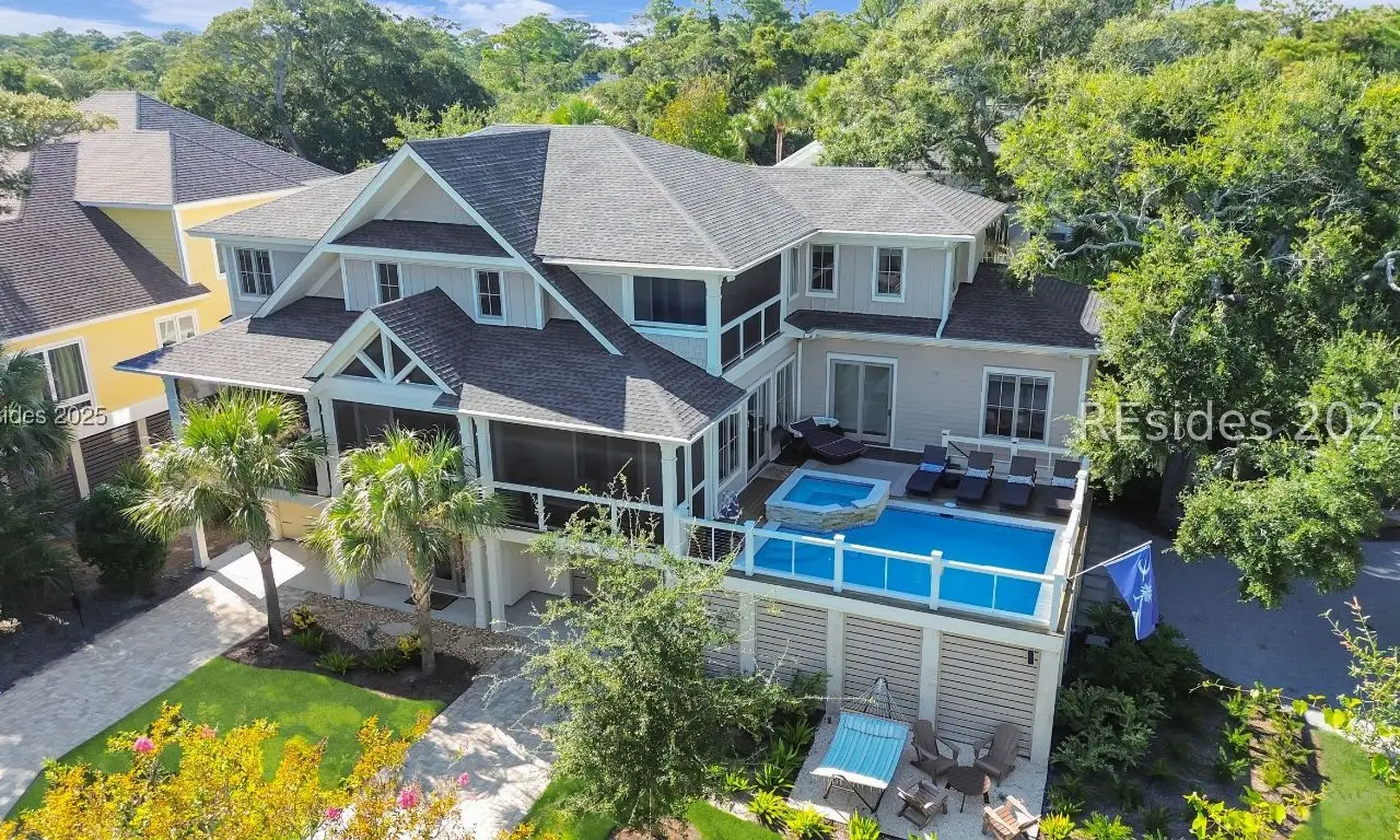 Own one of Hilton Head's most coveted beach homes, 134 Dune Lane, an expansive luxury retreat situated on a corner lot directly across from the beach path and 12 miles of pristine beaches. This custom-built second-row home offers peek-a-boo Atlantic Ocean views from multiple floors, with 4 private primary suites, an elevator to all levels, and dual living areas with 65" TVs. The gourmet kitchen features double ovens, 2 refrigerators, wine fridge, and ample space for entertaining. Enjoy the screened porch, gas grill, and private pool/spa on the elevated sun deck. The garage includes ping pong & shuffleboard, and there's ample parking with two driveways. Located just a quick bike ride from Coligny Plaza, this home blends luxury, privacy, and proximity to endless activities and food options. 134 Dune Lane is the perfect 2nd home, income property with over $300,000 in projected rental income, or primary residence.