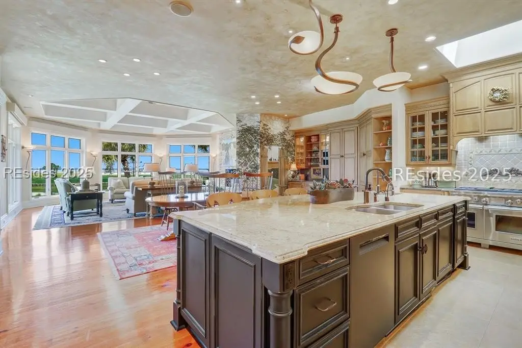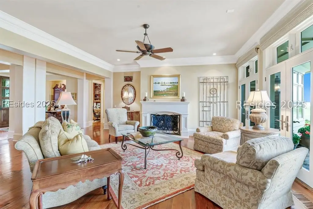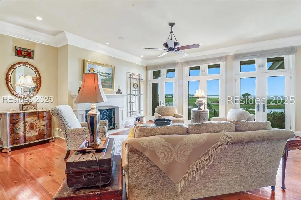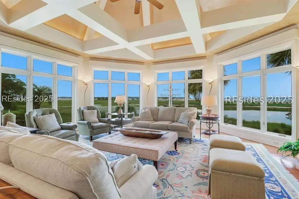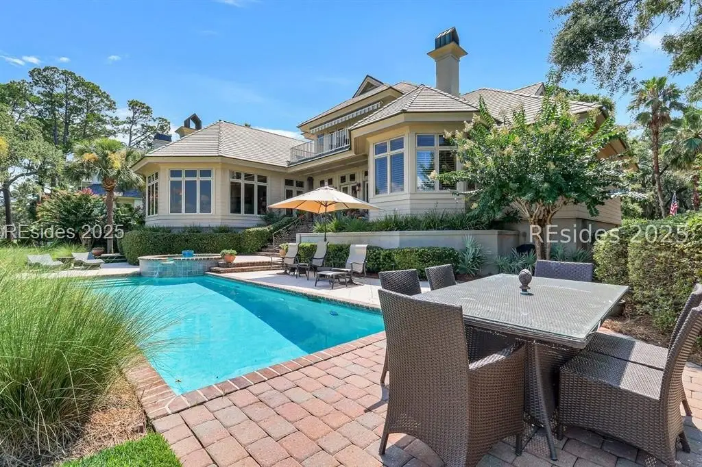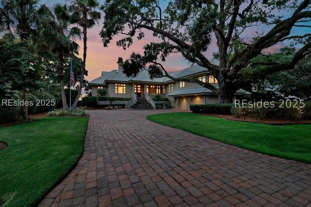 Discover luxury, views, and timeless Sea Pines living in this one of a kind residence built by award winning builder, Dan Lawrence and designed by well-known local architect Jakie Lee. This property offers a rare combination of Lowcountry charm, impeccable quality, and panoramic marsh-to-golf to sound views overlooking the iconic 17th hole of Harbour Town Golf Links home of the elevated PGA RBC Heritage. The interior features of this home are captivating with the extensive trim work, antique heart of pine flooring, custom iron work, and faux finishes by local artisans. Enjoy elegant living and dining spaces. Other features include designer lighting, dream kitchen/family room, impressive first floor owner suite, and spacious guest suites. Outdoor living is unmatched with a heated/chilled pool and spa, covered patio, and lush landscaping-perfect for enjoying the everchanging sunsets while watching golfers, nature, and boating right out your back door. A truly unforgettable Low Country property!