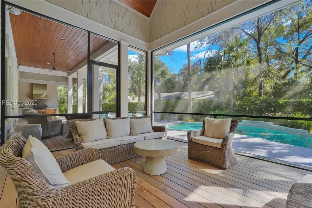 Not your typical beach house - this is the one you've been waiting for. Just 10 rows from the ocean in the heart of Sea Pines, 18 Baynard Cove Road was designed as a forever home. Built in 2018 on a prime corner lot, this custom Modern Farmhouse combines high-end comfort with a coastal vibe - vaulted ceilings, a chef's kitchen flooded with natural light, a serene and spacious primary suite, and multiple indoor and outdoor gathering spaces. Enjoy the peace of impact-rated windows and doors, a screened porch and covered patio with outdoor kitchen, and a private, heated pool tucked into a lush setting. Whether you're seeking a primary residence, a second home, or a proven rental (projected $146,000 in 2025 income), this home delivers it all - along with effortless access to Sea Pines beaches, golf, dining, and bike trails. Take advantage of this rare opportunity to own one of the finest properties in the neighborhood. This is more than a beach house it's a lifestyle. Come experience it for yourself.