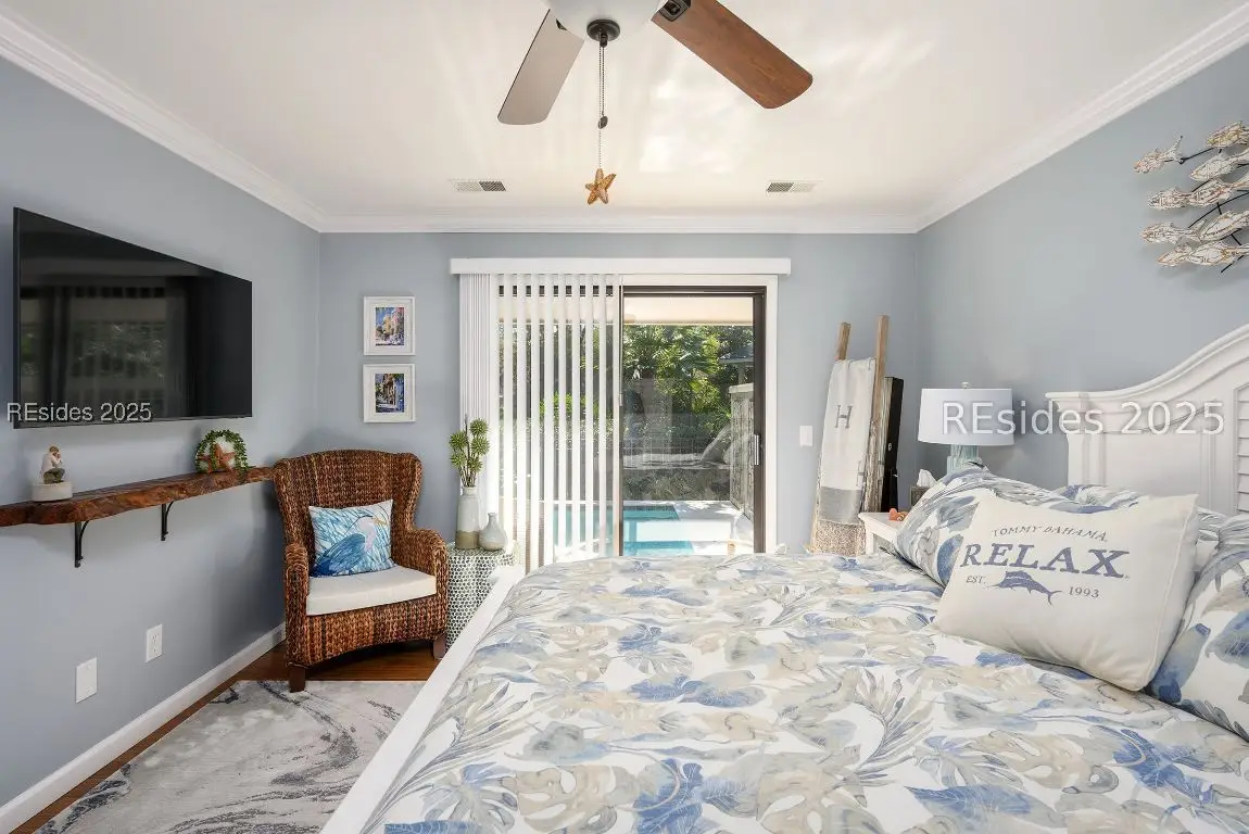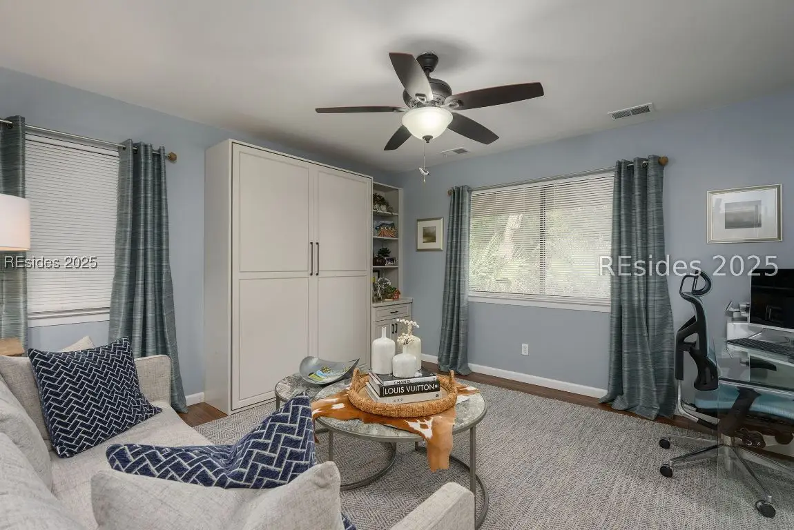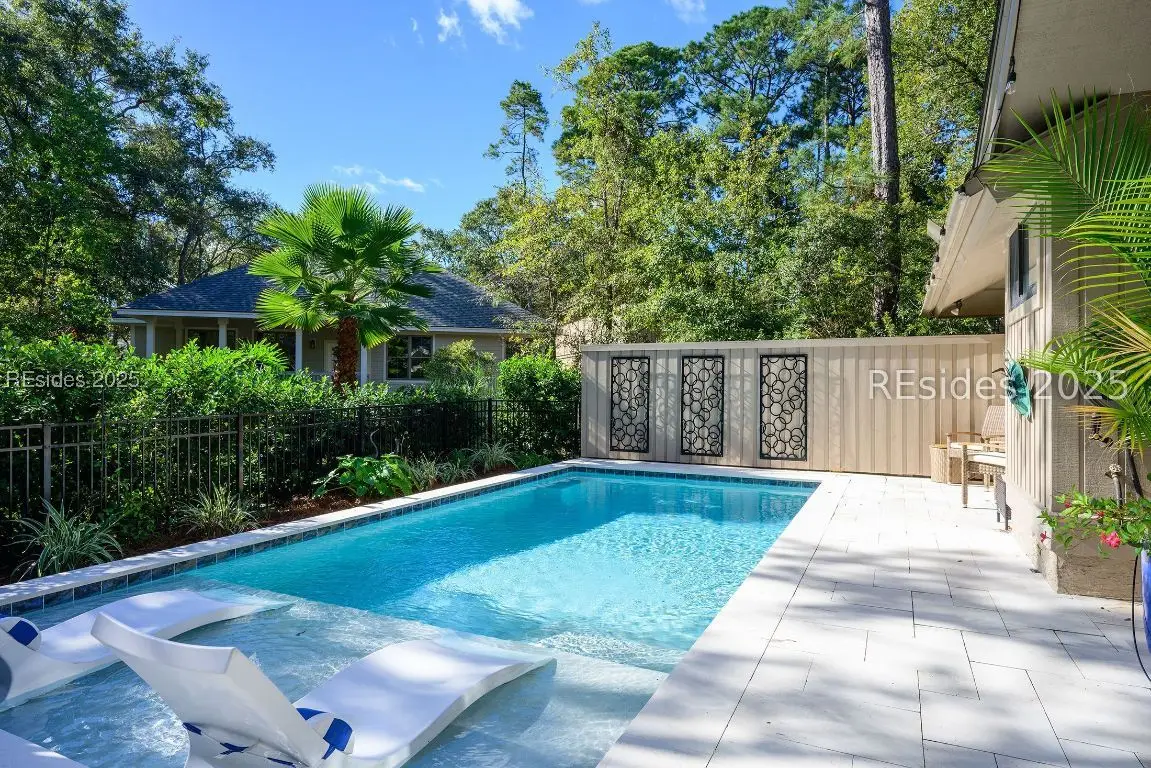 This remarkable 3-bedroom, 2.5-bath home in Sea Pines offers the perfect blend of coastal charm and modern comfort. Many updates include new HVAC, newly remodeled bath, new roof, custom Murphy bed in guest bed/office. Tastefully decorated and thoughtfully updated throughout, it offers stylish finishes and abundant natural light. The highlight is the brand-new heated pool with travertine patio surrounded by lush landscaping-ideal for relaxing or entertaining after a day at the beach. This home embodies effortless Lowcountry living at its finest.