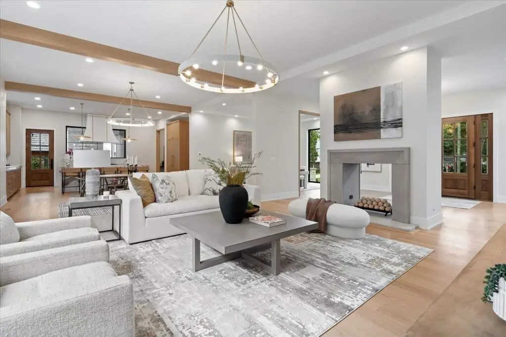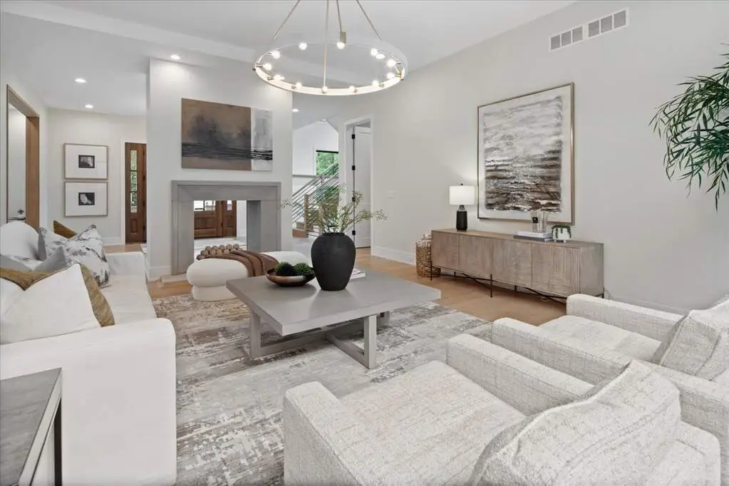 Designed by Richard Olsen of G.O. Architectural Design and Loch Alainn Construction LLC, this newly constructed 7-bedroom, 7.5-bath residence embodies the charm of a Belgian-style farmhouse with the refinement of modern luxury living, exuding timeless sophistication. Natural materials, warm wood tones, and crisp white brick create a striking exterior that welcomes you into a home designed for both beauty and function. Step inside the double-wide front door, to your Grand Foyer which sets the tone for the entire home; showcasing Chevron White Oak hardwood flooring, 12-foot ceilings, and a limestone double-sided fireplace. The open floor plan seamlessly connects the well-appointed kitchen, expansive great room, and elegant dining areas - all perfect for entertaining. Floor to ceiling windows drench the home with sunlight. A first-floor in-law suite offers convenience and privacy, providing comfort and style for family and guests alike. The gourmet kitchen is a true work of art, featuring a 10 ft. waterfall edge island, custom range hood designed in a picture like setting in front of the windows, to maximize the natural light. Subzero Refrigerator and Freezer, additional refrigerator and freezer drawers, Bosch dishwasher, Wolf double oven range. The Scullery pantry includes additional food storage, dishwasher and prep space - the perfect addition for entertaining guests. Escape to your primary bedroom retreat, with cathedral ceilings, fireplace, spa like bathroom with heated floors, wet room with Kohler shower and soaking tub. All second floor bedrooms are en-suite, and the third floor bedroom suite is perfect sanctuary for guests or an au pair. Retreat to the lower level, where a fully finished basement features a state-of-the-art Media room, 7th bedroom or fitness room, and full bath. Ample recreation space allows for a custom wet bar, with quartz counters, refrigerator and freezer drawers, and game area. Outdoor living is equally impressive - a covered terrace with a stone gas fireplace invites gatherings year-round, framed by lush landscaping and architectural detailing that elevates the home's European-inspired design. Every inch of this exceptional home showcases meticulous craftsmanship, curated finishes, and a serene sense of balance - a rare blend of rustic charm and modern sophistication in one of Hinsdale's most coveted settings.