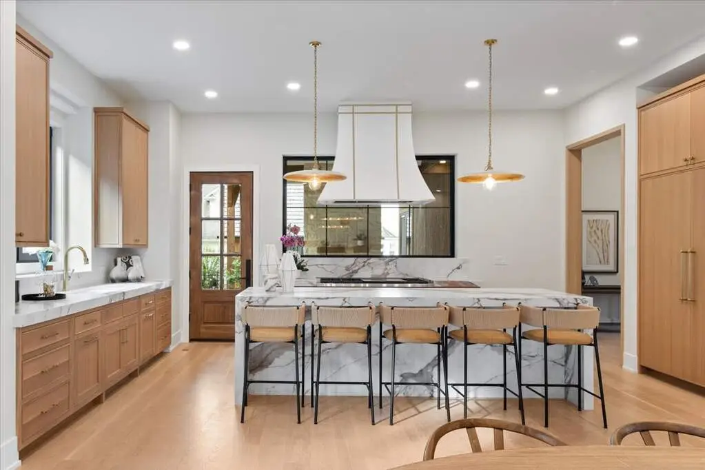 • Gourmet kitchen with 10 ft. waterfall edge island