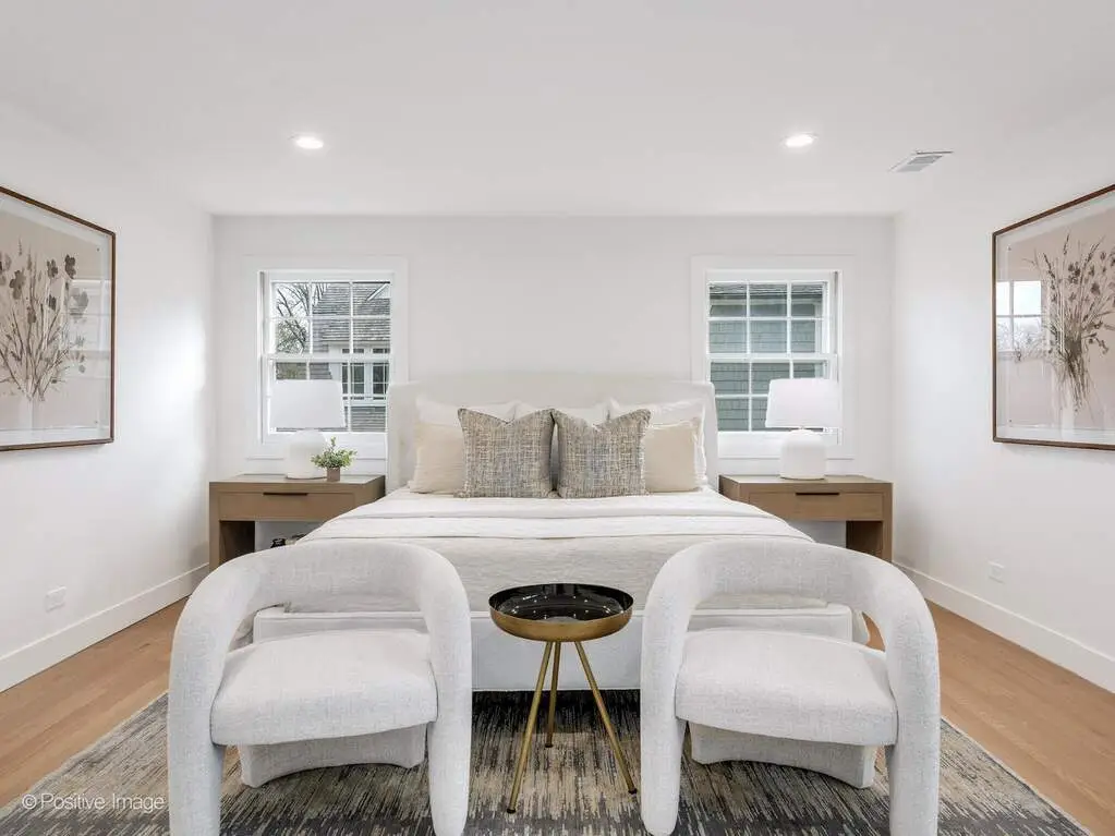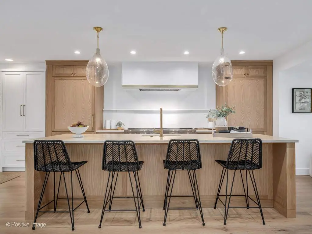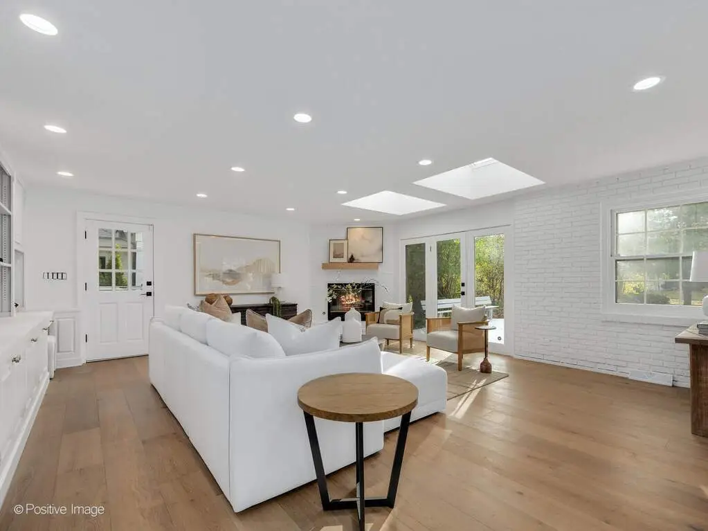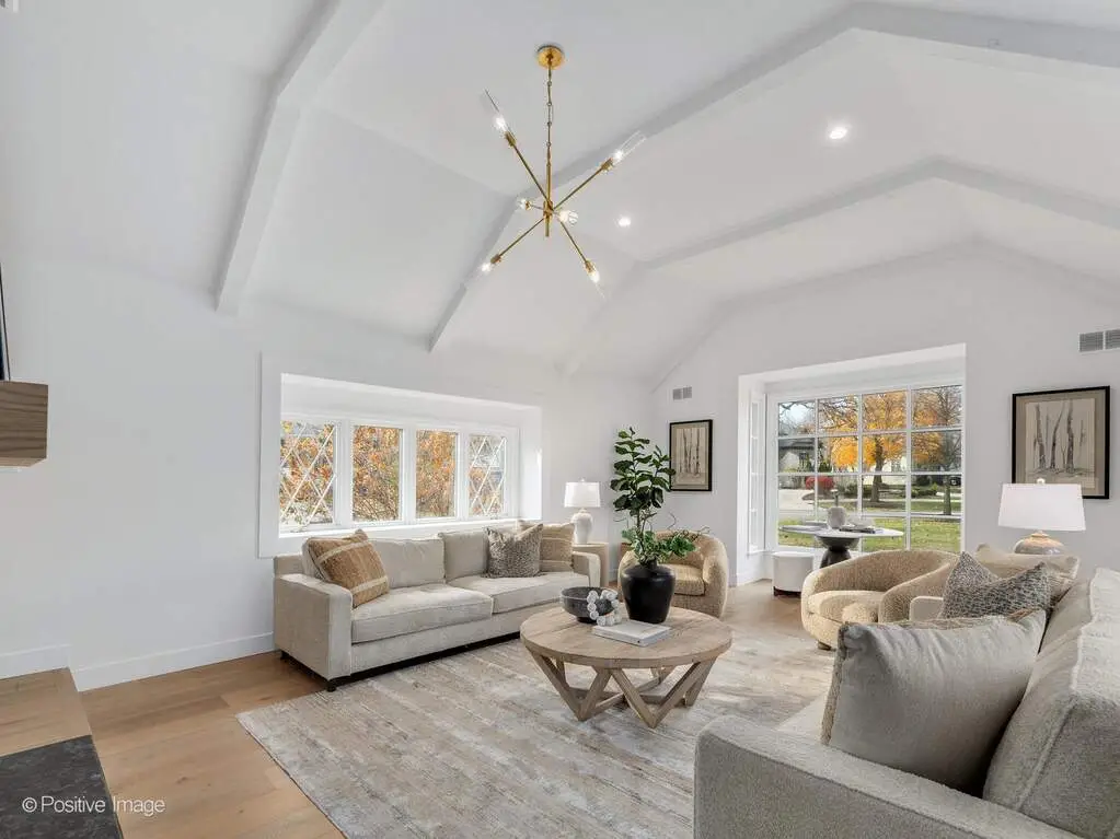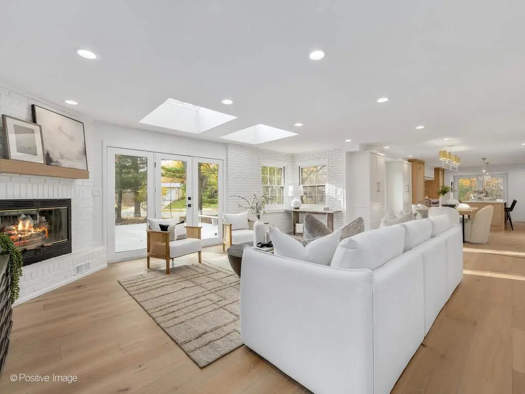 Experience California-inspired organic chic in this fully reimagined 2025 renovation by a California designer and Hinsdale native. Natural materials, warm textures, and high-end craftsmanship come together to create a home that feels elevated and deeply inviting. European white oak floors, Farrow and Ball paint, brass hardware, and Visual Comfort lighting throughout establish a refined, modern-organic aesthetic. Step inside to a calming, modern living room where a dramatic stone fireplace warmly anchors the home. This impressive architectural centerpiece is open to both the living room and the adjoining great room, which features striking vaulted ceilings and stunning windows, adding volume, natural light, and architectural lift. The space flows into the custom white oak kitchen, which opens seamlessly into a comfortable, light-filled family room. The kitchen is a true focal point, anchored by an oversized 10 foot white oak island wrapped in Taj Palazzo Orion Quartz on both the island. Custom recessed white oak cabinetry, two 36-inch Sub Zero built-in refrigerators, and a professional 48-inch Wolf dual fuel range with eight burners create a chef-level environment. The primary suite offers a serene retreat with a spacious walk-in closet illuminated by a designer chandelier. The spa-like bath features a custom inset white oak vanity, Calacatta Gold Quartz, Brizo and Kohler fixtures, and a natural pebble-stone shower floor. The second floor also includes four additional bedrooms, one of which can flex as a bonus room, office, or playroom. A gorgeous second-floor laundry room features designer tile and an oversized rattan fixture. The lower level offers 1,716 square feet of flexible living space with a full bath and an open palette ready for your family's vision. Set on a wide peninsula-style 0.34 acre lot with rare 187-foot frontage, the property offers open space, presence, privacy, and generous room to enjoy outdoor living. Exterior features include an attached garage with natural wood garage doors, elegant gas lanterns, professional landscaping, mature trees and landscape lighting. Located in the award-winning Monroe School, Clarendon Hills Middle School, and Hinsdale Central High School district. A rare, thoughtful renovation blending California warmth with Midwestern livability, beautifully designed from top to bottom.