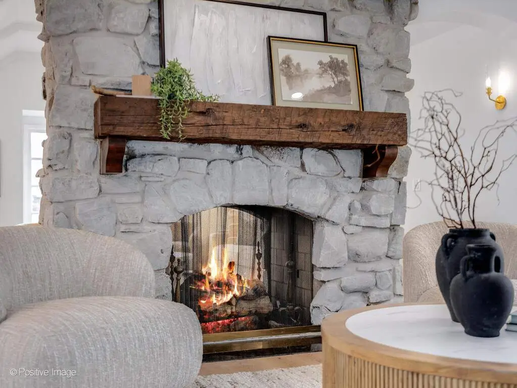 Dramatic stone fireplace