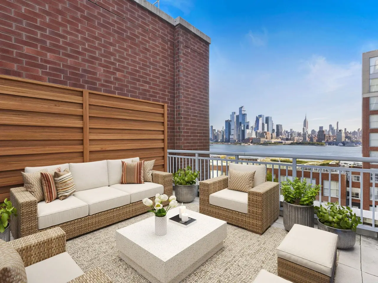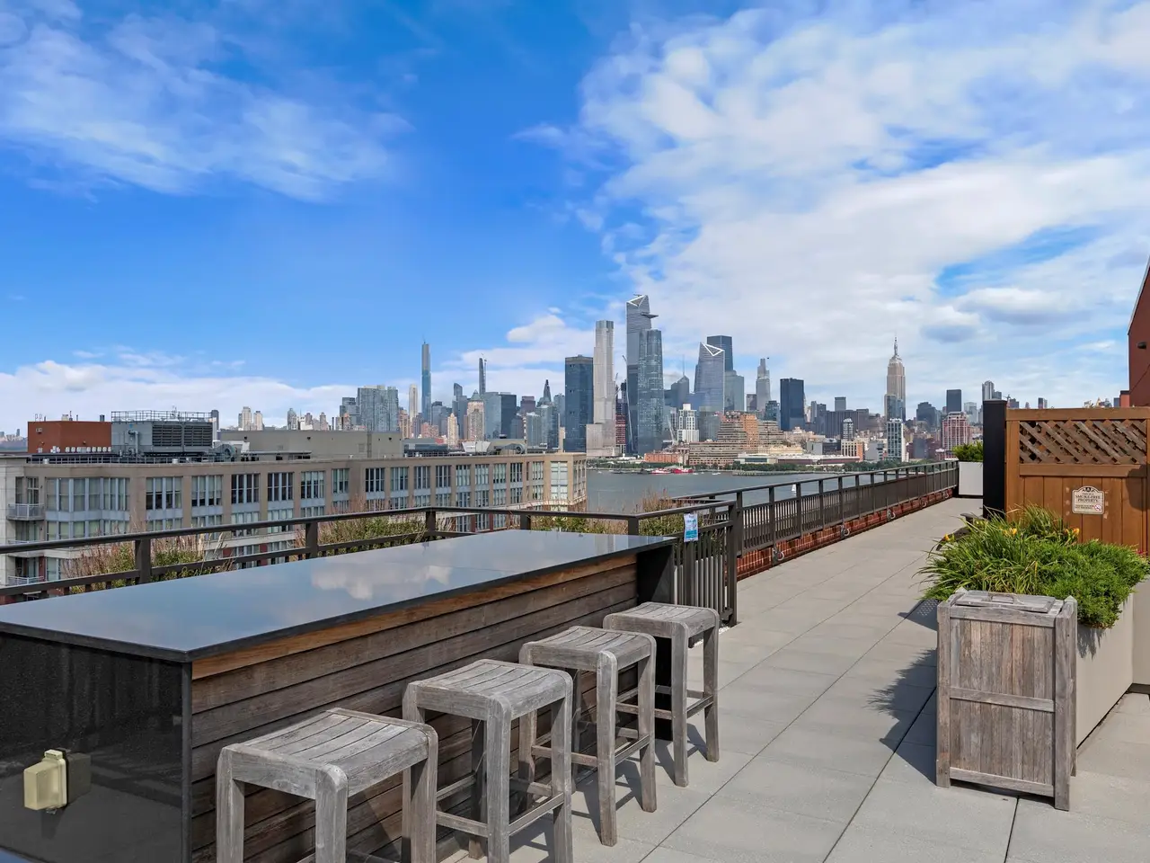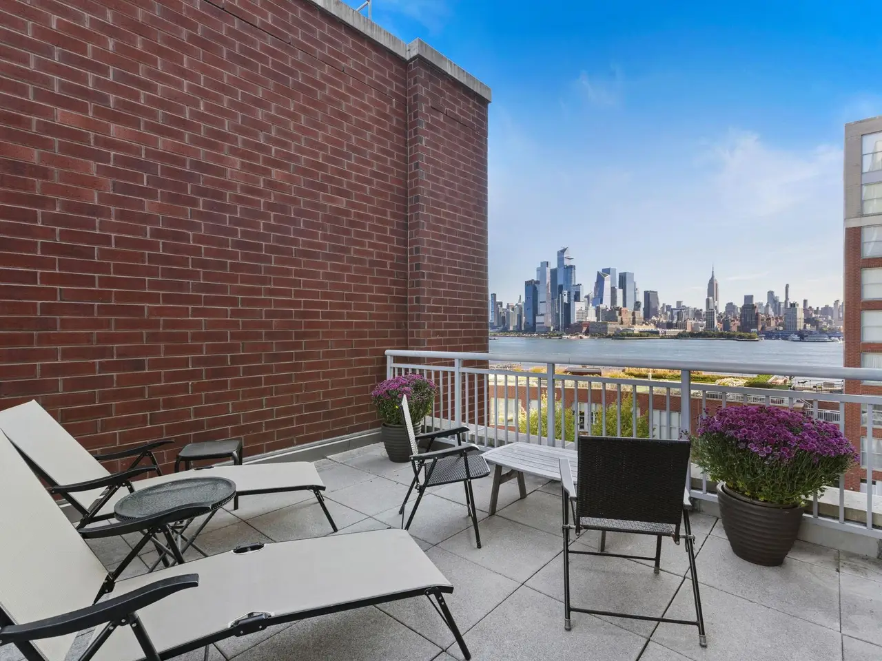 Enjoy breathtaking NYC skyline and river views from this stunning 2-bedroom, 2-bath home in Hoboken's premier luxury community, Maxwell Place. This residence features an attached private terrace with direct Manhattan views, extending from both the terrace and the primary bedroom, with additional skyline glimpses throughout the home. The open-concept layout is enhanced by new floors throughout and a kitchen equipped with stainless steel appliances and quartz countertops. The spacious primary suite offers a walk-in closet and a luxurious bathroom with a soaking tub and separate shower. Experience resort-style living with an impressive suite of amenities, including 24-hour concierge, two fitness centers, two pools, Jacuzzi, yoga room, billiards room, theater room, resident lounges, rooftop decks with fire pits and BBQ grills, common courtyard, bike storage, and a private shuttle to and from the PATH. Perfectly situated near shops, restaurants, the NYC ferry, and all major transportation, this home truly defines luxury waterfront living and is a commuter's dream.