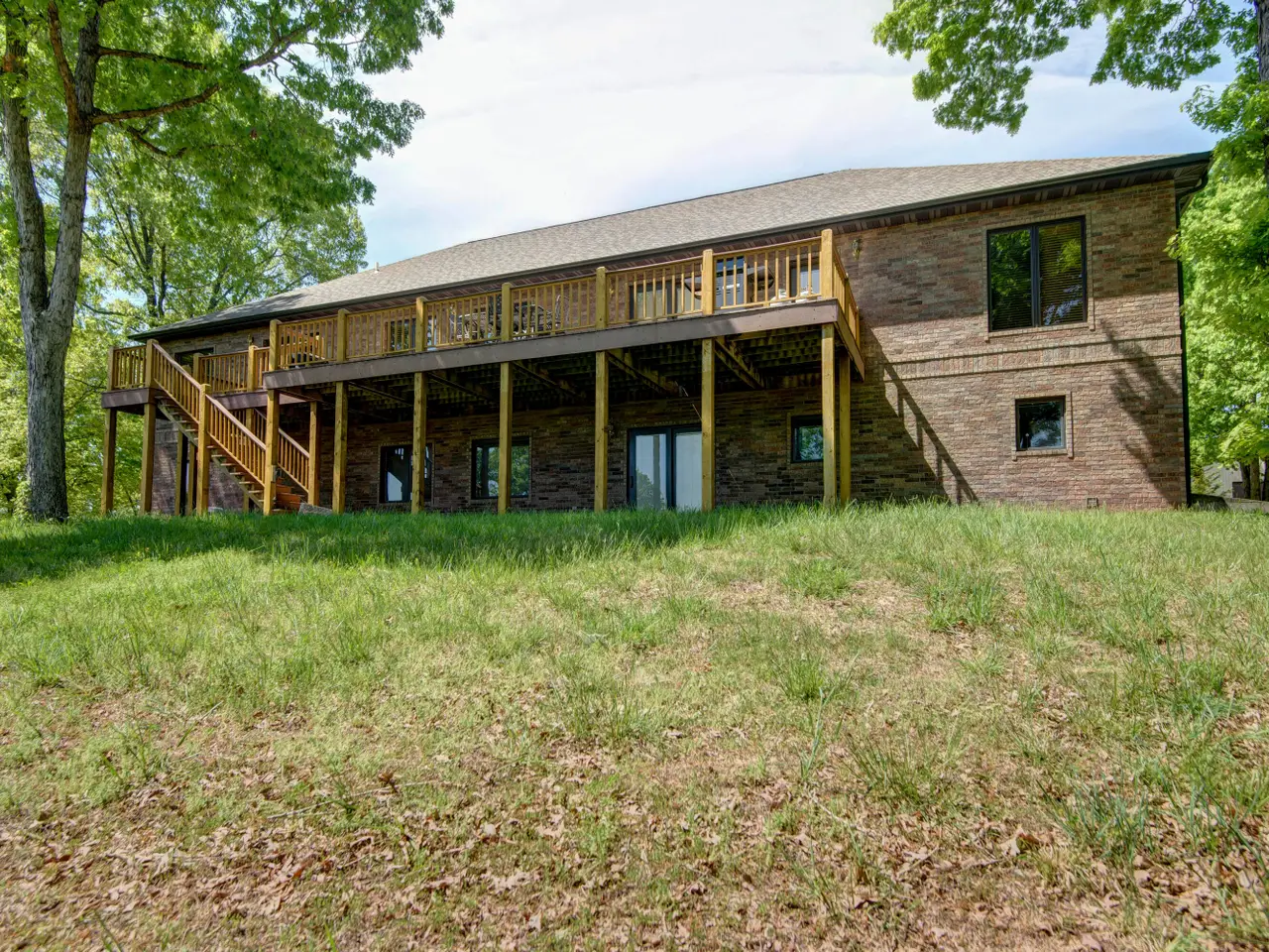 A true Ozark Mountain Estate with 80 acres, a 50'x56' shop building, catfish pond, ATV trails, and a nearly 5,000 square foot brick home. Overlooking the beautiful hills of Branson Creek and Buffalo Ridge, privacy meets convenience at the end of Carlton Rd; with easy access to Hwy 65 and close-by Table Rock Lake, Big Cedar Lodge, Top of the Rock, and all of the action and amenities of Hollister and Branson. This well-maintained home has superb curb appeal and features rustic wood touches that beautifully offset the solid brick exterior. The FLAT easy access driveway makes life simpler. Inside the house there are beautiful oak floors, very spacious rooms, 2 master suites on the main level, large laundry room with wonderful built-in cabinets, and a big kitchen with double ovens, bar seating and granite countertops. The huge deck looks out over the pond and trees. Downstairs there is a family room, bar area, 2 more bedrooms, a true storm shelter, a John Deere room, and an additional garage. The huge shop building has three 14' doors and is perfect for an RV or any kind of equipment. These big tracts are getting harder to come by, and this one is a little slice of paradise!