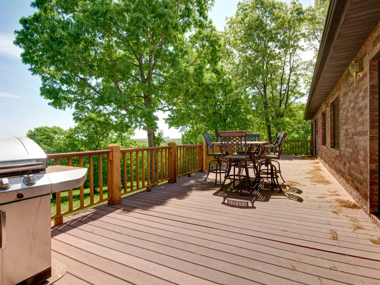 Large deck overlooking pond