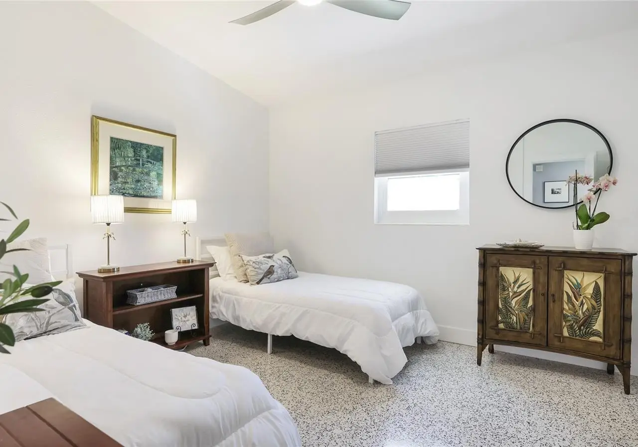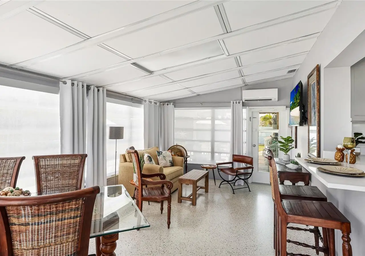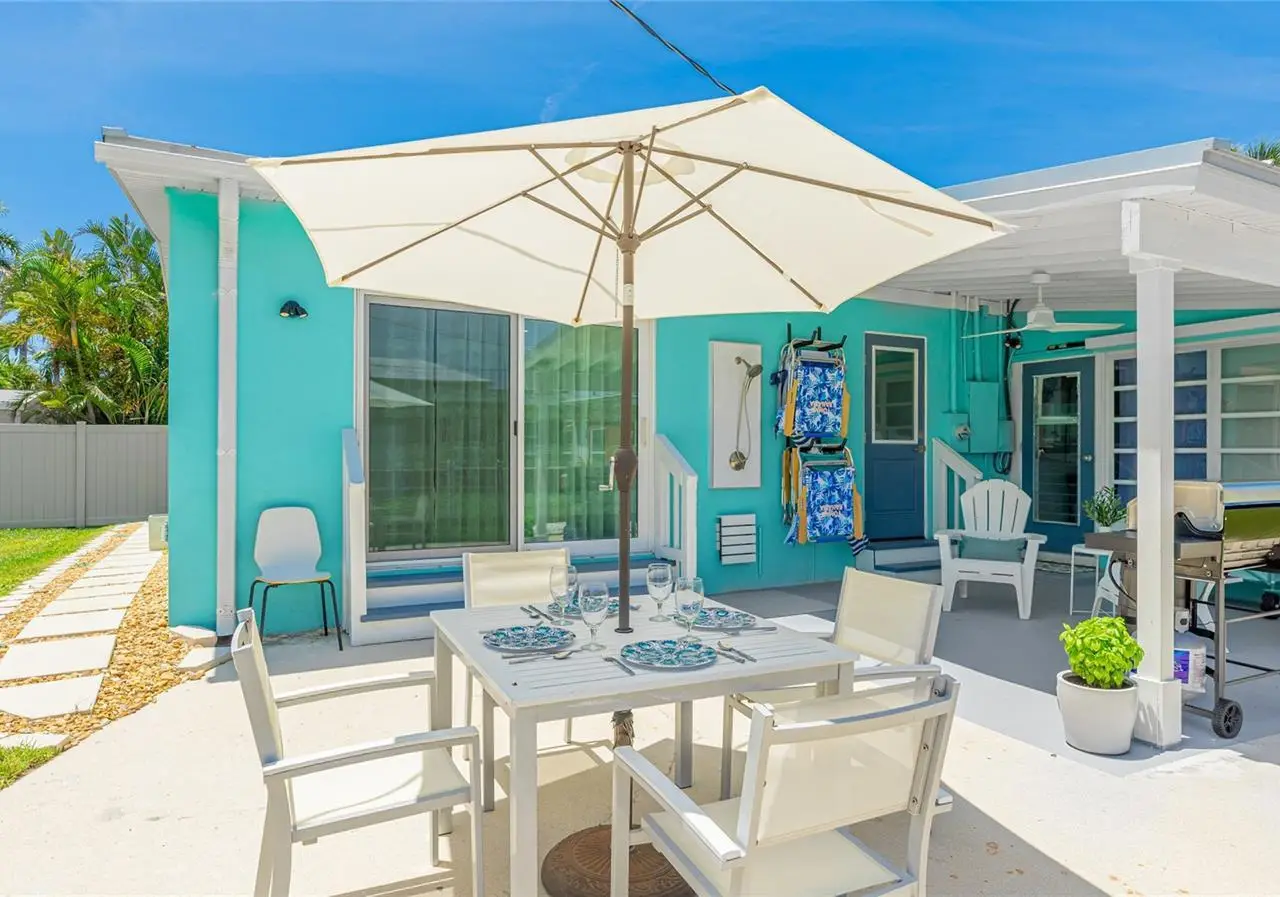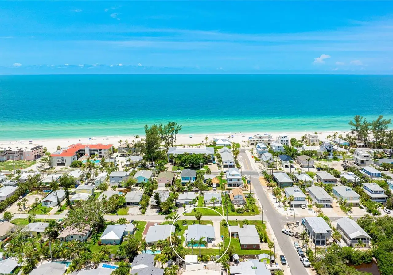 CUSTOM QUALITY HOME REMODEL: Welcome to Turquoise Beach Bungalow - your perfect slice of island life. Completely reimagined inside and out in 2024-2025, this vibrant coastal retreat combines classic island charm with modern comfort and craftsmanship. Every detail has been thoughtfully considered, from the new seamless metal roof and fresh stucco exterior to the all-new appliances, three new AC units, and a tankless water heater. Inside, the home offers timeless terrazzo floors and an expanded layout featuring a new approximately 350-square-foot primary suite with a beautifully appointed ensuite bath and both indoor and outdoor showers - ideal for rinsing off after a day at the beach or enjoying a private open-air experience. The newly remodeled kitchen is a showpiece with quartz countertops, stainless steel appliances, and abundant storage, flowing easily between the family room and a flexible third bedroom currently used as a second living area. The primary bedroom has high quality epoxy floors. The laundry room is conveniently located inside but right off the patio for coming in from the beach. Outdoors, the covered patio invites relaxation or entertaining, and the oversized backyard provides plenty of space to create an expansive pool and lounging area perfect for soaking up the island sunshine. Situated in a peaceful neighborhood just a short stroll from the Gulf beaches and Intracoastal Waterway, this home offers both serenity and convenience. Centrally located between the island's two bridges, you'll enjoy easy access to local shops, dining, and island attractions. An added benefit of this location is the ability to lease boat slips just a block away on Avenue B through the City of Holmes Beach. Being sold turnkey furnished and ready for you to move in and start living your island dream. Schedule your private showing today.