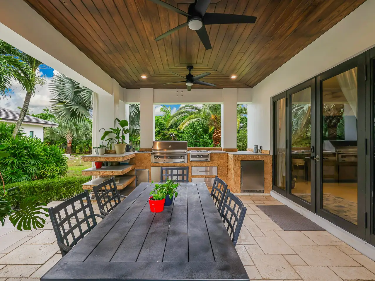 This impressive 10-acre Redland estate was meticulously constructed in 2017. It includes a 1,400 square foot guest house. The primary residence spans over 5,583 sq ft with impact doors & windows. It features 4 bedrooms, 4.5 bathrooms, an office and a 2 car garage. Formal dining and living room has a built-in bar area, offering an elegant space. Each bedroom includes a private bathroom and walk-in closet. The chef's kitchen with solid wood cabinets and exquisite white quartz countertops. The expansive family room leads to an outdoor built-in BBQ and patio area. Travertine patio floors, pool, and fireplace area, ideal for hosting guests. This estate offers the privilege of residing in your own private paradise with a variety of tropical plants that allow you to experience nature at its best.