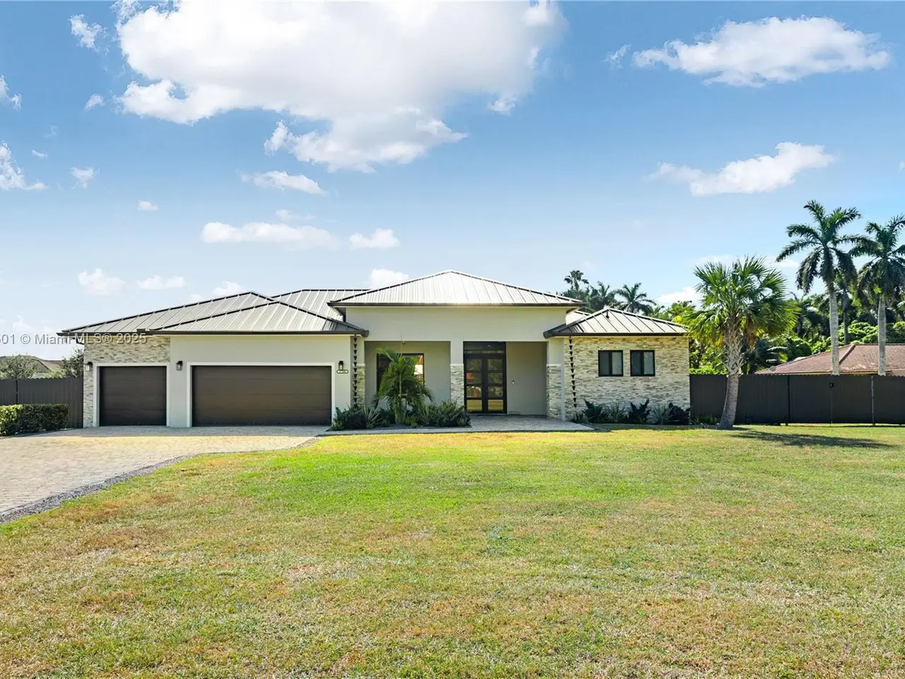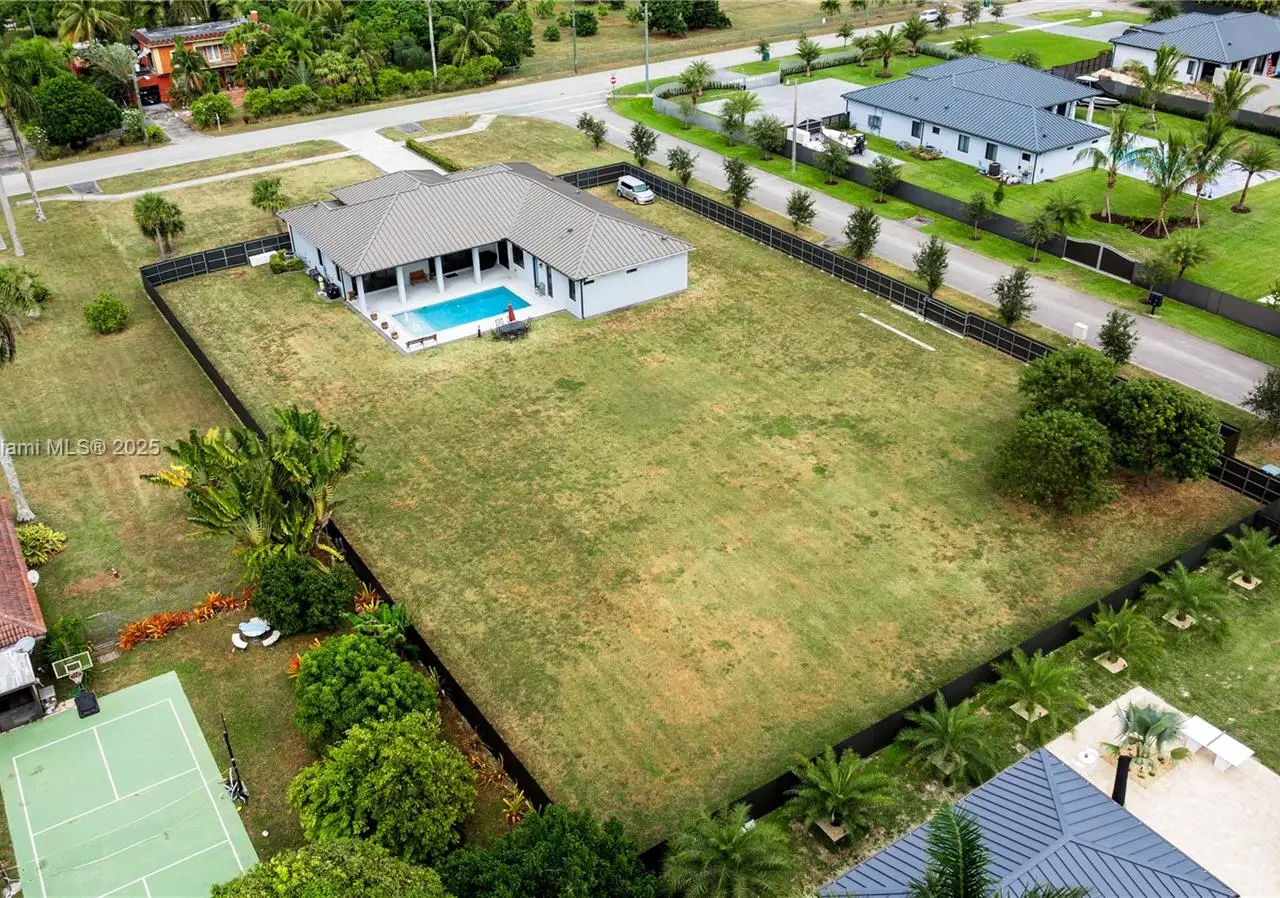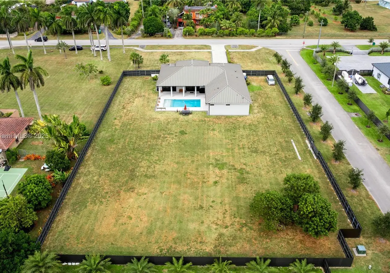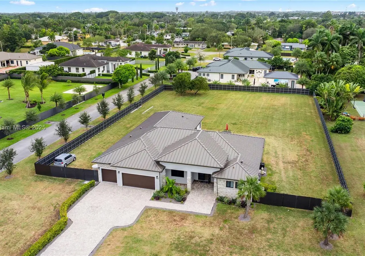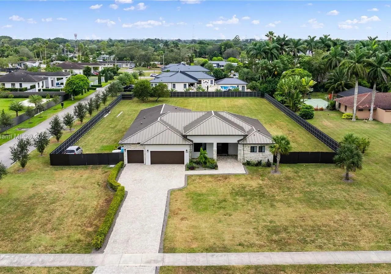 Step into the luxurious Avocado Estate, a stunning 5-bedroom, 4-bathroom home with a 3-car garage, situated on a sprawling 1-acre property. This exquisite residence features a saltwater Pool with captivating LED lights and a stunning aqua quartz finish. Inside, you'll find modern touches such as porcelain wood plank flooring, a dream kitchen featuring top-of-the-line Samsung appliances, quartz countertops and a grand cooking island with pull-out cabinets. The custom walk-in closets provide ample storage, while flat screen TVs in every room & a smart electric fireplace offer the ultimate in convenience and comfort. Ideal for hosting extended family or guests, the in-law suite offers a private sanctuary. Additional highlights include metal roof, impact doors/windows & private metal fence..