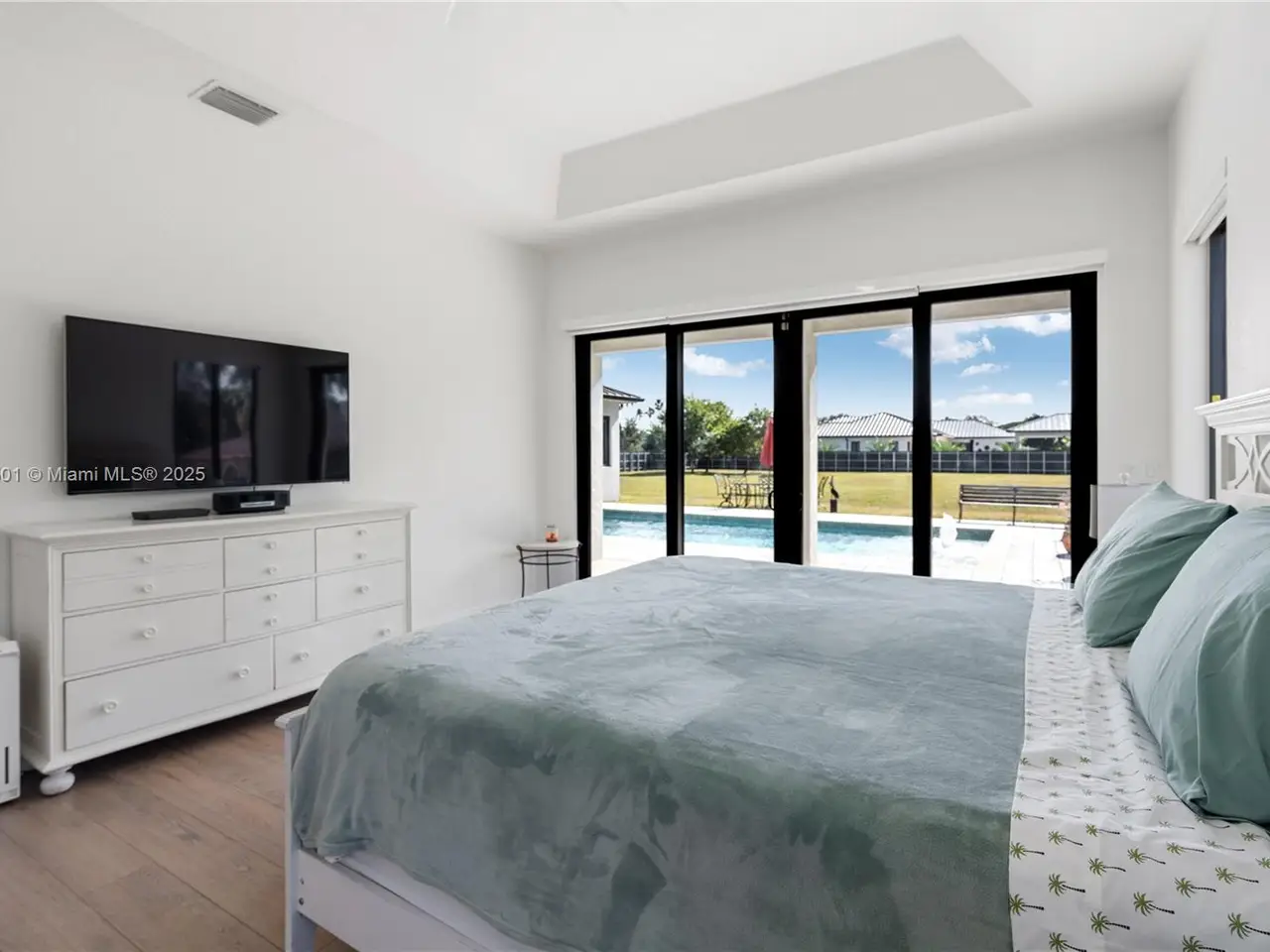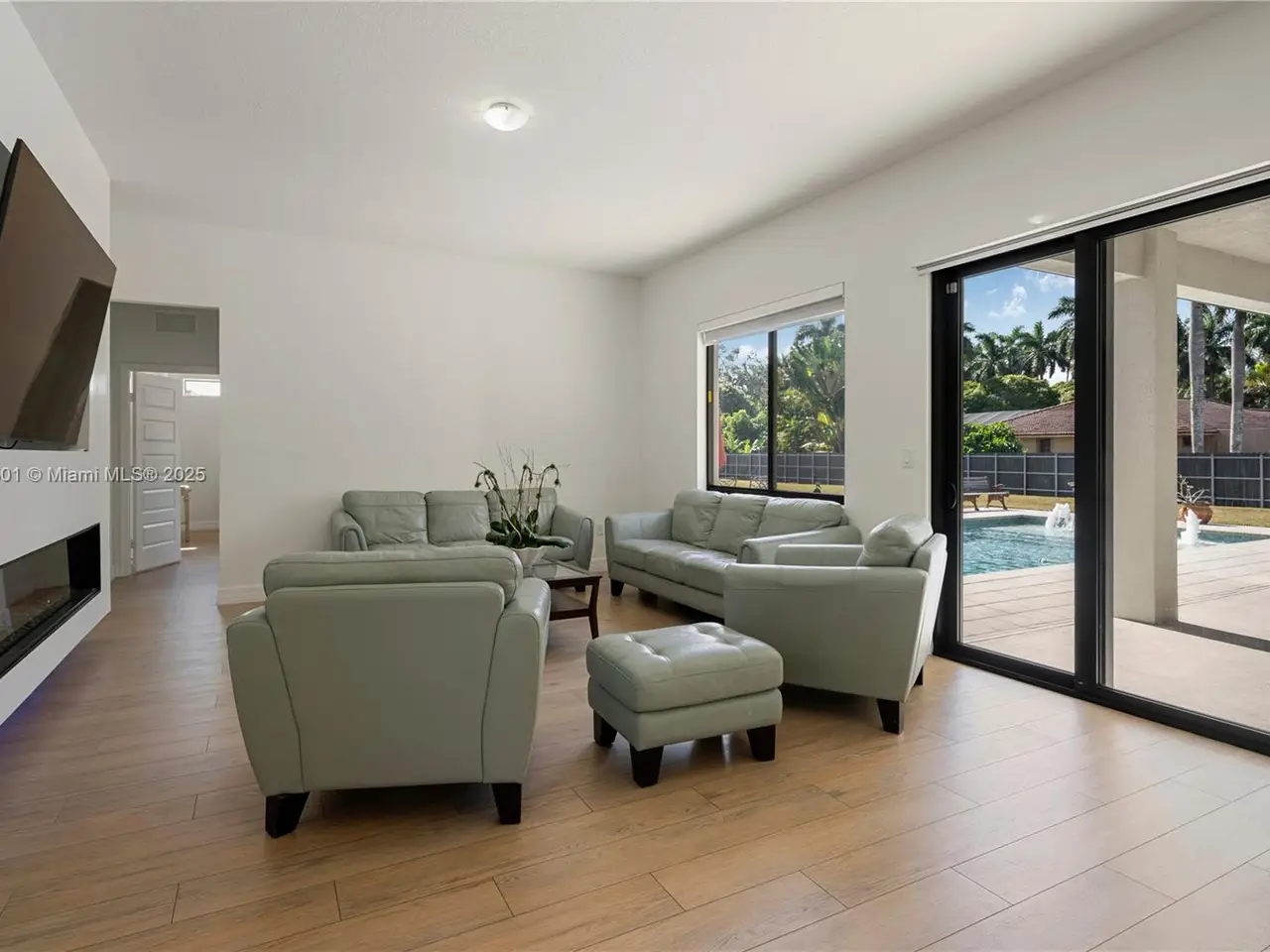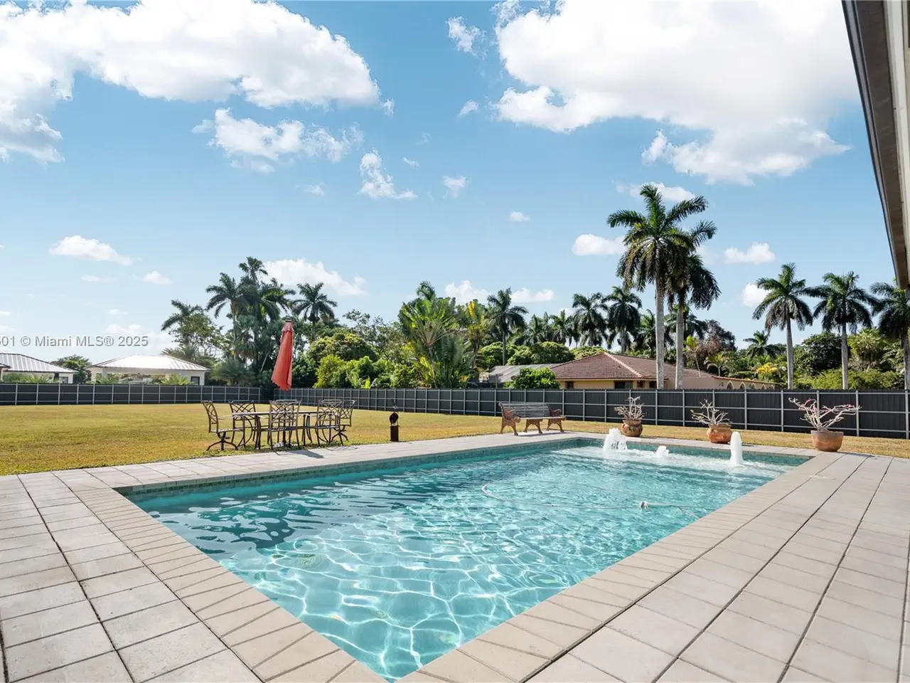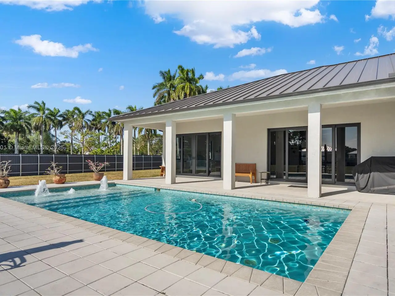 Step into the luxurious Avocado Estate, a stunning 5-bedroom, 4-bathroom home with a 3-car garage, situated on a sprawling 1-acre property. This exquisite residence features a saltwater Pool with captivating LED lights and a stunning aqua quartz finish. Inside, you'll find modern touches such as porcelain wood plank flooring, a dream kitchen featuring top-of-the-line Samsung appliances, quartz countertops and a grand cooking island with pull-out cabinets. The custom walk-in closets provide ample storage, while flat screen TVs in every room & a smart electric fireplace offer the ultimate in convenience and comfort. Ideal for hosting extended family or guests, the in-law suite offers a private sanctuary. Additional highlights include metal roof, impact doors/windows & private metal fence..