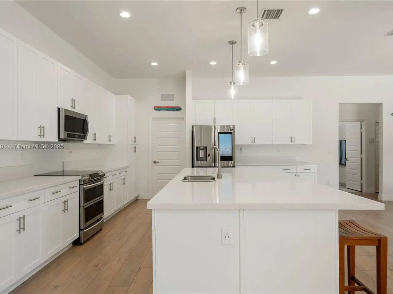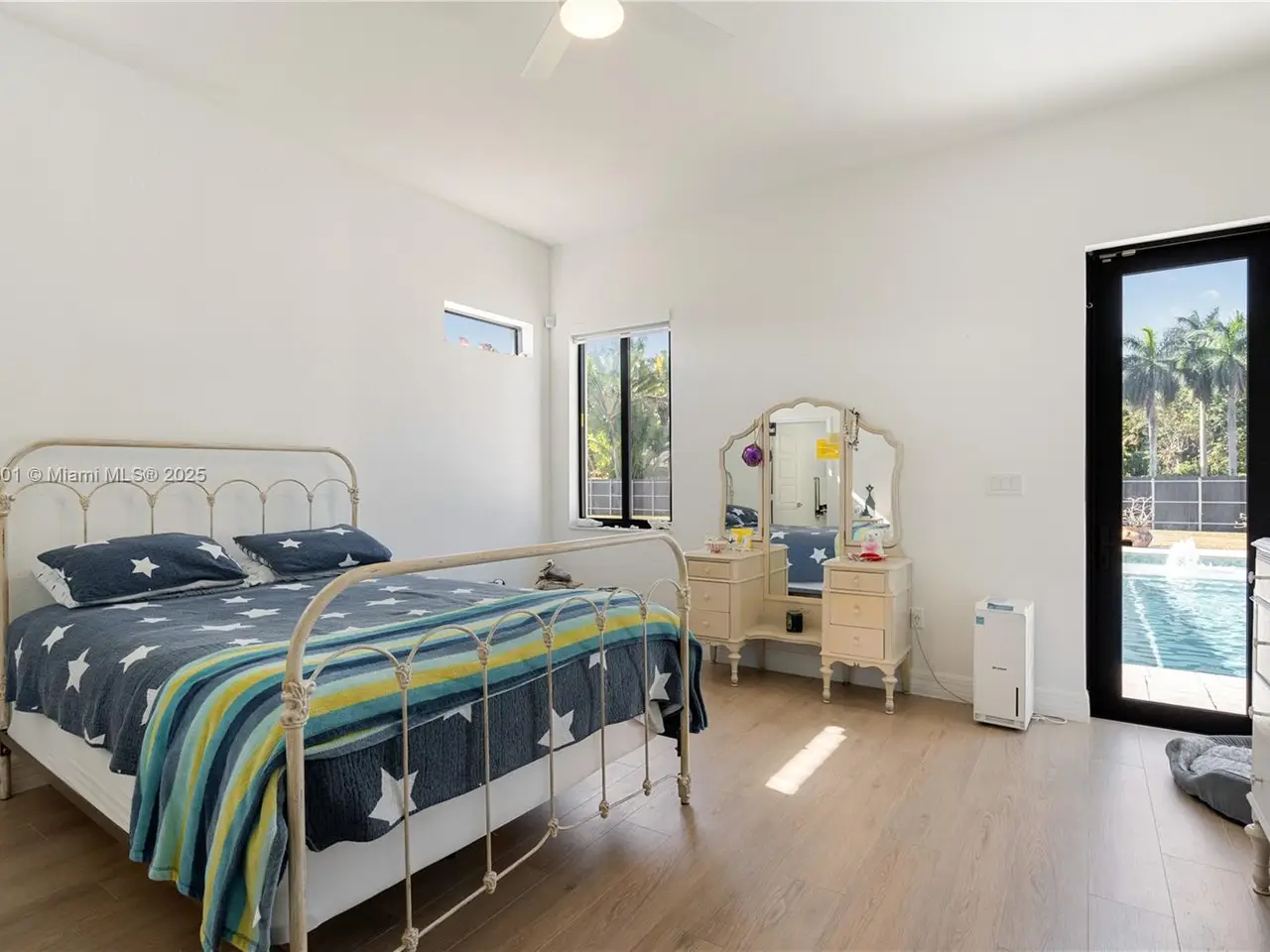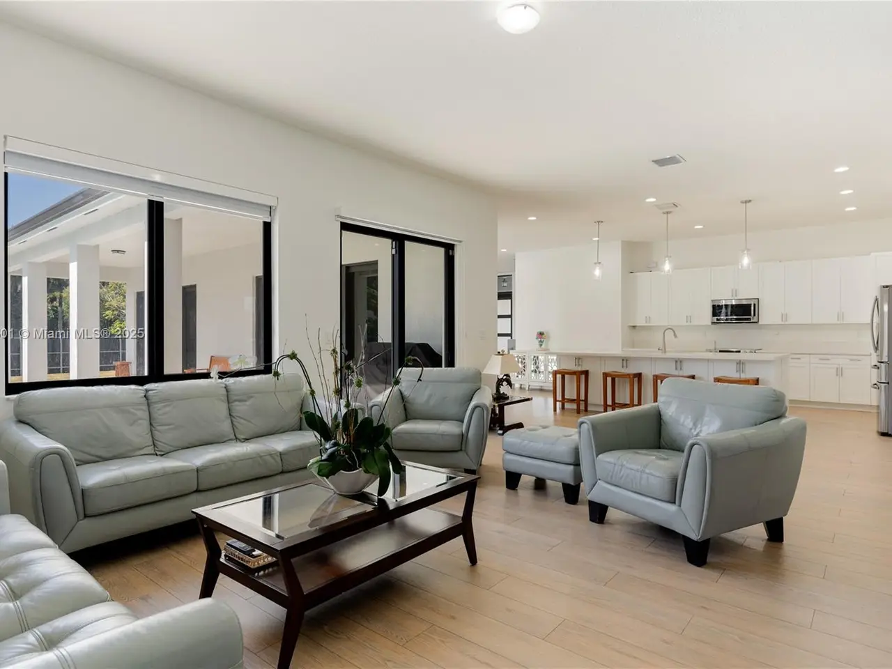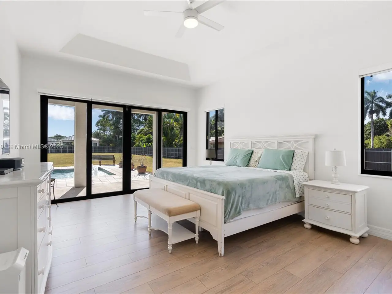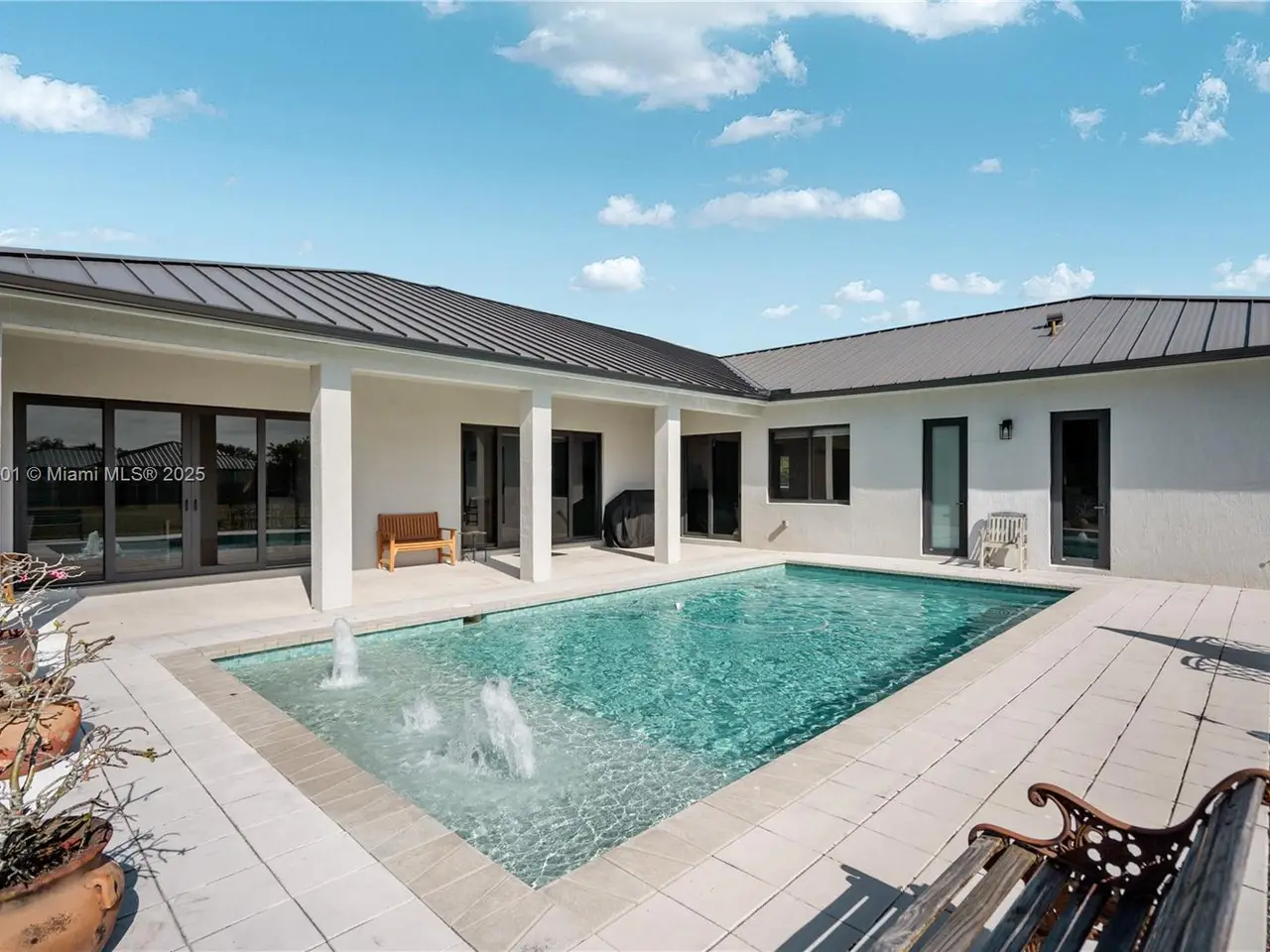 Step into the luxurious Avocado Estate, a stunning 5-bedroom, 4-bathroom home with a 3-car garage, situated on a sprawling 1-acre property. This exquisite residence features a saltwater Pool with captivating LED lights and a stunning aqua quartz finish. Inside, you'll find modern touches such as porcelain wood plank flooring, a dream kitchen featuring top-of-the-line Samsung appliances, quartz countertops and a grand cooking island with pull-out cabinets. The custom walk-in closets provide ample storage, while flat screen TVs in every room & a smart electric fireplace offer the ultimate in convenience and comfort. Ideal for hosting extended family or guests, the in-law suite offers a private sanctuary. Additional highlights include metal roof, impact doors/windows & private metal fence..