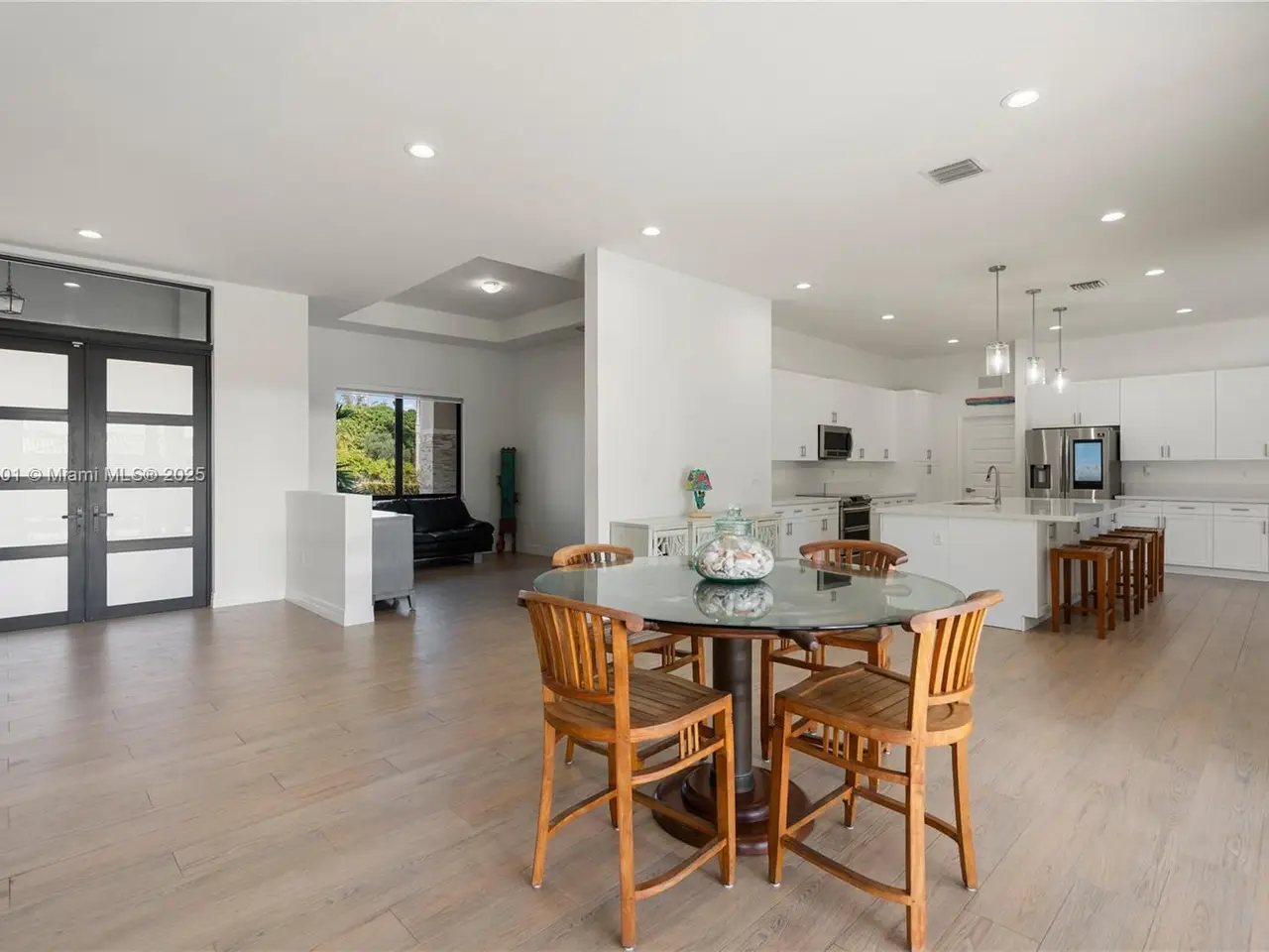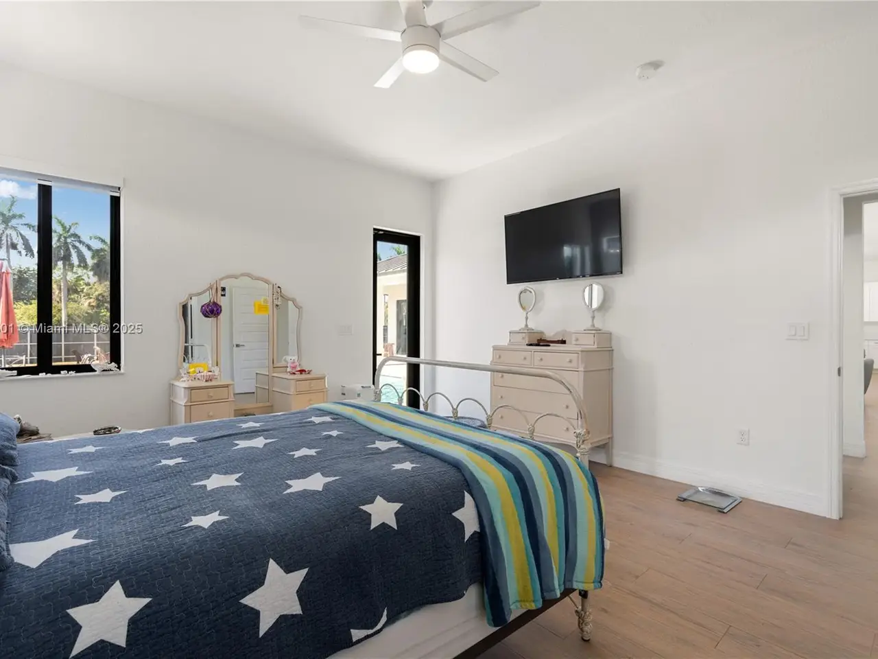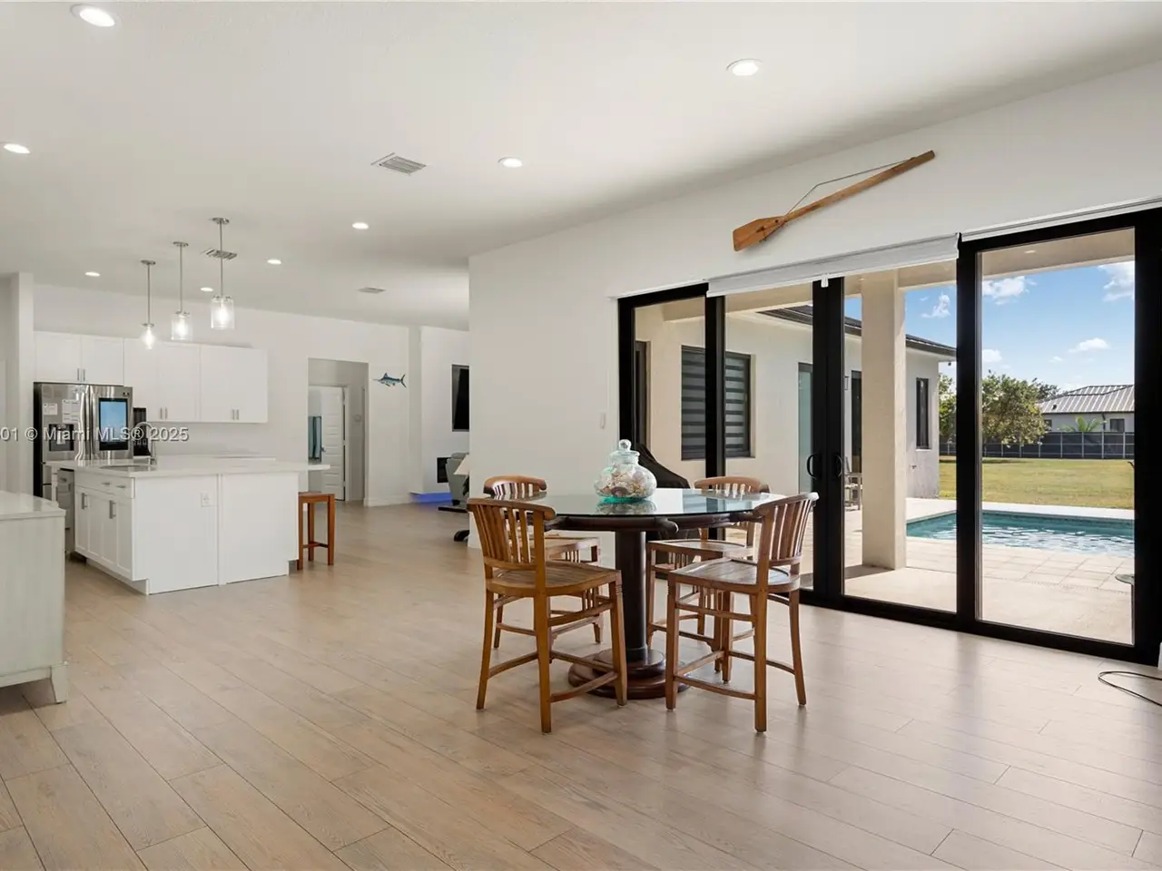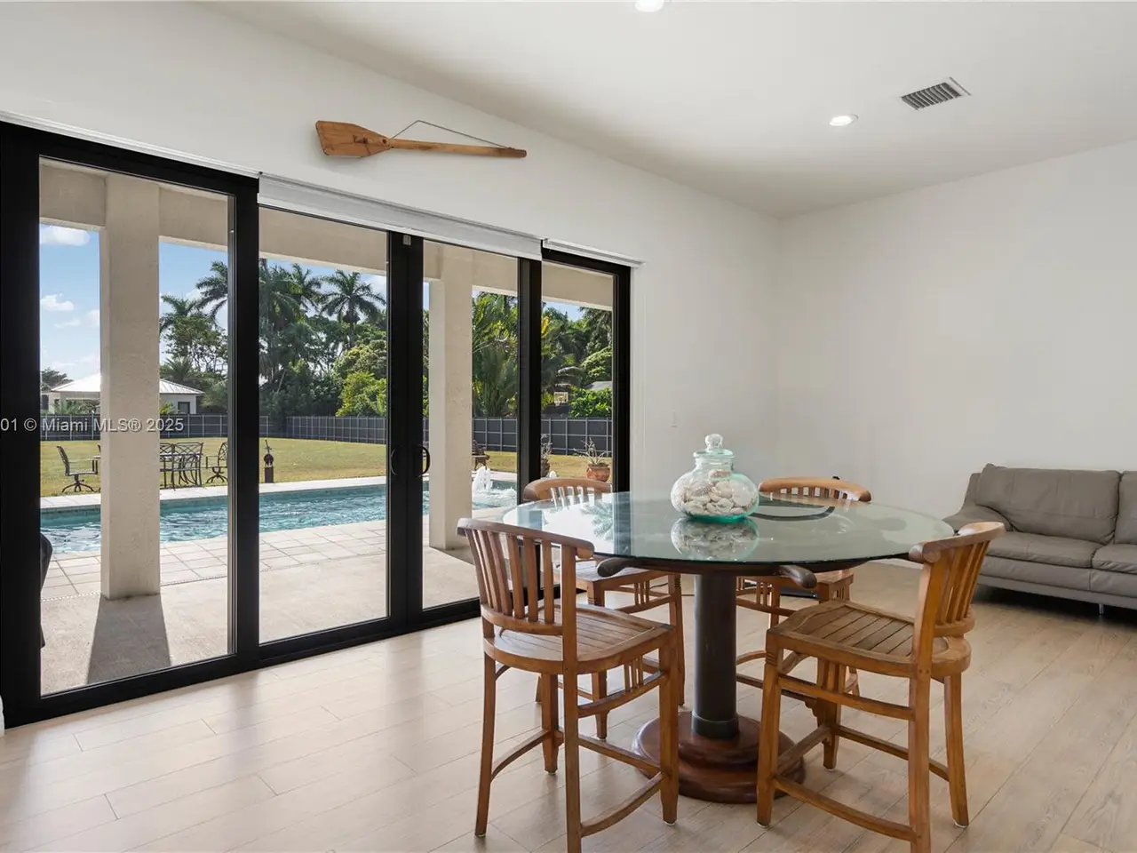 Step into the luxurious Avocado Estate, a stunning 5-bedroom, 4-bathroom home with a 3-car garage, situated on a sprawling 1-acre property. This exquisite residence features a saltwater Pool with captivating LED lights and a stunning aqua quartz finish. Inside, you'll find modern touches such as porcelain wood plank flooring, a dream kitchen featuring top-of-the-line Samsung appliances, quartz countertops and a grand cooking island with pull-out cabinets. The custom walk-in closets provide ample storage, while flat screen TVs in every room & a smart electric fireplace offer the ultimate in convenience and comfort. Ideal for hosting extended family or guests, the in-law suite offers a private sanctuary. Additional highlights include metal roof, impact doors/windows & private metal fence..