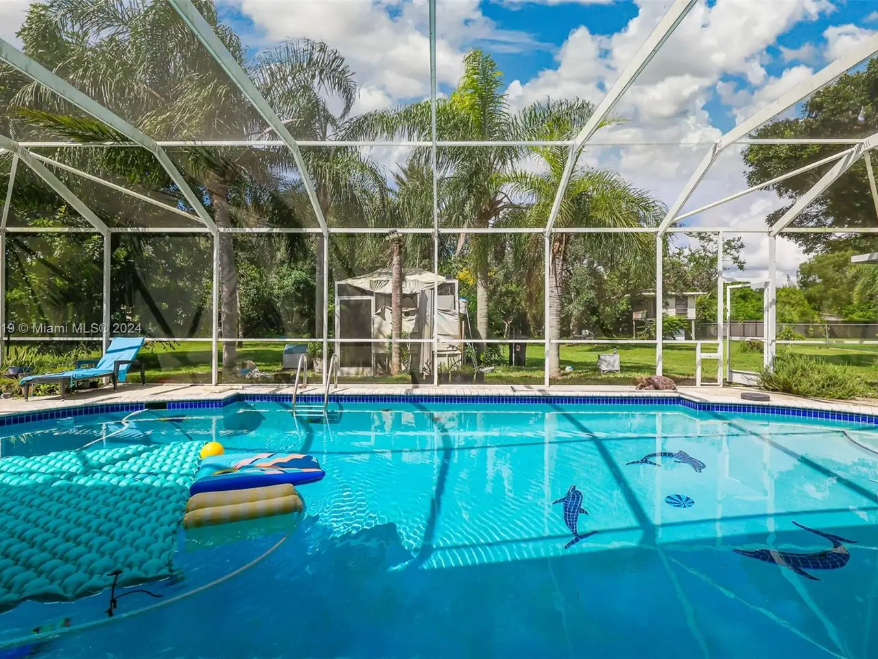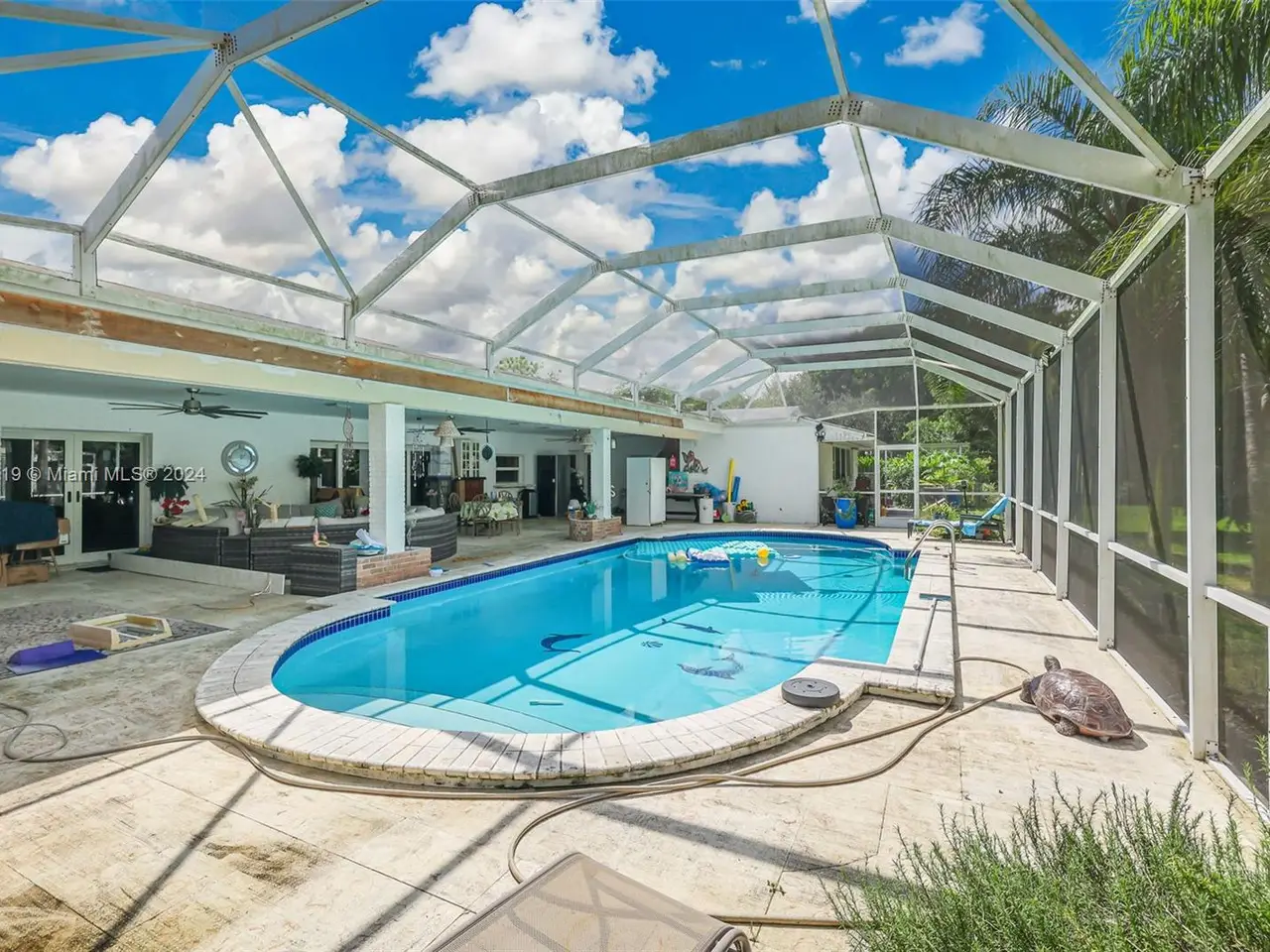With four bedrooms, three bathrooms, and maid's quarters on over 1.2 acres, this estate home offers something for everyone. Enjoy barbecuing around the Chicago Brick BBQ Grill, and relax by the pool in the large screened patio. There's plenty of space for gatherings indoors with a large living room and formal dining room. Supermarkets, stores, and dining are conveniently located within a mile. There is ample space for watercraft and recreational vehicles. Parks and marinas are located within 11 miles. For those who love gardening, there is plenty of room to plant fruit trees. Two double-car garages are perfect for storing your prized vehicles. For sports lovers, the Sports Complex is only 0.5 miles away. Thoughtfully upgraded with recently installed wrap-around impact glass, roof, air conditioning and more!