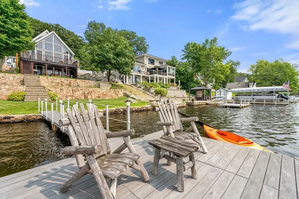 Boater's Paradise!~ Custom built lakefront home with 30Æ Trex plank aluminum frame dock. The Great Room features 2-story cathedral Douglas Fir Post & Beam w/walls of windows & stunning lake views & Trex deck. Facing SW & on widest section of Lake Maspenock, this home has undergone a complete makeover & expansion using the latest materials & technology. Newer metal roof, Advanced Composite siding & 2-car garage w/loft & cobblestone driveway. Brazilian cherry floors & Anderson windows thru-out. Flex. Lower Level walkout Game Room & French doors opening to patio w/awning. Flexible layout w/many skylights & features throughout. (2)Mitsubishi mini splits, baseboard heat, (2) VT Casting propane stoves & wood burning FP. Paver walkways, stone walls & bluestone steps grace the terraced lakeside. Walk to town beach, top-rated schools & minutes to Rte 495 & 90. Relax, boat, swim or waterski w/ gorgeous sunset views on 2-mile long Lake Maspenock. Vacation at home!