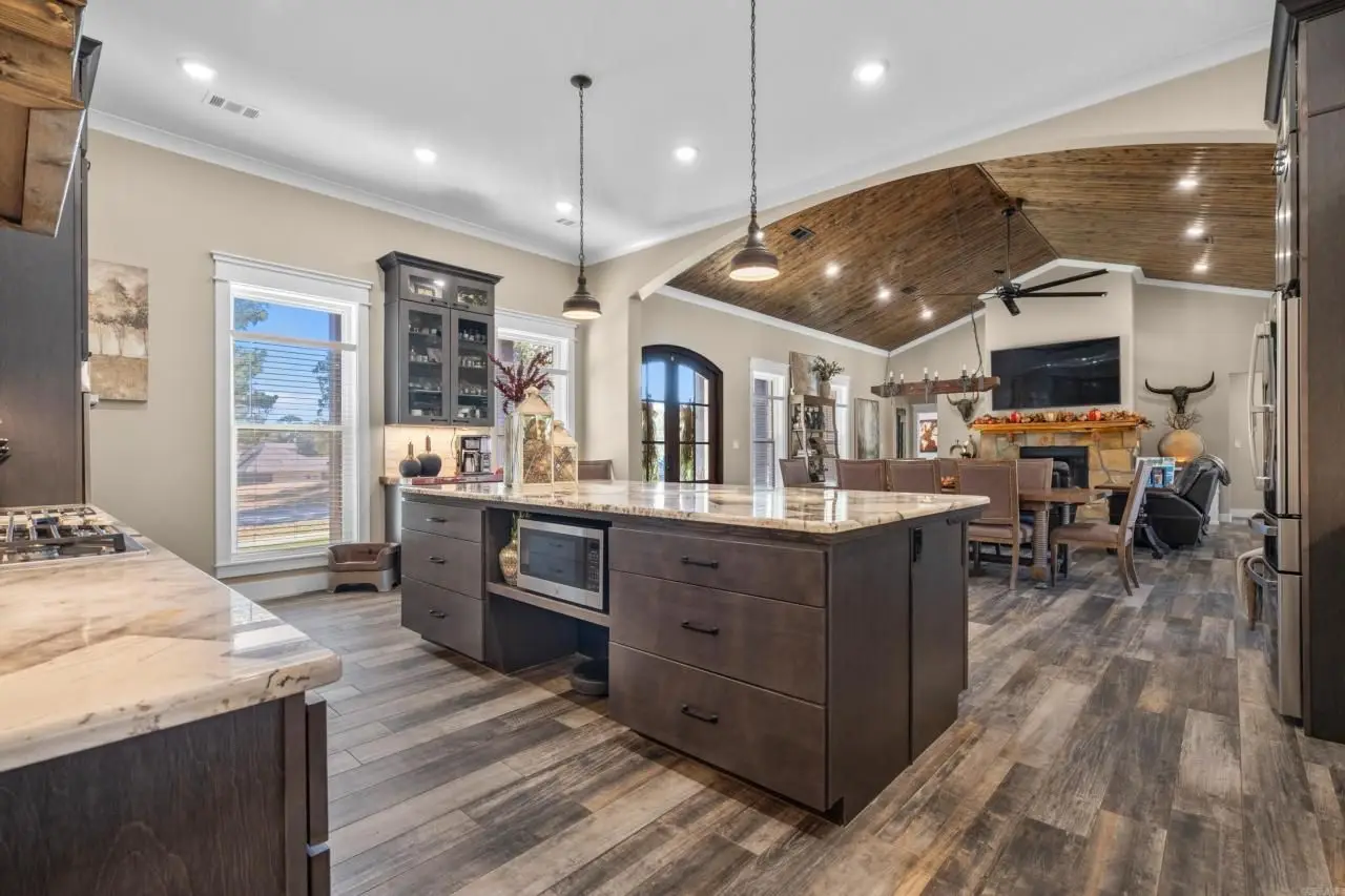 Discover the epitome of luxury living in the West Winds Subdivision with this meticulous 4-bedroom, 3.5-bathroom custom home.Spanning approximately 3,652 square feet, this spacious residence offers an impressive array of amenities. Enjoy movie nights in your private theater, or entertain guests in the outdoor area featuring a kitchen, fireplace, and a stunning swimming pool complete with a diving board and sun deck. The 3.5-car garage provides ample space for vehicles and storage. Inside, you'll find exquisite Italian porcelain rectified plank flooring with Ditra underlayment, ensuring both durability and elegance. The home is equipped with spray foam envelope insulation and advanced HVAC inverter technology for extreme efficiency. Additional features include tankless water heaters, 21kw whole house generator, and a smart home system with WiFi-controlled thermostat, garage doors, light switches, appliances, andRing security cameras. The climate-controlled garage adds to the convenience and comfort of this home, all situated within the highly sought-after Lake Hamilton School District. Lake Access