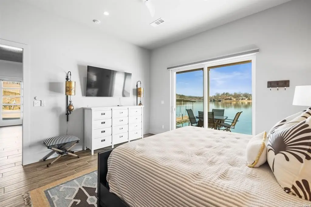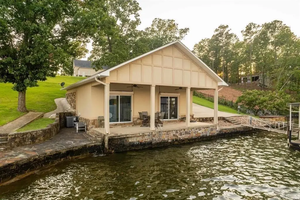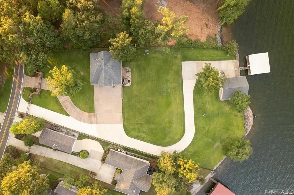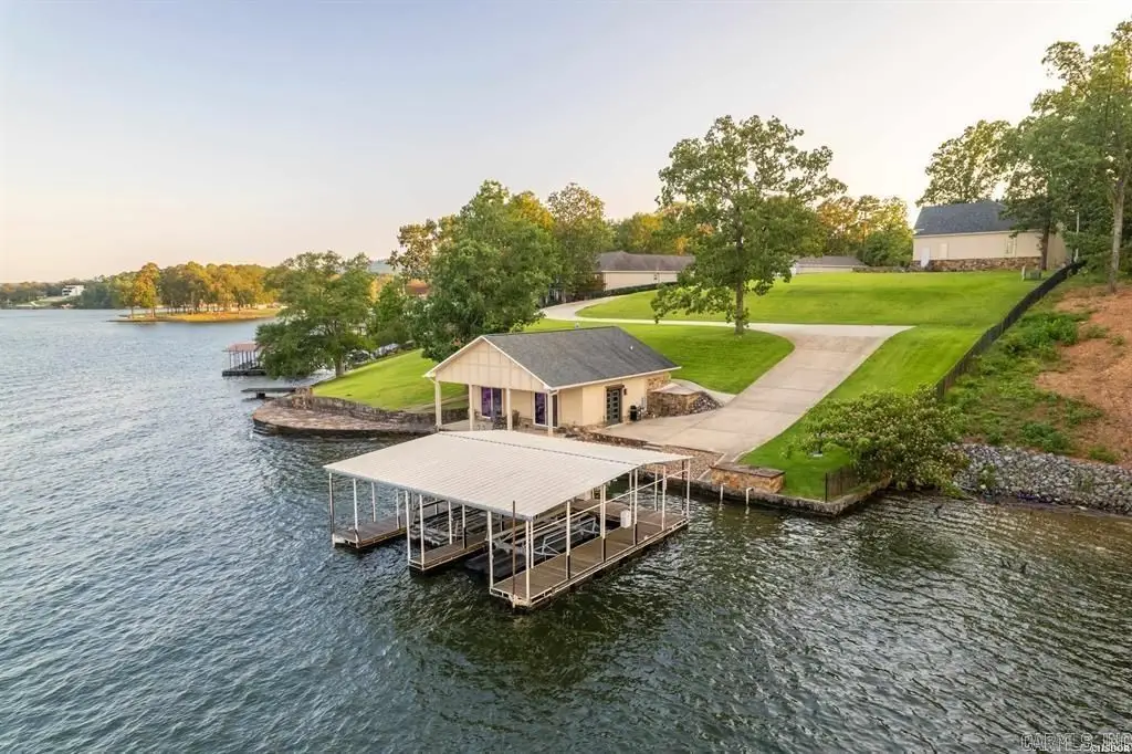 Introducing a one-of-a-kind waterfront estate on a pristine lake lot, boasting over 250 feet of stunning shoreline. This unique property is perfect for those seeking a luxurious lakeside retreat. The estate features a spacious 2,400 square foot garage, designed to accommodate your RV and boat storage needs, complete with a full kitchen and one and a half baths. Nestled at the water's edge, you'll find a charming 1,296 square foot lake cottage, offering a cozy and inviting space to unwind and enjoy the serene surroundings. The property also includes a two-slip boat dock with lifts, ensuring year-round access to the lake's crystal-clear waters. The entire estate is fenced and gated for your privacy and security, with driveways already installed for your convenience. This exceptional waterfront property offers an unparalleled combination of luxury, comfort, and natural beauty, making it the perfect getaway for you and your loved ones.