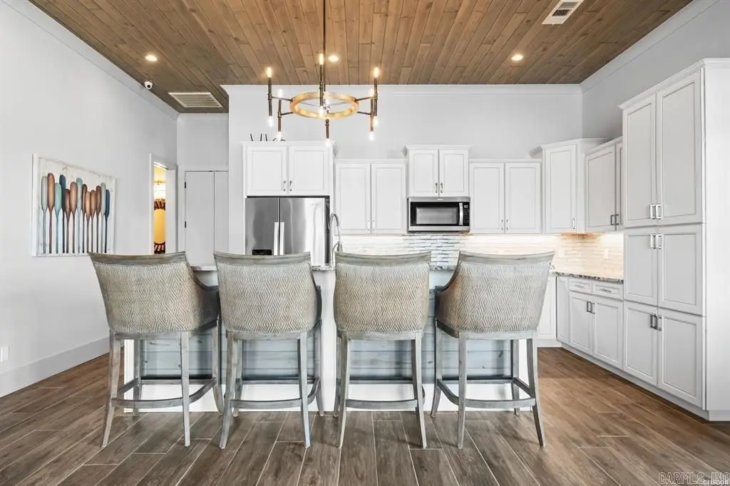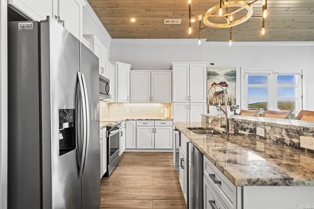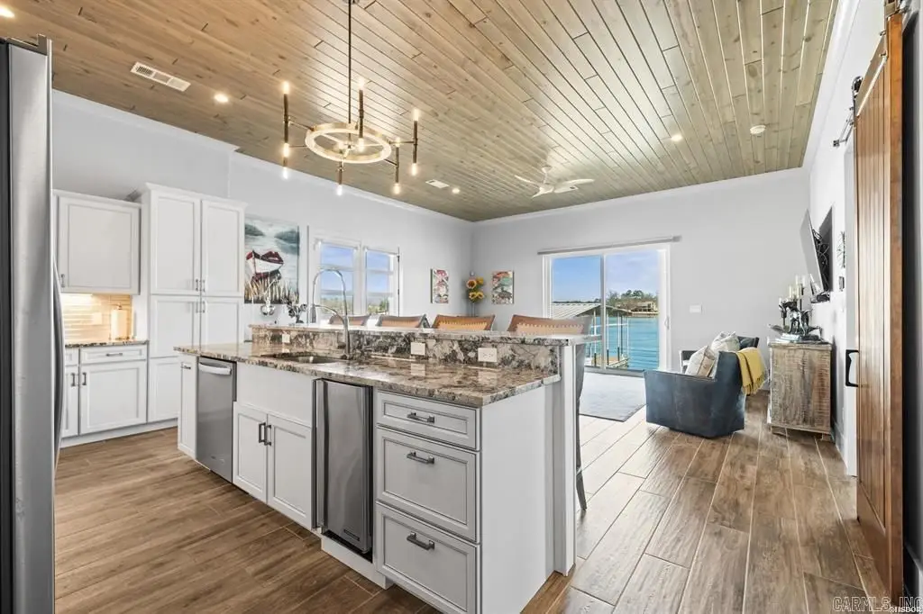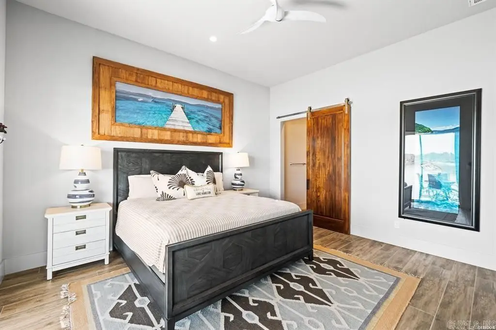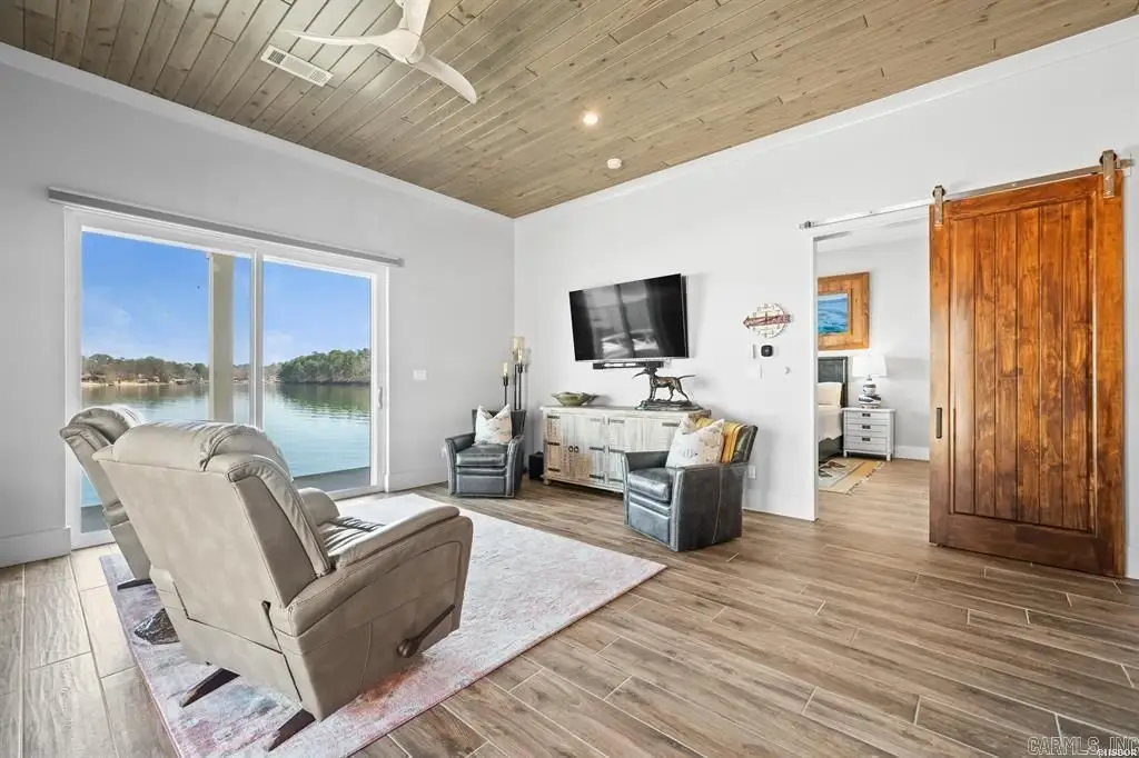 Introducing a one-of-a-kind waterfront estate on a pristine lake lot, boasting over 250 feet of stunning shoreline. This unique property is perfect for those seeking a luxurious lakeside retreat. The estate features a spacious 2,400 square foot garage, designed to accommodate your RV and boat storage needs, complete with a full kitchen and one and a half baths. Nestled at the water's edge, you'll find a charming 1,296 square foot lake cottage, offering a cozy and inviting space to unwind and enjoy the serene surroundings. The property also includes a two-slip boat dock with lifts, ensuring year-round access to the lake's crystal-clear waters. The entire estate is fenced and gated for your privacy and security, with driveways already installed for your convenience. This exceptional waterfront property offers an unparalleled combination of luxury, comfort, and natural beauty, making it the perfect getaway for you and your loved ones.