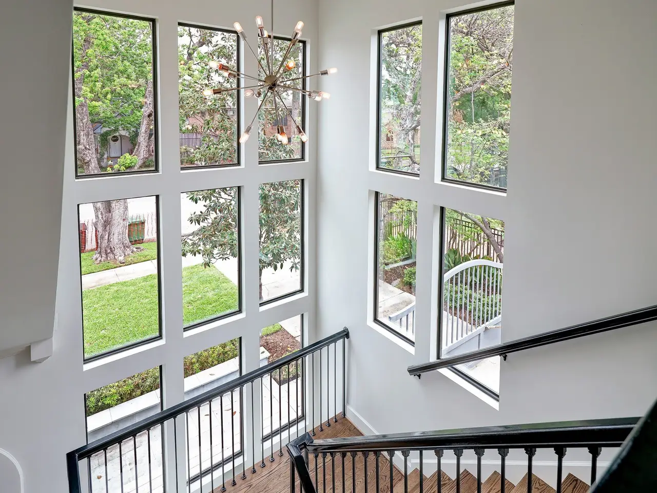Striking grand staircase with windows