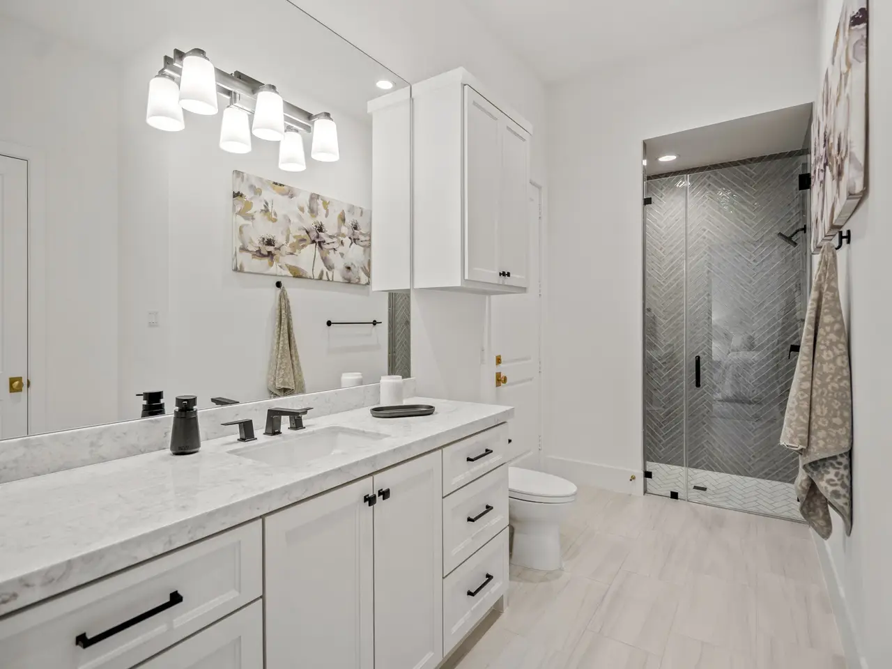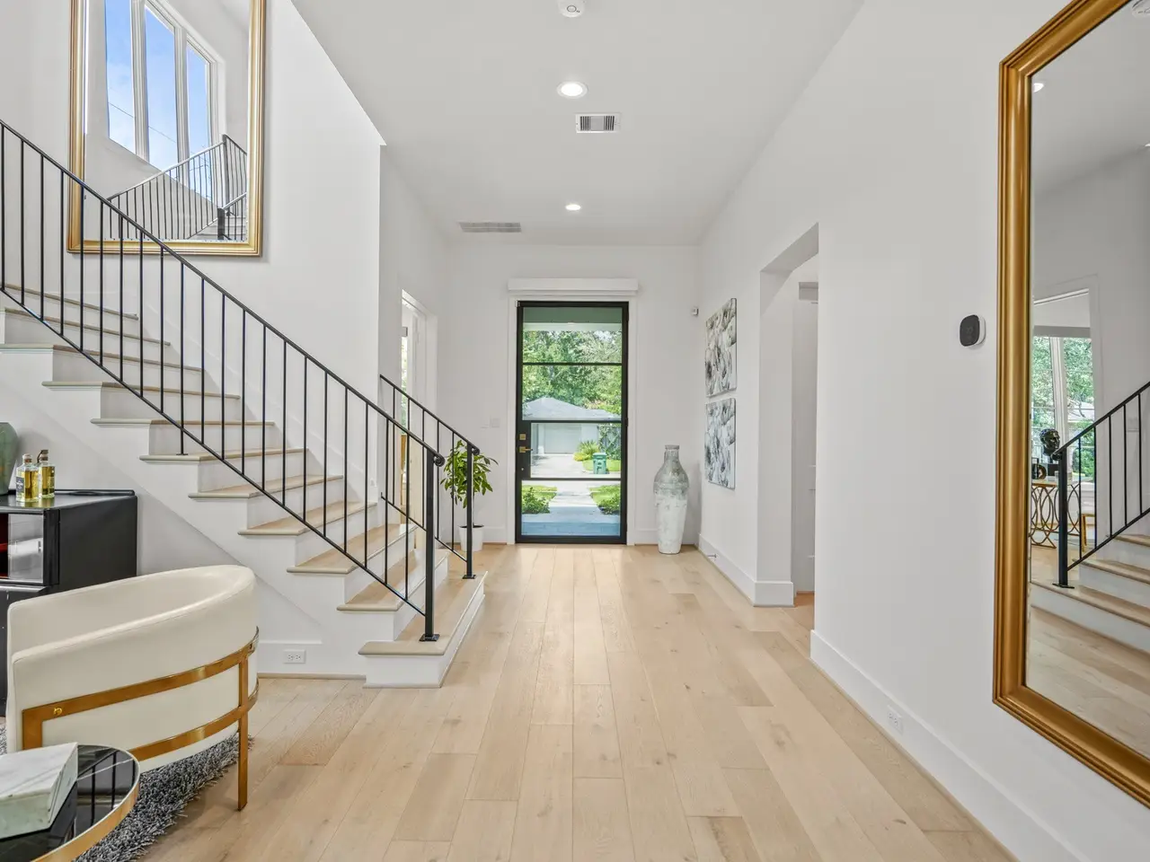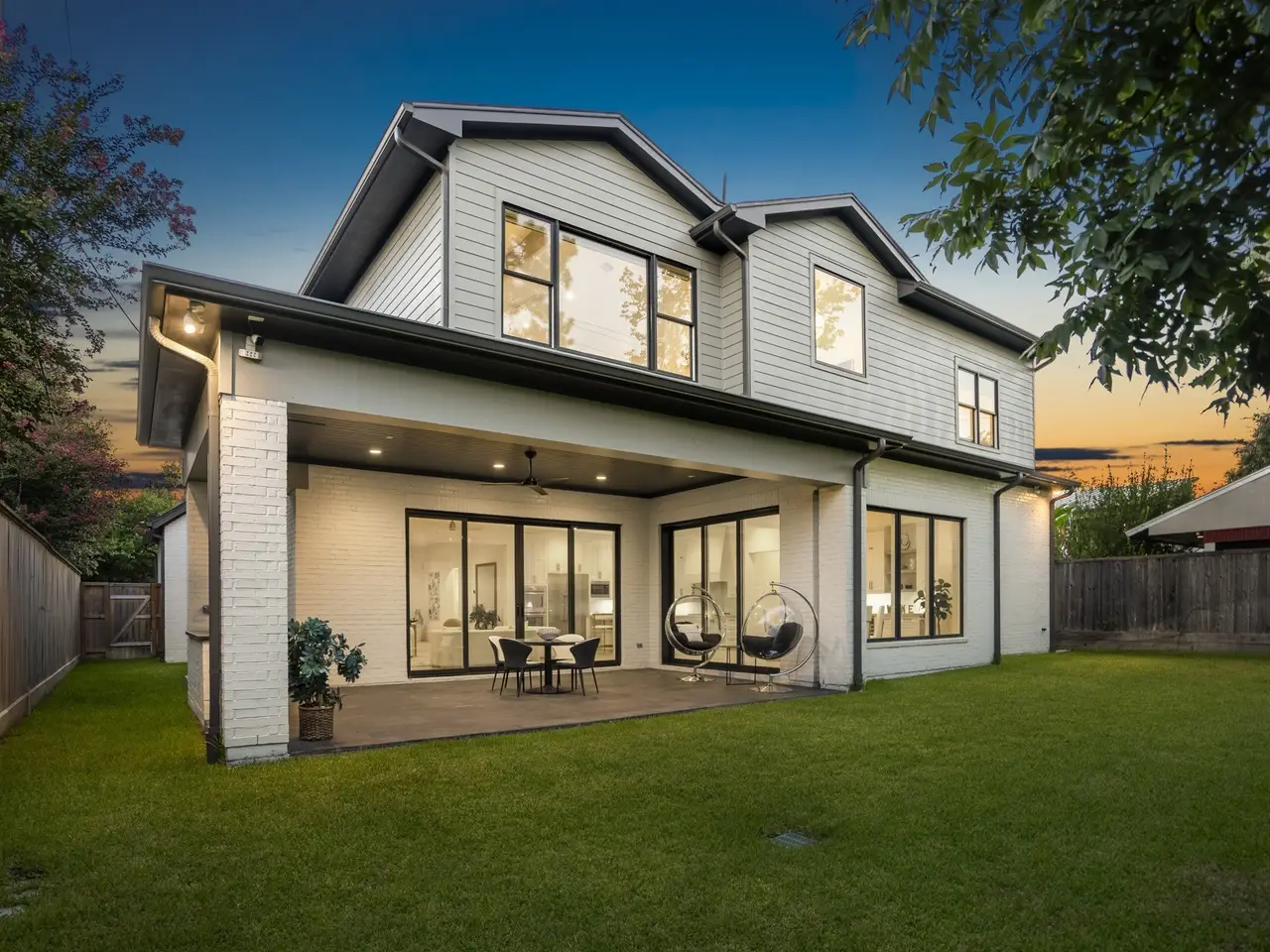 Stunning recent construction in a prime Highland Village/Lynn Park location. This thoughtfully designed home features a spacious open layout with a large island kitchen, Thermador appliances, and seamless flow to the family room and covered patio with built-in grill. A downstairs guest suite offers flexibility, while the upstairs includes a generous primary suite, secondary bedrooms, a game room with wet bar, and a large utility room. High-end finishes throughout include wide plank wood floors, quartzite countertops, custom iron stair rail, designer lighting and plumbing, and site-built cabinetry. Built by Northstone Builders, the home also features automated window shades, elevator capability, energy-efficient construction, and a sizable backyard with room for a pool. Just minutes from River Oaks District and Highland Village’s top shopping and dining.
