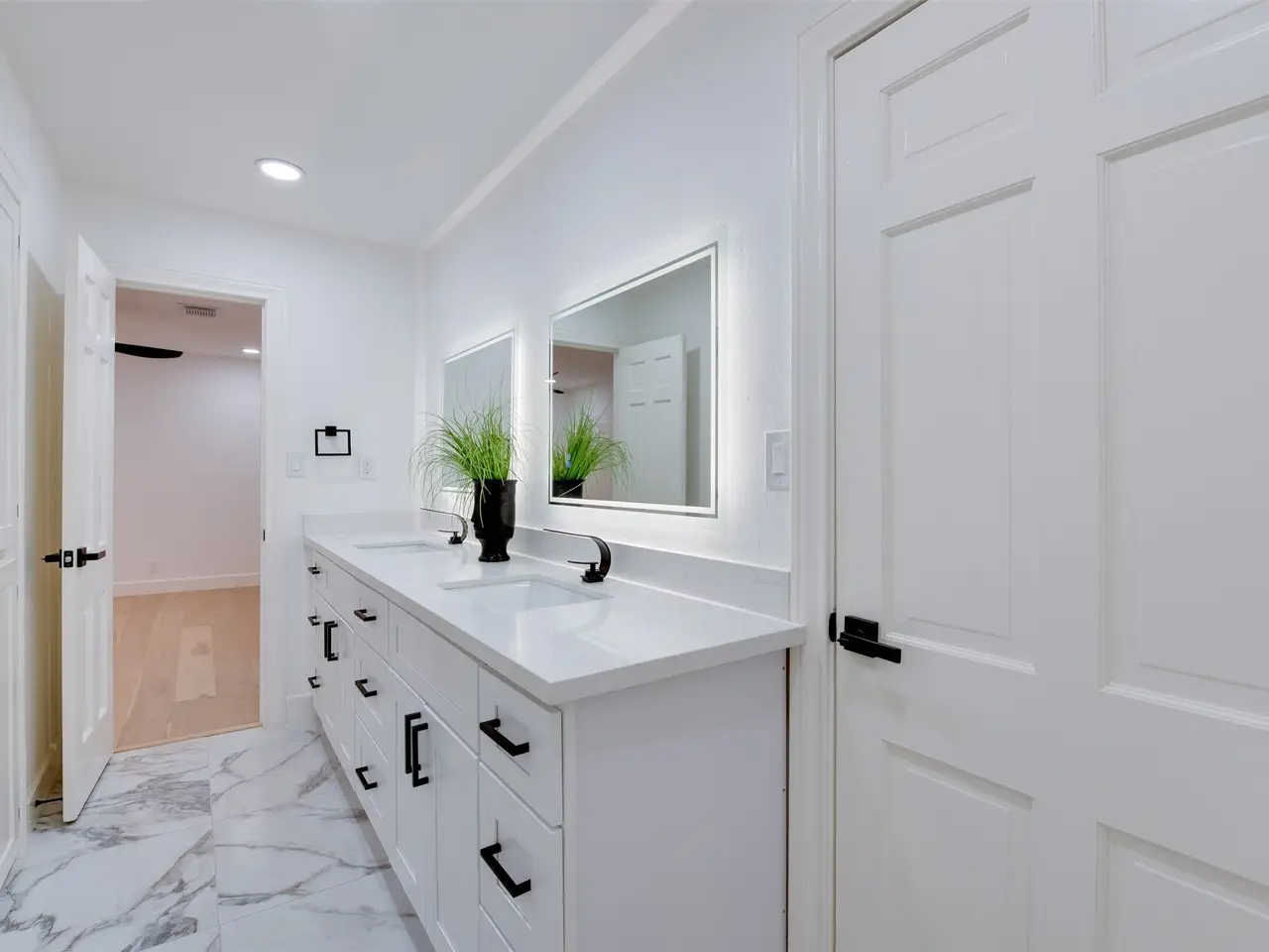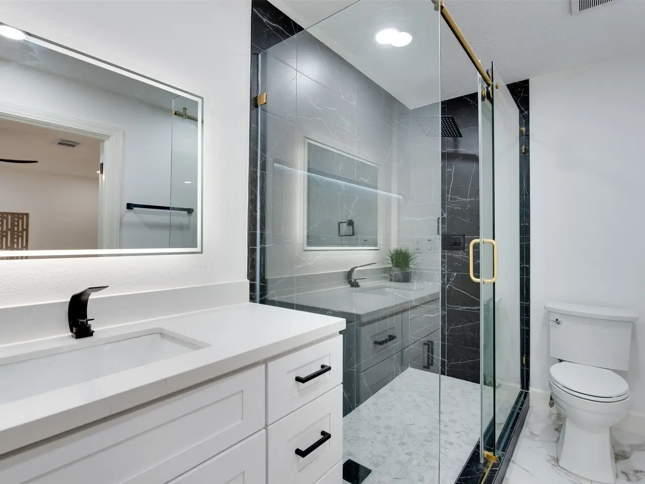 Rare one-story Bungalow near Rice Village, Museum District and Medical Center features 3 bedrooms, study and 2 baths. The home was renovated in 2023 with epoxy garage floor. Additional improvements in 2024; new roof, additional insulation and landscaping. Home features a generator as well as several accessibility features. Light filled home with open floor plan, fantastic kitchen features farm sink, stainless appliances, and breakfast bar seating. Wonderful Study/Office off living area, engineered wide plank wood floor throughout. Spacious primary bedroom with en-suite bath spacious walk-in shower. Secondary bedroom’s accessible to Jack & Jill bathroom and double sinks. Separate laundry room in house. All the modern comfort for easy living and entertaining. All per Seller