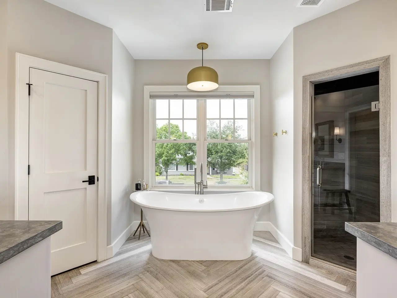 Modern Craftsman in sought-after Timbergrove Manor, custom-designed by renowned Houston architect Kelly Cusimano, blends architectural elegance w/thoughtful functionality. Light-filled interior w/abundant windows overlooking a tranquil garden & no carpet throughout. Versatile front room off entry for formal living, dining, or study, complemented by butler’s pantry, wet bar & mudroom. Chef’s kitchen w/high-end appliances open to dining & living areas for easy entertaining. Primary suite w/built-ins, walk-in closet & bath w/soaking tub & separate shower. 4 additional bedrooms, 3 secondary baths, plus downstairs flex room w/bath offer great options for family/guests. Enjoy a backyard retreat w/covered patio, fireplace & built-in grill. New whole-house Generac generator & large two-car garage w/storage add convenience. Situated in a quiet cul-de-sac neighborhood w/minimal through traffic, this home offers peace & privacy, plus access to hike & bike + White Oak Bayou trails. Per seller.