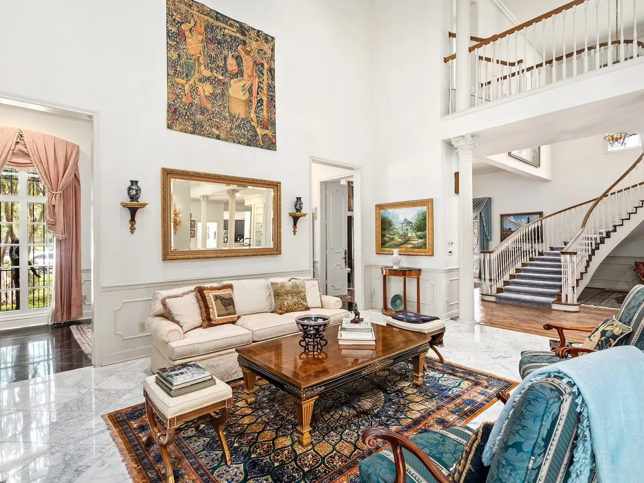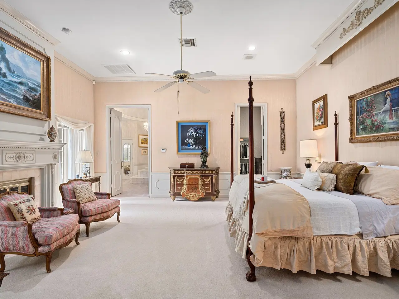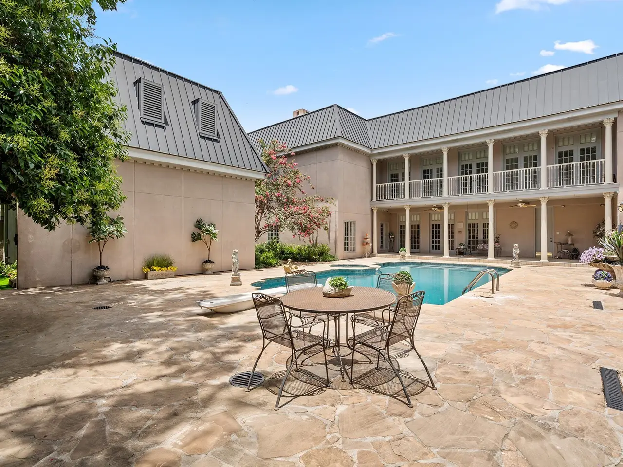 Stately, two story traditional home on a large 26,350 sqft(per HCAD) lot, ready for transformation. Expansive primary bedroom down with dual bathroom and closets. Formals, den, wet bar/butler's pantry, wine room with storage closet. Kitchen area has a large walk-in pantry, utility room, desk area and room for a dining table. Two staircases. Three bedrooms up, all with ensuite baths. Large game room(4th bedroom) up. Extra room up, could be home office/study. Swimming pool. Two driveways, enter and exit on Rocky River or Sage Rd. Parking court, 2 car garage, 2 car carport, extra parking. Private courtyards. Being sold in present condition. No repairs will be done. This is an opportunity to customize or create your dream home. All info per seller
