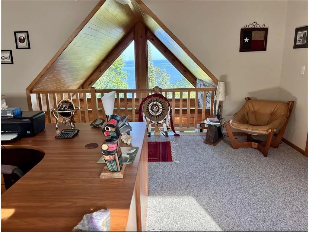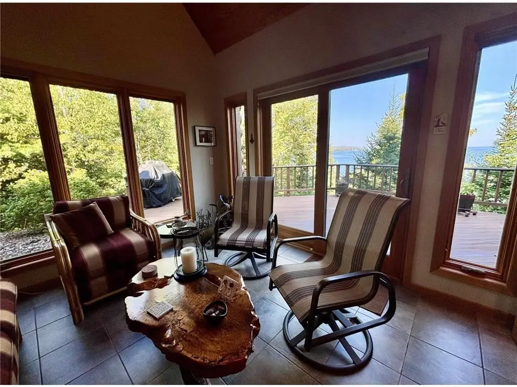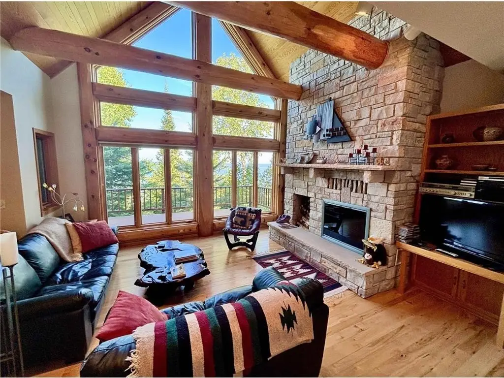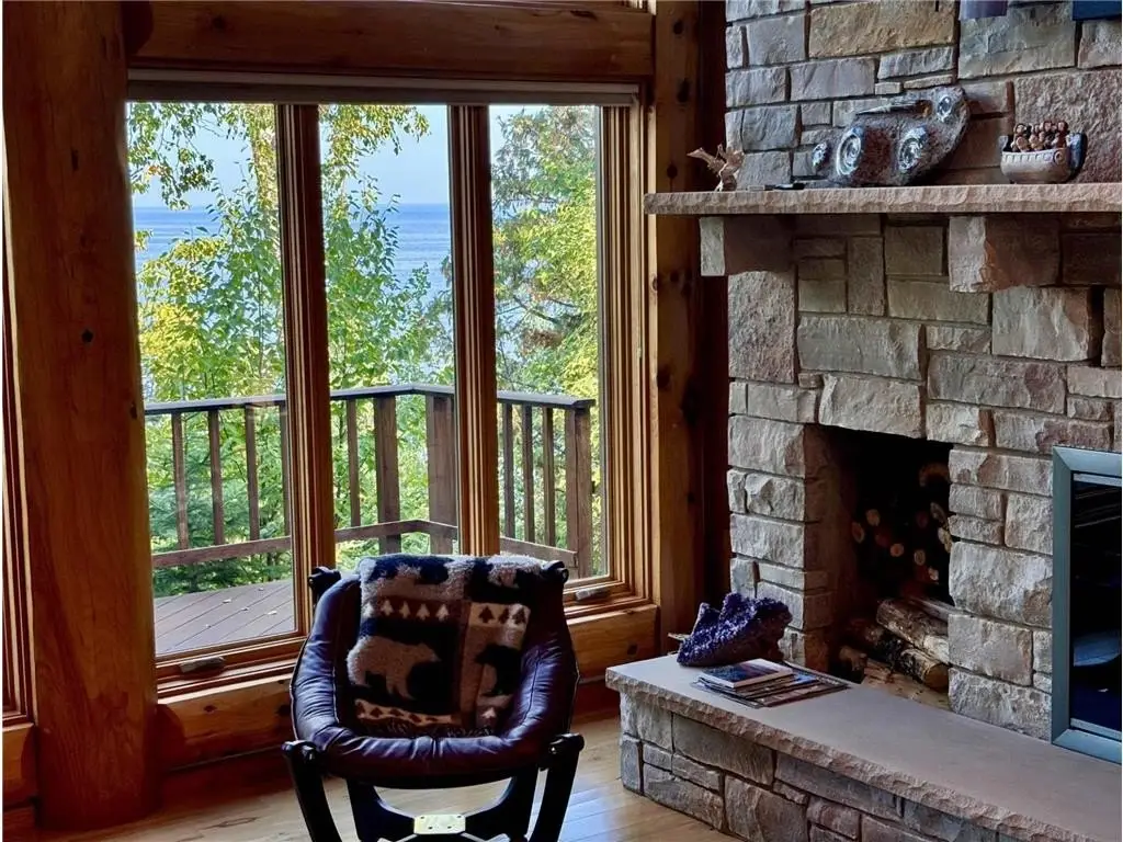 Nestled on the stunning North Shore of Lake Superior this luxury cabin embraces the spirit of elegance and comfort in perfect harmony with nature. Open concept rooms invite sweeping views of the lake’s sapphire waters, where the ever-changing light creates a living masterpiece just beyond the windows. Inside, soaring vaulted ceilings and the warmth of in-floor heating beneath hickory wood floors create an inviting haven in every season. The heart of the home is a gourmet kitchen, where polished granite counters meet pecan wood cabinetry, each detail thoughtfully chosen and exquisitely crafted all surrounded by the endless beauty of Lake Superior. Large primary bedroom ensuite with walk-in closet is on the main floor has continued spectacular lake views. Quiet nature abounds, far away from the highway a great place to go on those after dinner walks. More than a home, this three-bedroom, three-bath sanctuary is a place to savor quiet mornings, gather with loved ones, and live immersed in the magic of the North Shore.