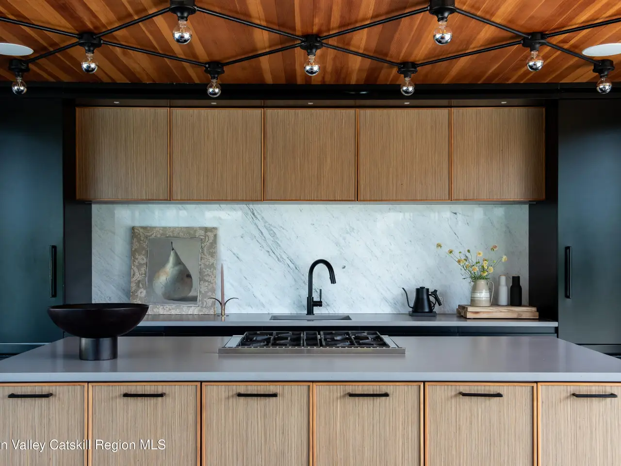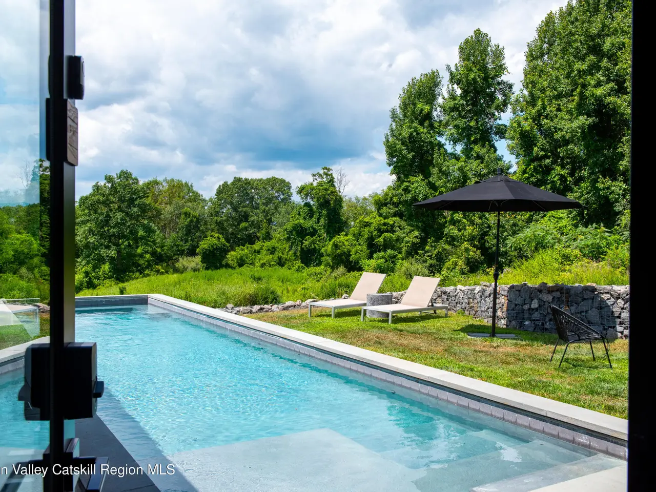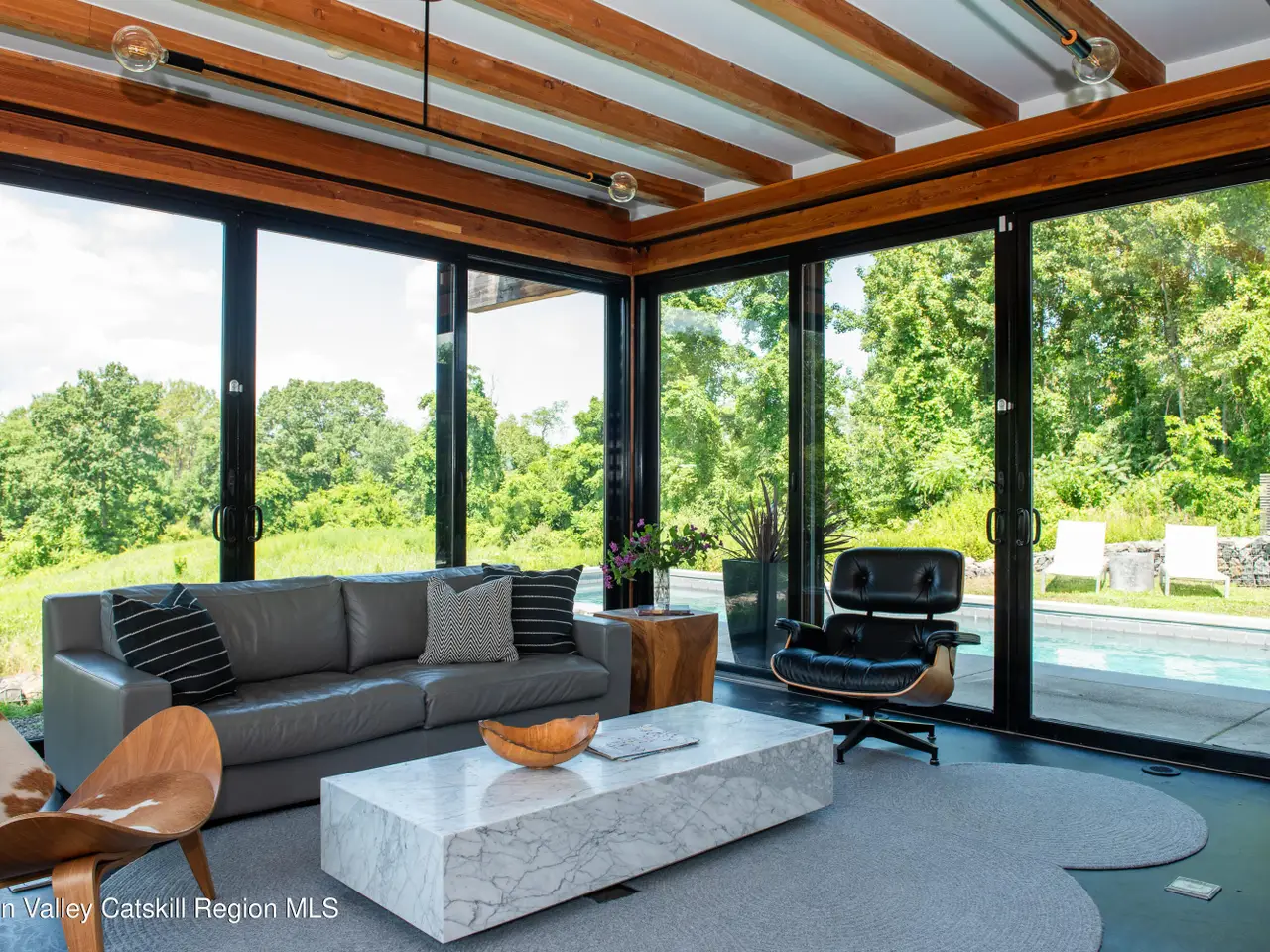 462 Mt Merino / Modernist Glass House in the Hudson River Valley. Beautifully sited on 25 private acres along desirable Mount Merino Road one of the most coveted streets in Columbia County with its sweeping Catskill Mountain views is this NYC architect-designed glass house which offers a rare connection to nature. Inspired by 1960s Hollywood Hills Case Study homes, the residence dissolves boundaries between interior and exterior living. Reached by a long private drive, the home features floor-to-ceiling glass walls that frame mountain vistas and fill spaces with natural light. The great room combines a state-of-the-art kitchen with a modernist living space centered around a striking two-sided fireplace, while two spacious ensuite bedrooms offer private retreats with expansive views. The seamless connection between house and pool creates uninterrupted indoor-outdoor flow. This stunning property presents an exceptional opportunity to create a family compound as the existing glass house serves beautifully as a central anchor, ready to complement a larger family dwelling on the 25-acre canvas. The property currently serves as a luxury vacation rental but is turn-key for full-time or part-time living. Located minutes from Hudson's Warren Street and Amtrak station, 462 Mount Merino combines secluded mountain living with convenient access to galleries, dining, and direct Manhattan connections.