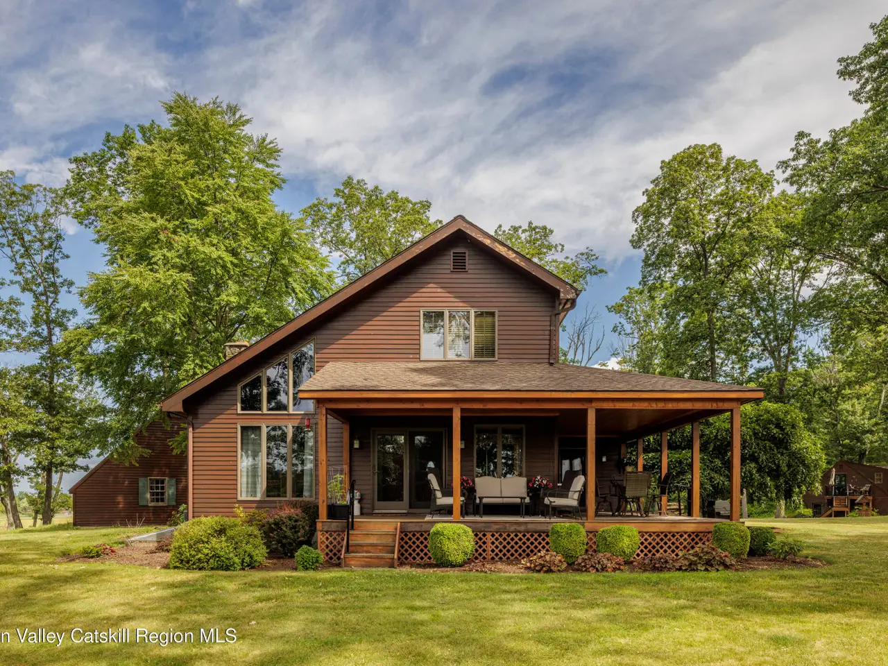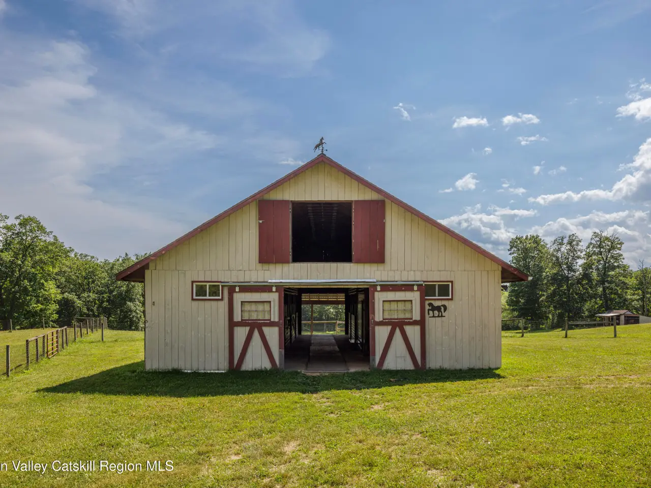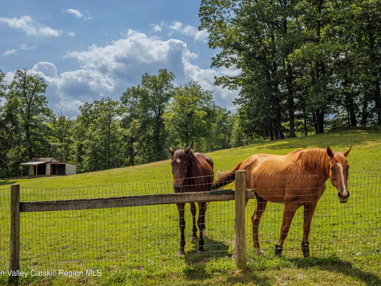 Introducing Long View Farm & Stable, a convenient yet tranquil Equestrian hide-way just minutes from the culture, shopping and dining of Hudson, New York. Long View Farm provides the perfect blend of Hudson Valley country serenity with an easy connection to Amtrak to New York City and Albany. A 1476,SF residence with detached two car garage, Coach house with a 576SF apartment and studio space, a six-stall stable, pastures and a picturesque swim pond with mountain and apple orchard views in all directions make this property exceptional. Situated at the crest of the 24-acre parcel is a 2-Bedroom, 2-Bath Adirondack contemporary residence with a ground level Primary Bedroom and Bath. Great open Living/Dining areas with wrap around windows, a soaring cathedral ceiling, and a wood burning stone fireplace with an overlook loft library. The two bedrooms are spacious and the dedicated Office/Library could easily be converted into a third bedroom. The surrounding land features mature perineal plantings and trees with a gently sloping lawn down to the pasture and barn. The panoramic ''pinch me'' views of the majestic Catskill Mountains and the surrounding rolling farmlands from every room are very captivating or take it all in with a morning coffee or relaxing at the end of day on the wrap-around porch taking in the view of the horses, ponds, surrounding orchards and the dazzling sunsets. Convenient detached 2-car garage for vehicles and gardening equipment. The separate Coach House offers 2.5 car garage with workshop, bathroom and laundry room on the ground level. Upstairs is a complete 1-Bedroom apartment that is currently used as an popularly booked AIRBNB.As a fully operational equestrian farm, Long View Farm & Stable boasts exceptional amenities including a 6-stall, 3200SF horse barn. Yellow Pine interior with two Cherry lined Stalls for foaling, four Oak lined stalls, a Yellow Pine interior tack room equipped with electric and water, Ample loft space for hay storage or office build out. There is also a double Run-In for shelter tucked away at the far end of the rolling pasture land. There is enough land for jumping, endurance or cross country courses, If you're an equestrian enthusiast looking for a versatile property with hospitality and boarding income opportunities, (or for an alpaca or llama enthusiast! ) Long View Farm & Stable offers unparalleled functionality, and charm. Come view this unique farm in one of Columbia Counties most sought after locations. And meet the current, very friendly, retired Thoroughbred residents, ''Renee'' and ''Queen of The Night''. Trailering convenience to HITS in Saugerties, Saratoga and Berkshire equestrian venues. Located under 2.5 hours from NYC.