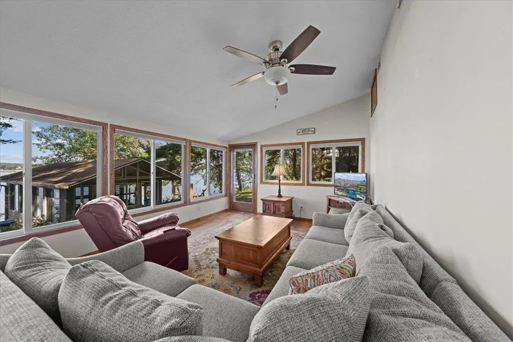 RARE opportunity to own 224 ft of pristine sandy shoreline along the legendary St. Croix River! This prime riverfront property is nestled on almost two beautiful acres and is truly one-of-a-kind, offering impressive, unmatched, and unobstructed views, proximity to the boat launch and a short drive to downtown Hudson. Enjoy no HOA dues, no covenants, a beautiful and fully functional "grandfathered" boathouse, a charming cabin-style guest house, and a cozy 3 bed/2 bath main-floor living home with picturesque water views. Additional features include a 3-car detached garage, 2 docks, and the property is not in the floodplain, offering endless possibilities. As you enter the property, you're greeted by a convenient horseshoe driveway, making you feel as though you've arrived at your private waterfront retreat. The coveted boathouse, located right on the shoreline, is perfect for listening to the peaceful sounds of the river and watching boaters pass by-plus, it offers excellent storage! The guest cabin has a rustic yet updated feel and is simply darling. You'll find a spacious loft area, hardwood floors, kitchen, bath/private bedroom, and even an outdoor shower-your guests might never want to leave! With its natural character and incredible setting, this is more than just a property-it's a lifestyle. There is nothing like this on the St. Croix River.