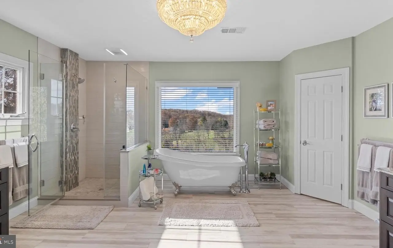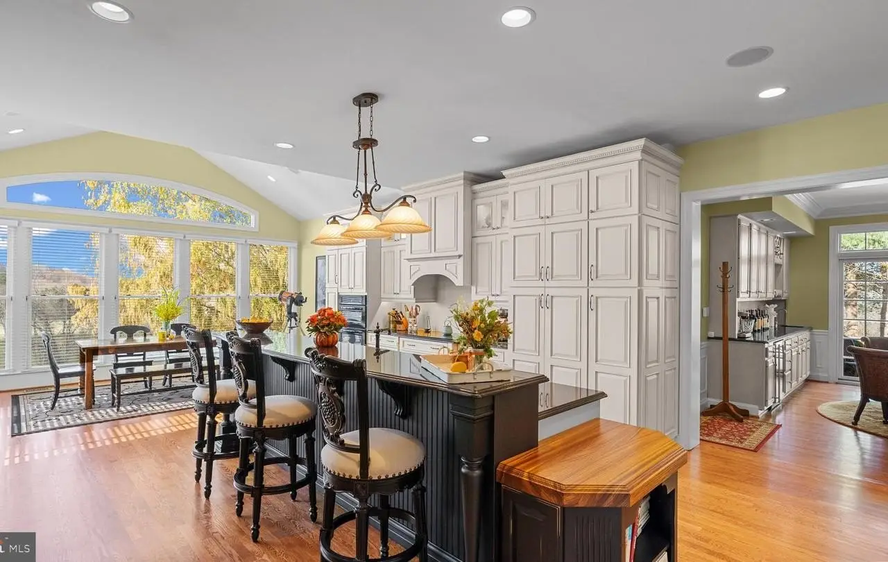 Stately all-brick colonial in the prestigious Lambourne Downs / Western Run Valley community, offering approximately 8,500± sq. ft. of finished living space on 4.6± scenic acres. Boasting exquisite curb appeal with professional landscaping, brick paver walkways and patios, covered front porch, side-load 2-car garage, ample off-street parking, updated architectural shingle roof, and sweeping views of the valley. Step inside the grand marble foyer showcasing crown, dentil, and chair rail moldings, wainscoting, wall sconces, fireplace, and a stunning curved staircase. The living room off the foyer offers hardwood floors, dentil crown molding, chair rail, wainscoting, and fireplace, opening to the professional office with hardwood floors, crown and chair rail molding, wainscoting, built-ins, niche, and slider access to a covered rear deck overlooking the tranquil setting. The gourmet eat-in kitchen features hardwood floors, granite countertops, a center island with breakfast bar, recessed and pendant lighting, soft-close cabinetry and drawers, built-in pantry, and a coffee area with glass-paneled cabinetry. Built-in appliances include a side-by-side refrigerator, wall oven, built-in microwave, electric cooktop, and range hood. The adjoining breakfast area with cathedral ceiling provides access to the rear deck, ideal for morning coffee or casual dining. Off the kitchen, the enormous great room impresses with hardwood floors, crown and chair rail moldings, wainscoting, gas fireplace, wet bar, access to the garage, and access through a sliding glass door to one of the beautiful brick paver patios. The formal dining room is equally elegant with hardwood floors, dentil crown molding, wainscoting, fireplace, and a stunning Palladian window. The main level also includes a dual-access powder room and second staircase to the upper level. Ascend the curved staircase illuminated by a chandelier to the luxurious primary suite offering a fireplace, crown molding, carpet flooring, massive walk-in closet with balcony access, and a fully updated ensuite featuring frameless glass shower, clawfoot soaking tub, water closet, and dual granite vanities-one with extra storage and one with dressing area. The upper level continues with a dual-entry full bath, second bedroom with double-door closet, third bedroom with fireplace, crown molding, and double-door closet, laundry room, and fourth bedroom with private ensuite bath. The top level hosts a sprawling bonus room with carpet flooring, dormer windows, ceiling fans, zoned HVAC, walk-in closet, and access to an exercise room-perfect for recreation, hobbies, or studio use. The multipurpose lower level includes fifth and sixth bedrooms (one carpeted, one tile), full bath, utility room, recreation room with fireplace and full stone hearth, recessed lighting, and tile flooring, plus a game room with slider to the covered rear patio. Outdoor living is extraordinary with a composite rear deck with vinyl railings and awning, covered patio with additional storage, three brick paver patios, and a charming covered front porch-all surrounded by tranquil valley scenery. Additional highlights include three-zone HVAC, exceptional craftsmanship, and numerous high-end upgrades throughout. Combining timeless architecture, luxurious finishes, and peaceful surroundings, this remarkable estate offers an unparalleled living experience in one of Baltimore County's most sought-after locations.