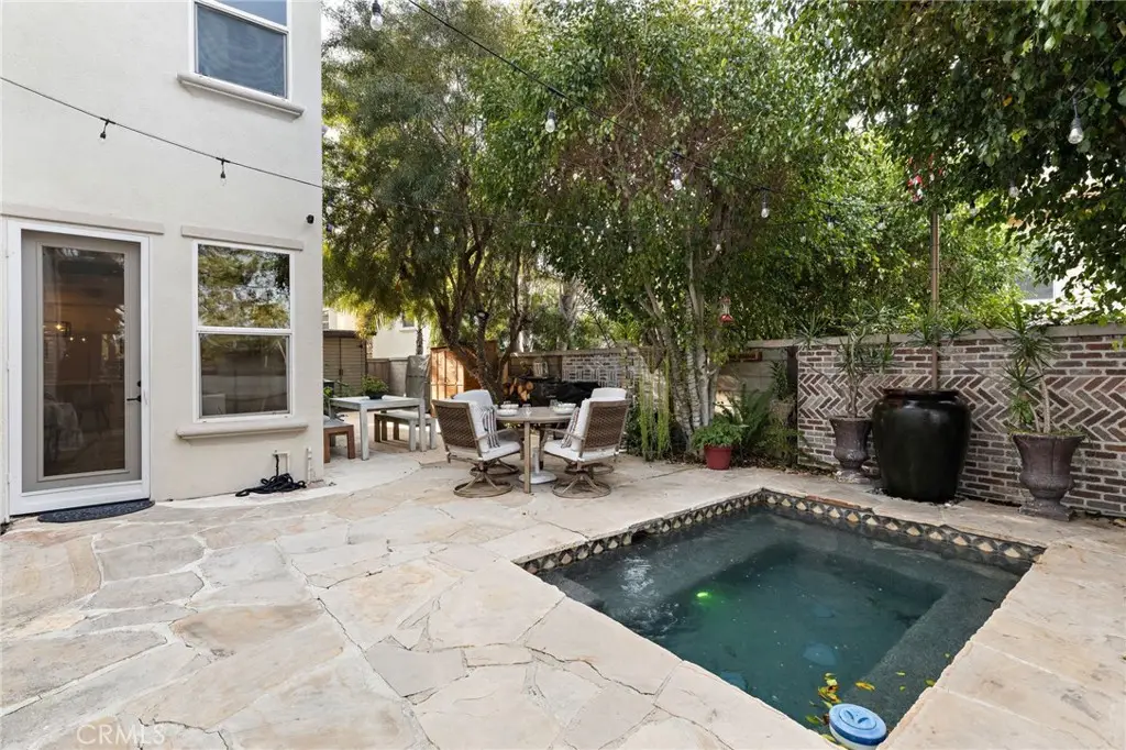 This stunning home, nestled at the end of a quiet cul-de-sac in a desirable gated community, offers unparalleled privacy and tranquility. With 4 spacious bedrooms and 3.5 bathrooms, the home provides the perfect balance of comfort and functionality. The open-concept family room, bathed in natural light, features a sleek, built-in entertainment center, ideal for relaxing or entertaining. High ceilings and large windows enhance the bright, airy feel throughout. Two primary suites offer private retreats, each with its own ensuite bathroom. The property backs directly to Greer Park, with no neighboring properties next to it, ensuring a serene and secluded environment. The two-car attached garage adds convenience and extra storage. Outside, enjoy an expansive backyard with an in-ground spa, firepit, and towering trees that enhance your privacy. Residents also have access to the community's association pool, completing this luxurious, private retreat.