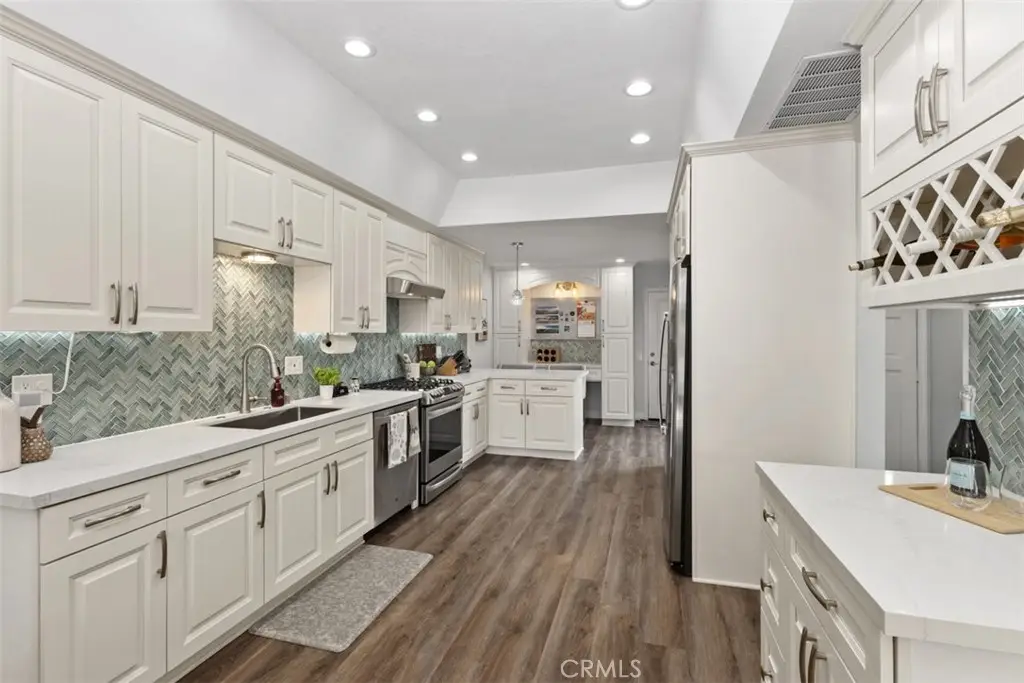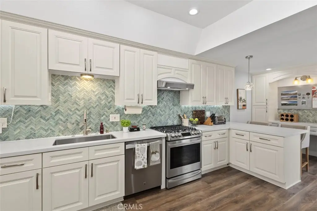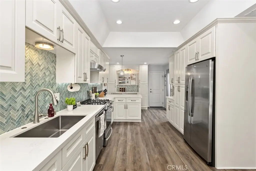 Price Improvement!!! LOCATION, LOCATION, LOCATION. Experience CA elegance with this stunning 3-bedroom, 2.5-bath townhome in the coveted Las Fuentes gated community of Huntington Harbour. Thoughtfully upgraded throughout, this home features soaring cathedral ceilings, designer carpet upstairs, and high-quality luxury vinyl flooring on the main level. The light-filled kitchen is a showstopper, showcasing quartz countertops, a striking aqua glass backsplash, stainless steel appliances and sink, and custom cabinetry. A spacious dining area makes family dinners and entertaining effortless, while the inviting living room--with its cozy fireplace--opens to a sunny, oversized patio adjacent to the sparkling community pool, hot tub, and sauna. Upstairs, you'll find three bedrooms, an updated bathroom, and a convenient laundry area. Two bedrooms share a Jack-and-Jill balcony, vaulted ceilings, large closets, and views of the mountains. The expansive primary suite boasts a retreat, private balcony for morning coffee or evening relaxation, a large closet, and a spa-inspired bathroom with an inviting shower, dual sinks, and stone countertops. From the opposite side of the home, enjoy snow-capped mountain views in winter and Disneyland fireworks in the summer. Additional highlights include a driveway plus an attached two-car garage with direct access, along with a resort-style community featuring mature landscaping, fountains, and wide-open green spaces. Just a quarter mile from Davenport Beach, you'll love the easy harbor access point for paddle boarding and other water activities. Enjoy all that Huntington Beach has to offer--close to the Bolsa Chica Wetlands, Huntington Harbour, beaches, scenic trails, Trader Joe's, popular restaurants, and easy freeway access. Live every day like you're on vacation in this beautiful Las Fuentes home!