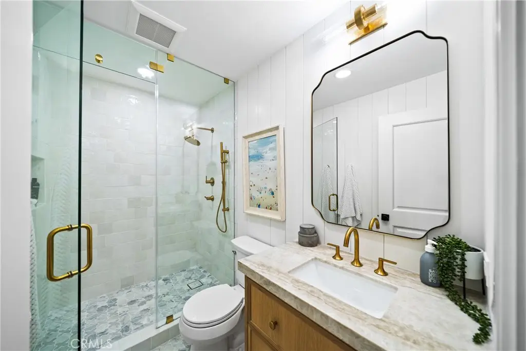 Experience elegant coastal living in the heart of Huntington Beach's prestigious Seagate community at 16214 Bimini Lane. This beautifully updated home, completed in 2025, offers 5 spacious bedrooms and 3 luxurious bathrooms, thoughtfully designed with two bedrooms on the main floor and a serene master suite upstairs. Step inside to discover engineered hardwood floors and custom white oak and painted micro shaker cabinetry. The gourmet kitchen is a chef's delight with Taj Mahal countertops, a 6-burner stove, Bosch panel-ready dishwasher, and a stunning cast iron farmhouse sink with a Brizo faucet. The laundry room boasts exquisite Taja Perla porcelain countertops, while the bathrooms showcase Bedrosians honed marble floors, shower walls, backsplashes, and elegant tile work extending to the BBQ and jacuzzi areas. Cozy up by the custom Arto brick fireplace in the great room, equipped with a Samsung 85" Smart TV and Apple TV for the ultimate entertainment experience. Step outside to your private jacuzzi and enjoy exclusive access to two community pools and two beautifully appointed clubhouses. For water enthusiasts, the property features a 30-foot boat dock with additional space for kayaks, with seamless access to the harbor and ocean beyond. This home is truly the crown jewel of Seagate--where modern luxury meets coastal charm. Don't miss the opportunity to own the most stunning residence in this sought-after waterfront enclave. Seagate residents enjoy unmatched amenities including tennis courts, community pools, clubhouses, and direct harbor access, perfect for an active, resort-style lifestyle just minutes from the beach and vibrant Huntington Beach dining and shops. 16214 Bimini Lane is more than a home--it's your personal coastal retreat.