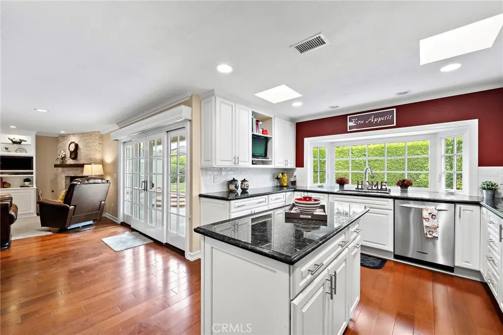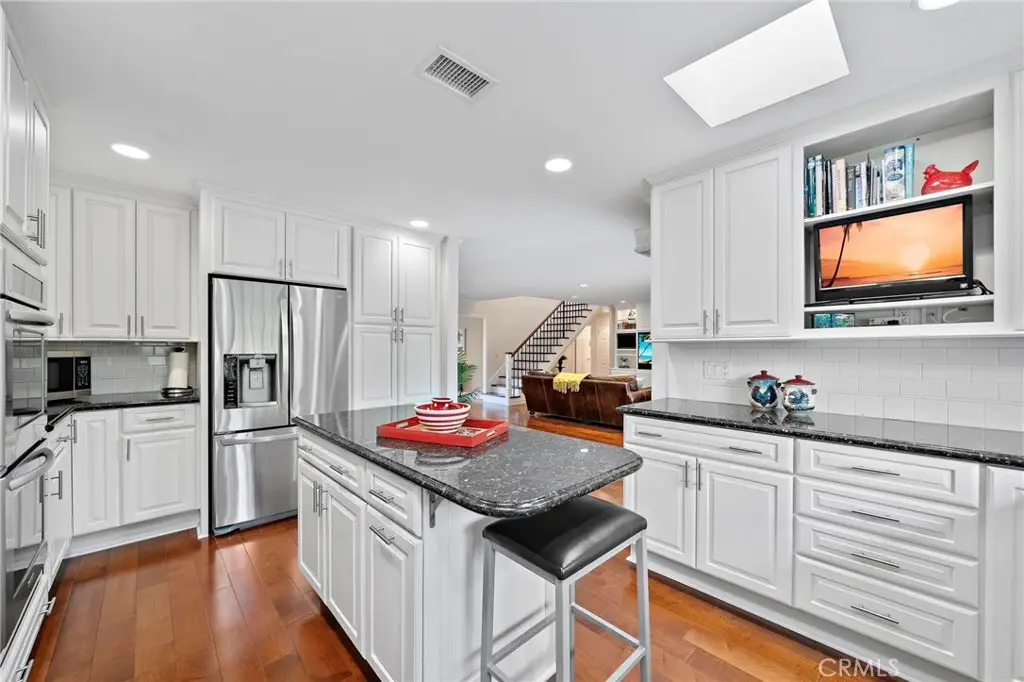 Blinds. This Magnificent Estate-Style Home Boasts Gorgeous Curb Appeal with Brick Hardscape and Professional Landscaping. Double Entry Doors Open to a Formal Foyer, Elegant Formal Living Room with Marble Fireplace and Formal Dining Room which Flows Seamlessly into the Large Family Room with a Cozy Raised Hearth Fireplace, Custom Built-In Entertainment Center, and Breakfast Nook. The Gourmet Kitchen Has Been Professionally Expanded And Remodeled With Granite Countertops, Subway Tile Backsplash, Soft-Closing White Shaker Cabinetry, Stainless Steel Appliances, Skylights, And A Custom Island With Bar Seating. A Large Bay Window Overlooks The Garden, Flooding The Space With Natural Light. Also On The Main Floor Are Two Highly Desirable Guest Bedrooms And A Full Bath with Dual Sinks. Upstairs, You'll Find Two Oversized Bedrooms, One with Built-In Desk, and A Full Guest Bath with Dual Sinks. Additionally there is a Gigantic Walk-In Storage Closet which Could Almost be a Bonus Room. Additional Highlights Include Dual-Pane Windows Throughout, Central Air Conditioning And Heating, Copper Plumbing, Raised Panel Interior Doors, Mirrored Closets, And Direct Access To A Fully Finished Garage Complete With Abundant Storage, A Workbench, Pull-Down Attic Access, And Epoxy Flooring. Conveniently Located Near Beach, Shopping, Parks, And Award-Winning Schools, This Home Truly Reflects Pride Of Ownership.